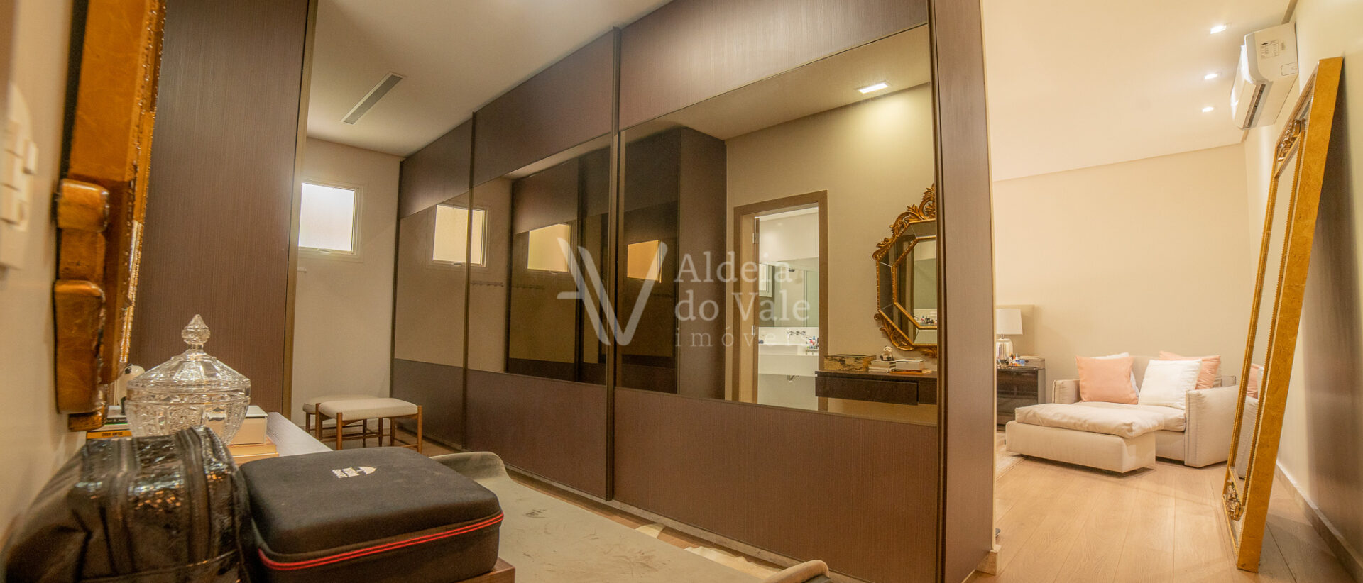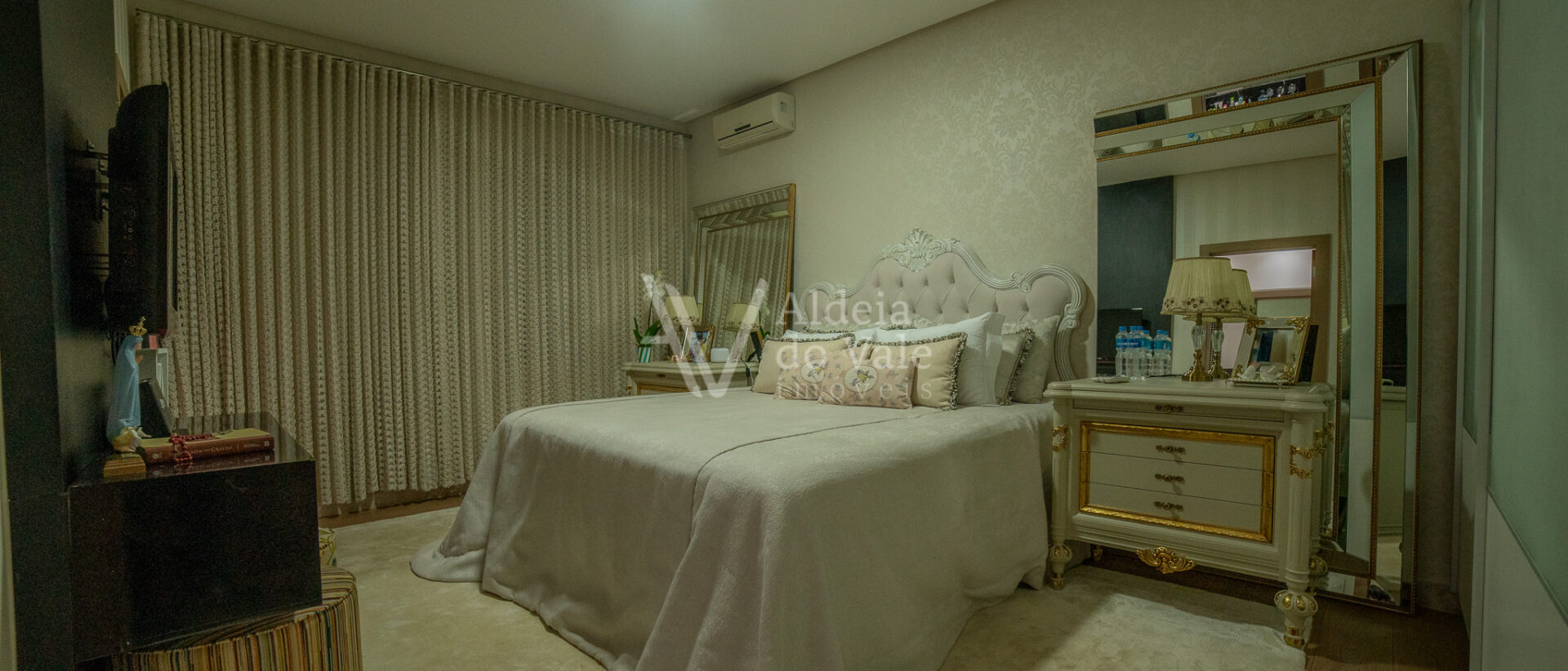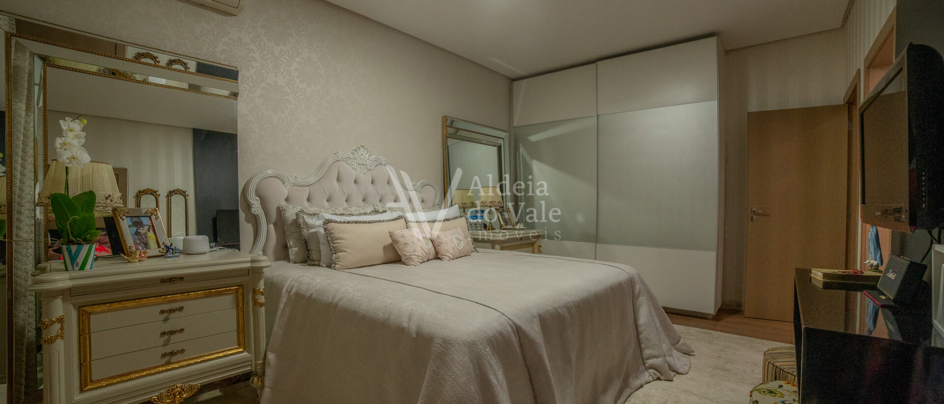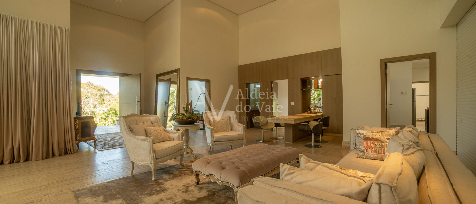 Possui 05 suites, sendo uma master, todas completas em armarios, climatizadas, com persianas em aluminio anodizado branco e automaticas. Sala de estar ampla com pé direito duplo, para ate 03 ambientes.
