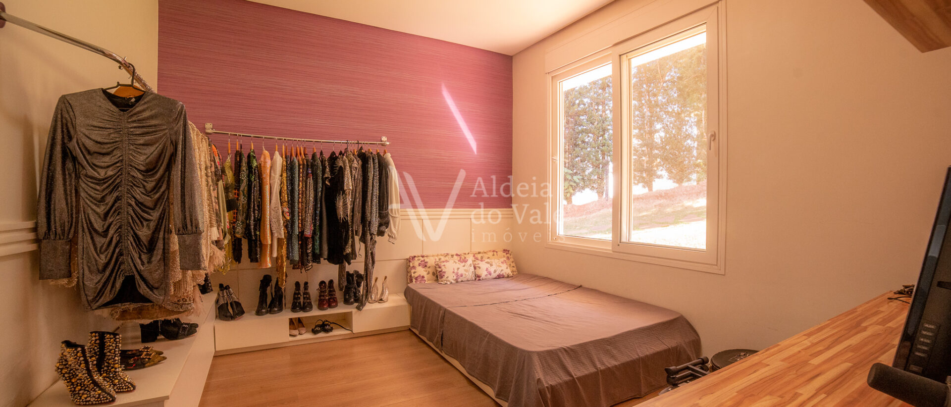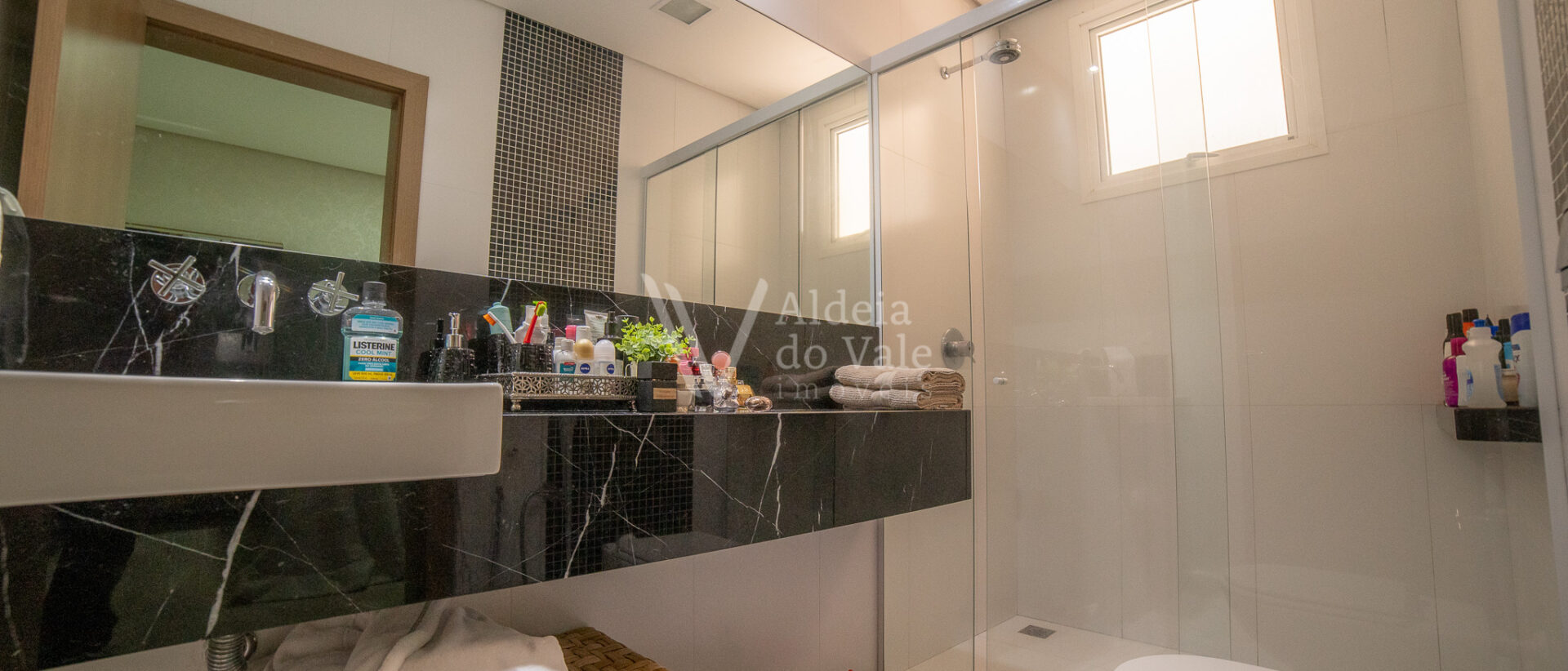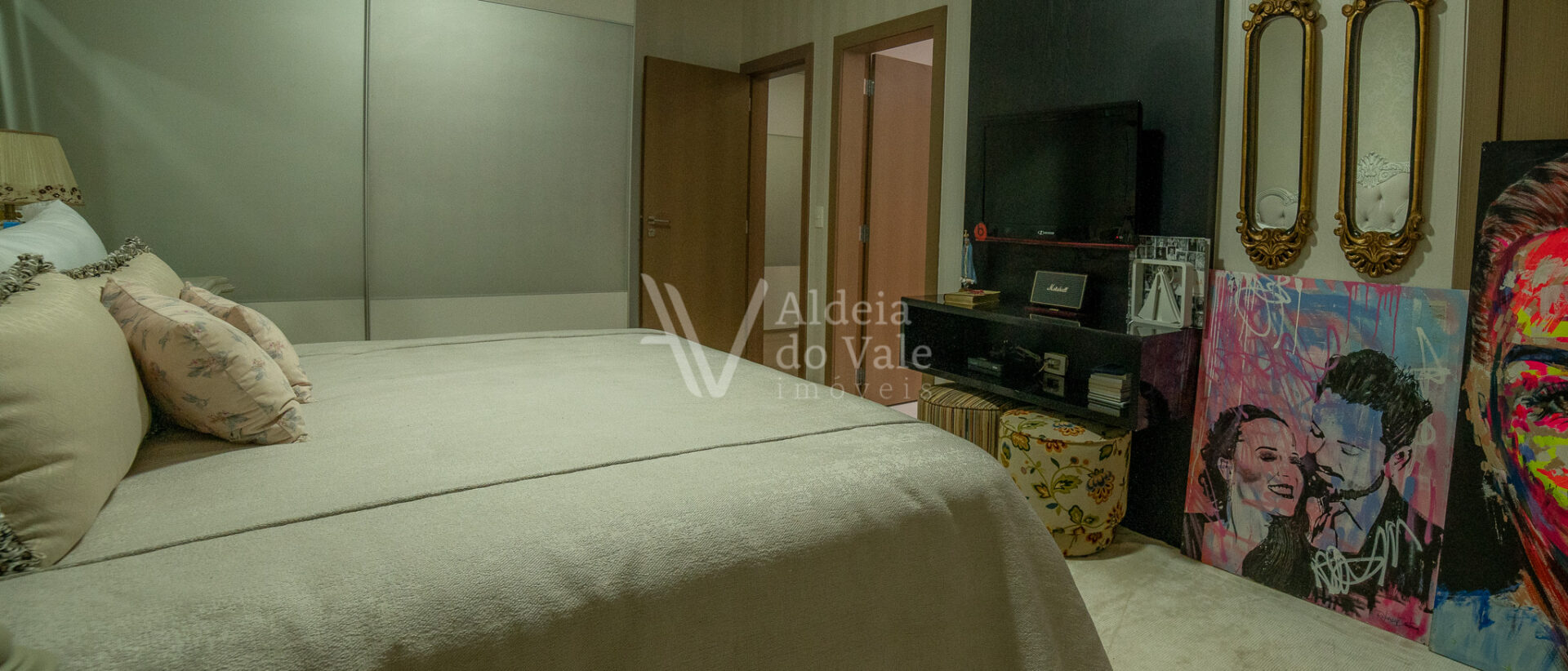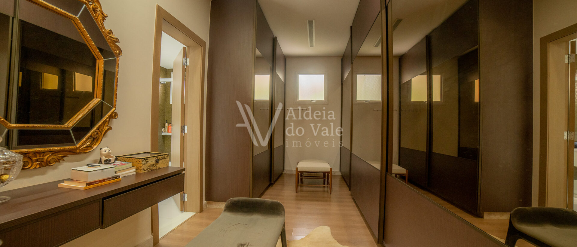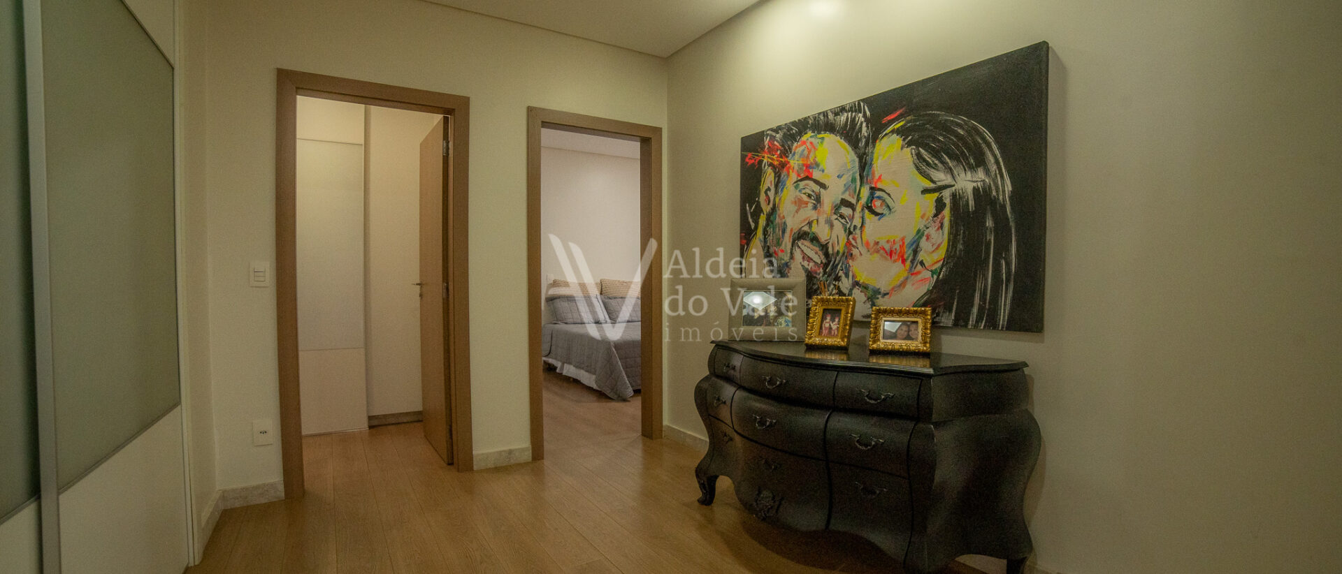 Possui 05 suites, sendo uma master, todas completas em armarios, climatizadas, com persianas em aluminio anodizado branco e automaticas. Sala de estar ampla com pé direito duplo, para ate 03 ambientes.