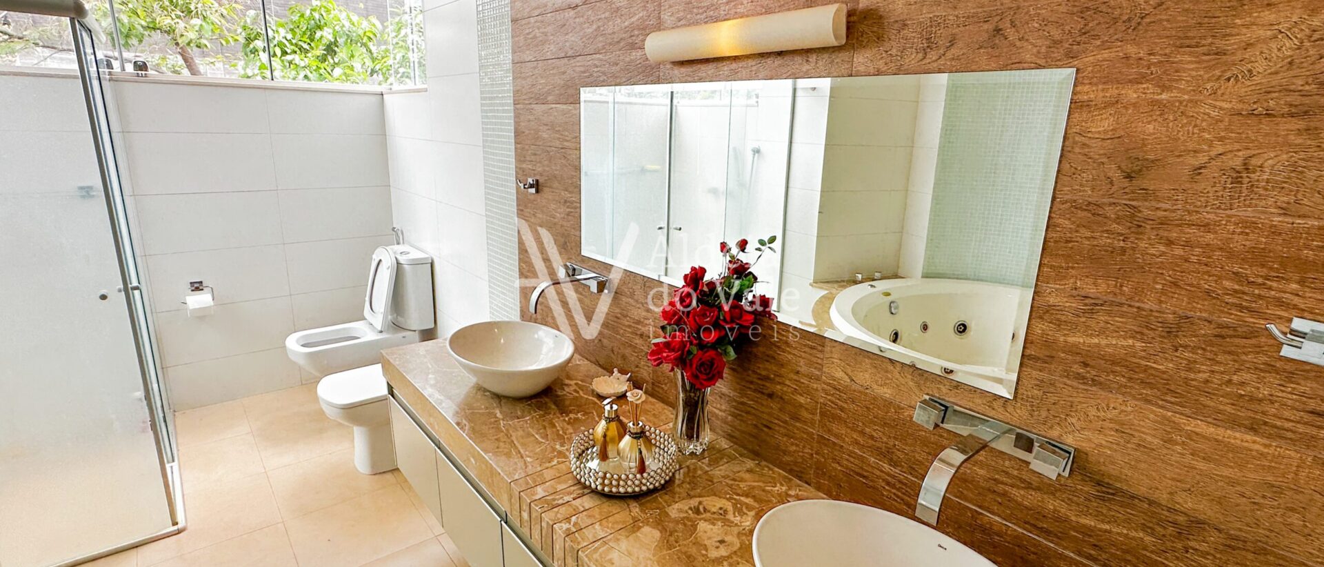Um charmoso sobrado com 3 suítes, sendo 1 suíte master com closet e banheira.