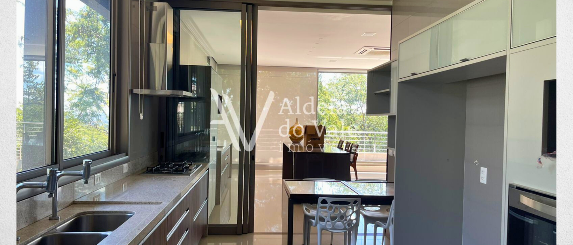 Pavimento térreo: garagem coberta para 8 carros, sala para 3 ambientes, lavabo, hall de entrada, escritório com WC, varanda, 2 áreas de serviço (uma interna coberta e outra externa descoberta), despensa, cozinha, jardim de inverno, elevador, dependência completa de empregada, piscina e área gourmet;