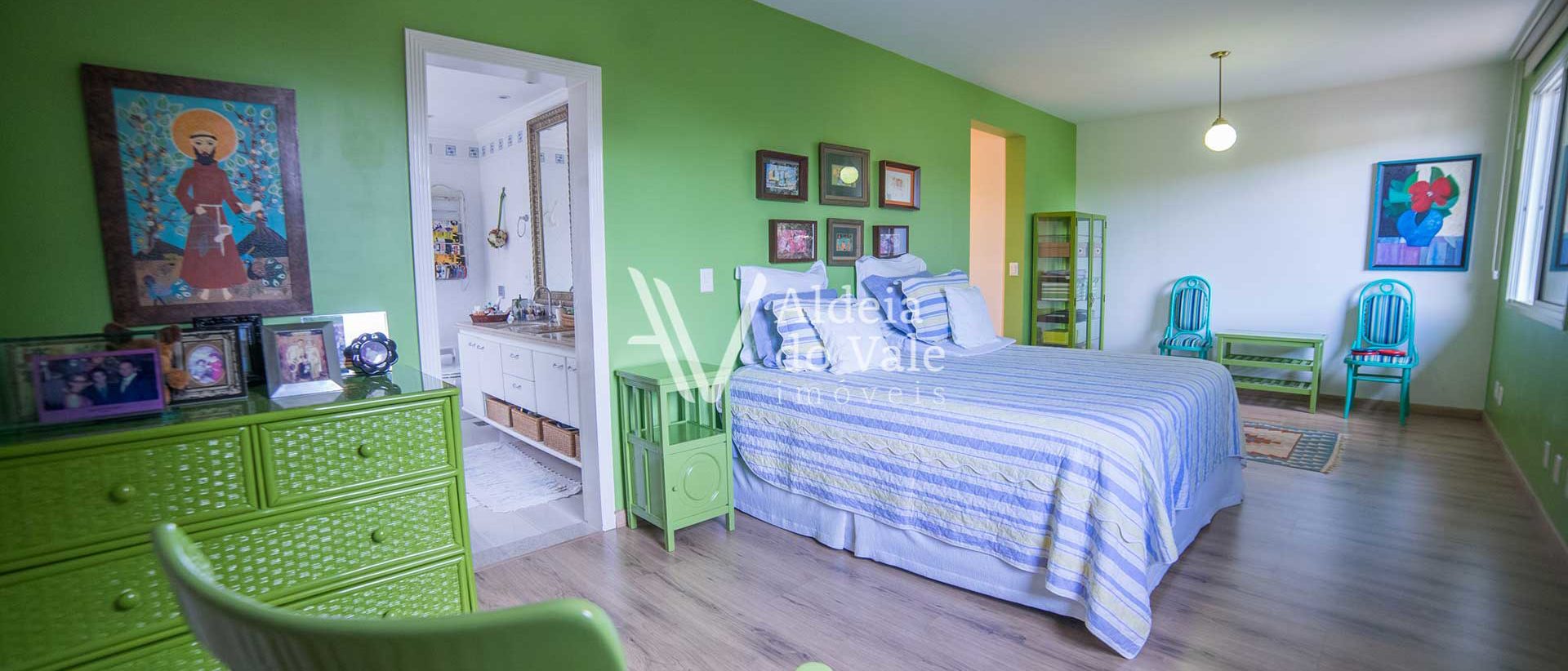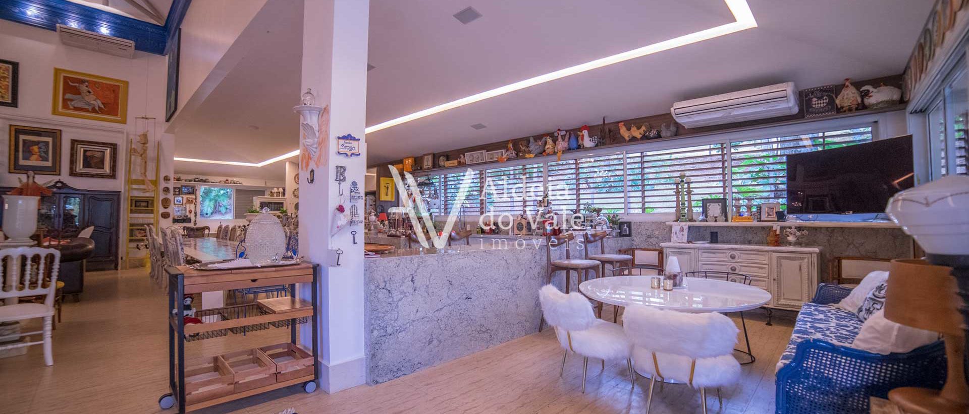 Lar de encontros, de família, de amigos, para curtir, cozinhar, trocar e conversar… na ampla cozinha gourmet integrada na sala com pé direito duplo ou no quiosque gourmet de frente à piscina, cada cantinho com seu charme, o prazer é a nota principal. Com ambientes que privilegiam o encontro, hora do café e do almoço na copa aconchegante, jantar na sala que é o auge da casa, sensação de espaço e liberdade. O complemento está no conforto da área íntima com 5 suítes, sendo 2 no térreo e 3 no piso superior, todas completas em armários, ar condicionados e venezianas.