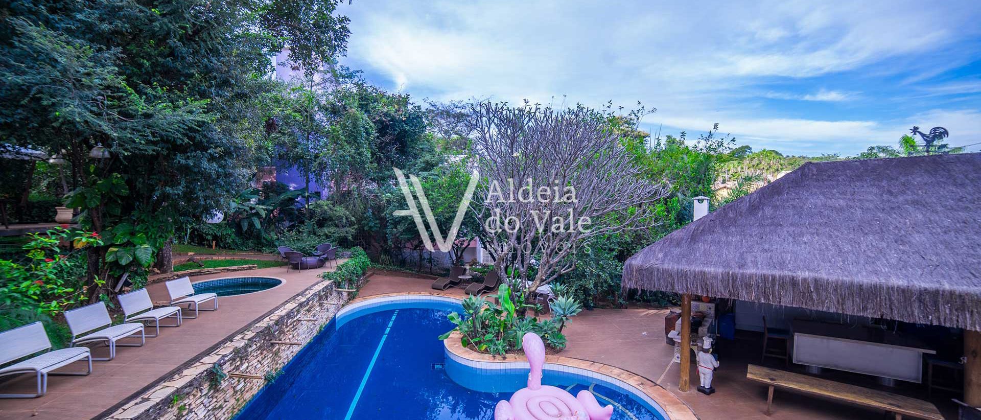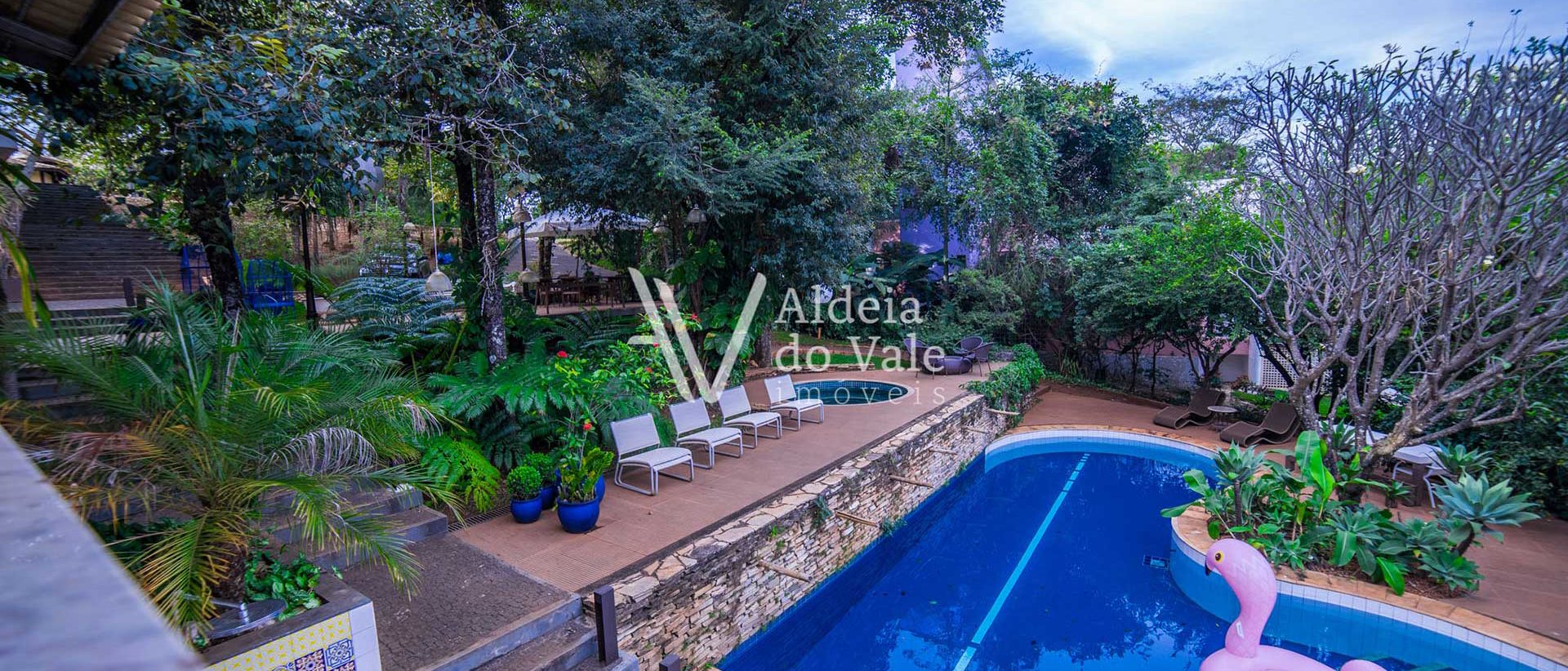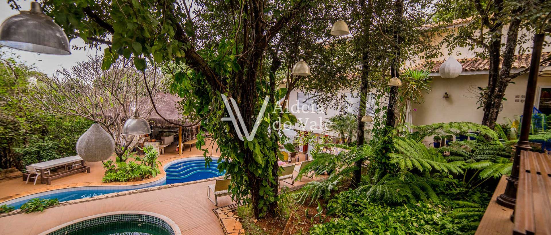 Edificada em meio a uma ampla área verde de cinco mil m² com inúmeras árvores de grande porte nativas e outras frutíferas, esta casa está imersa num clima de frescor coroado com uma piscina cheia de bicas e um Spa acolhedor.