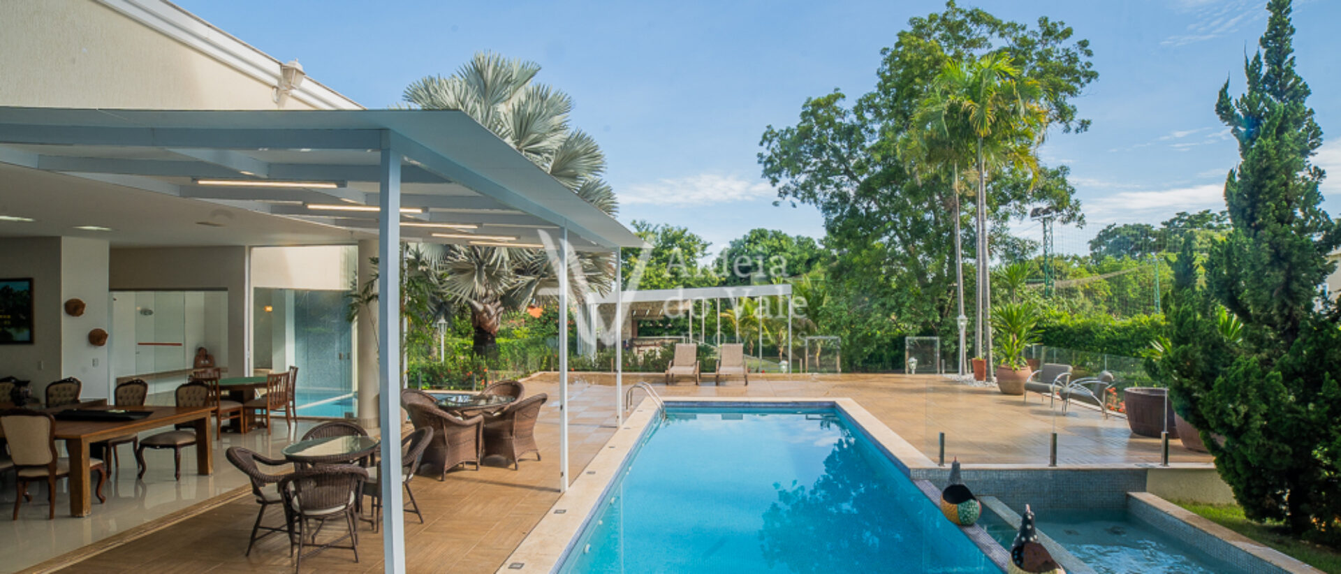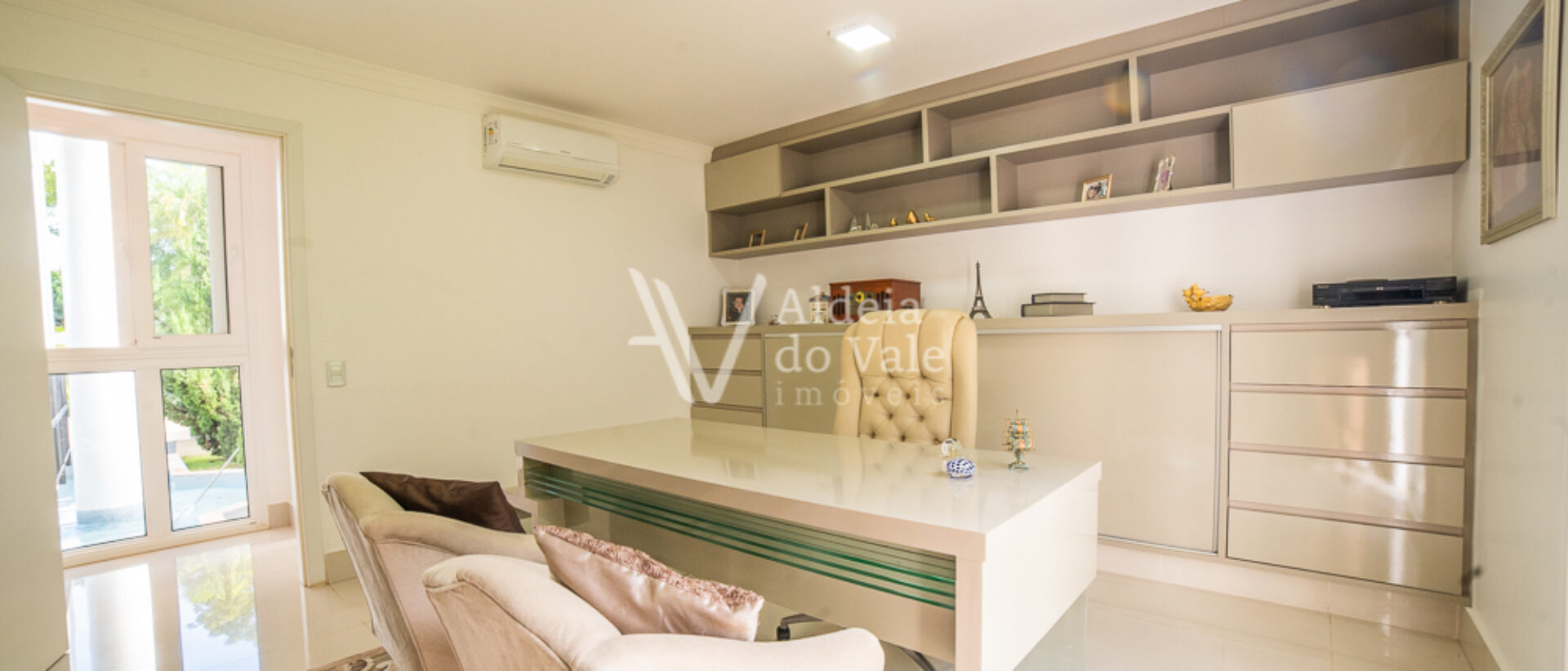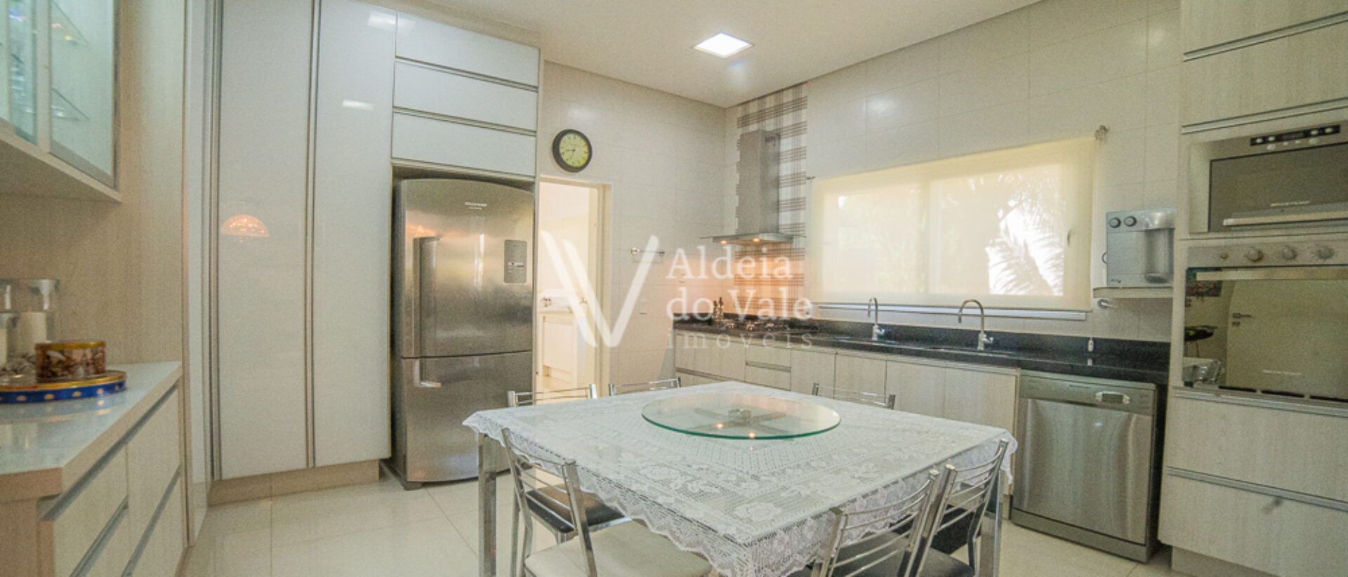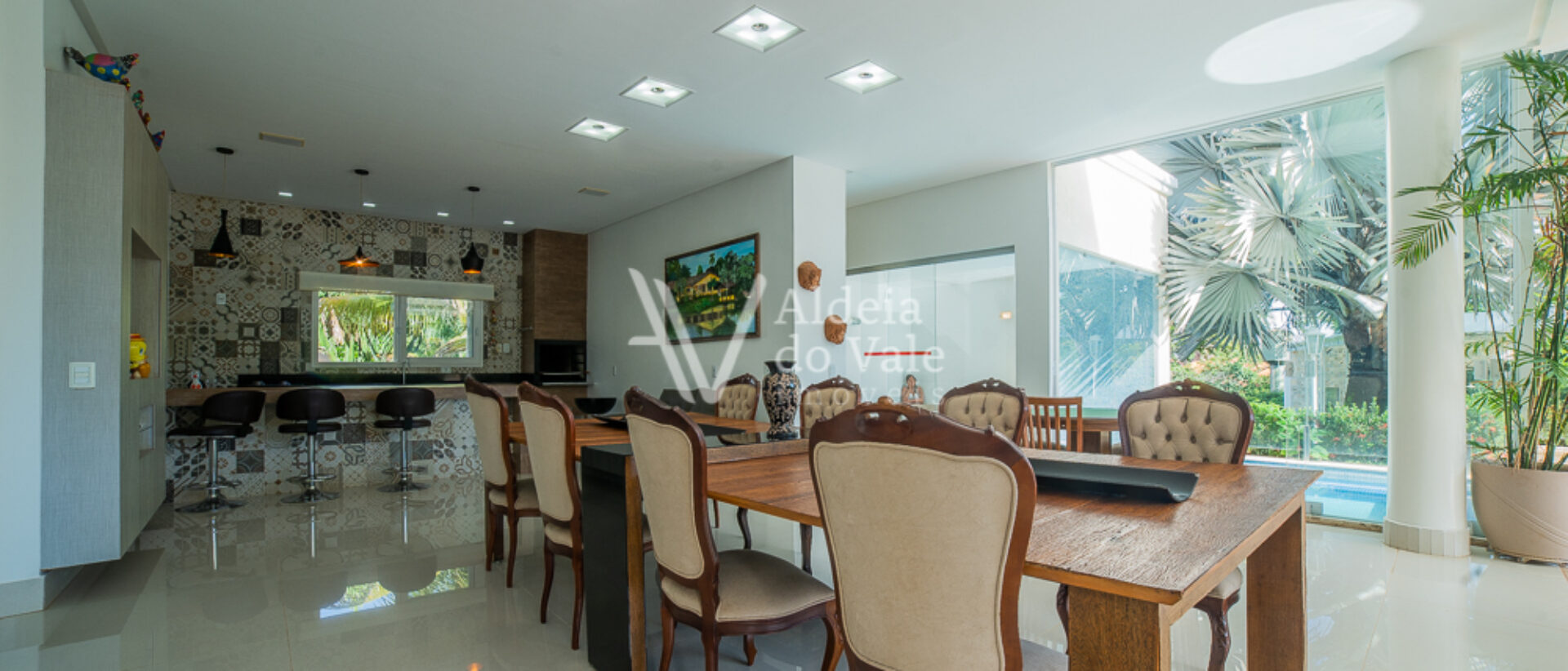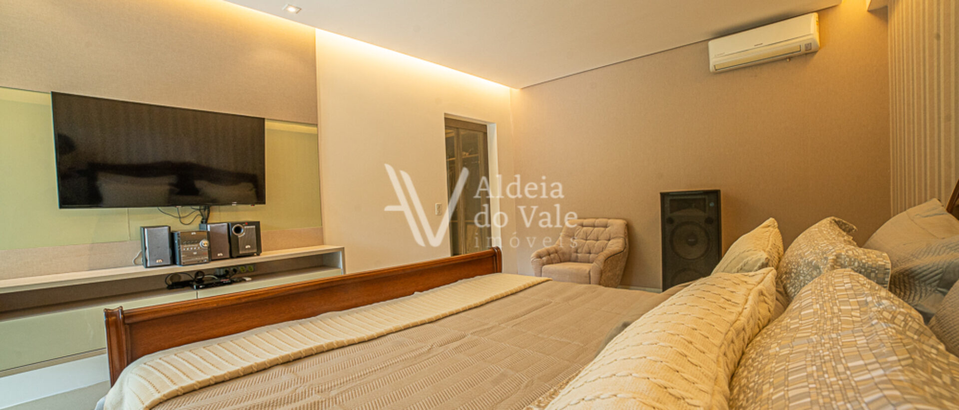 Seu acabamento de alto padrão conta com venezianas, portas e janelas em PVC automatizadas, completíssima em armários e climatizada, com poço artesiano e energia solar.
