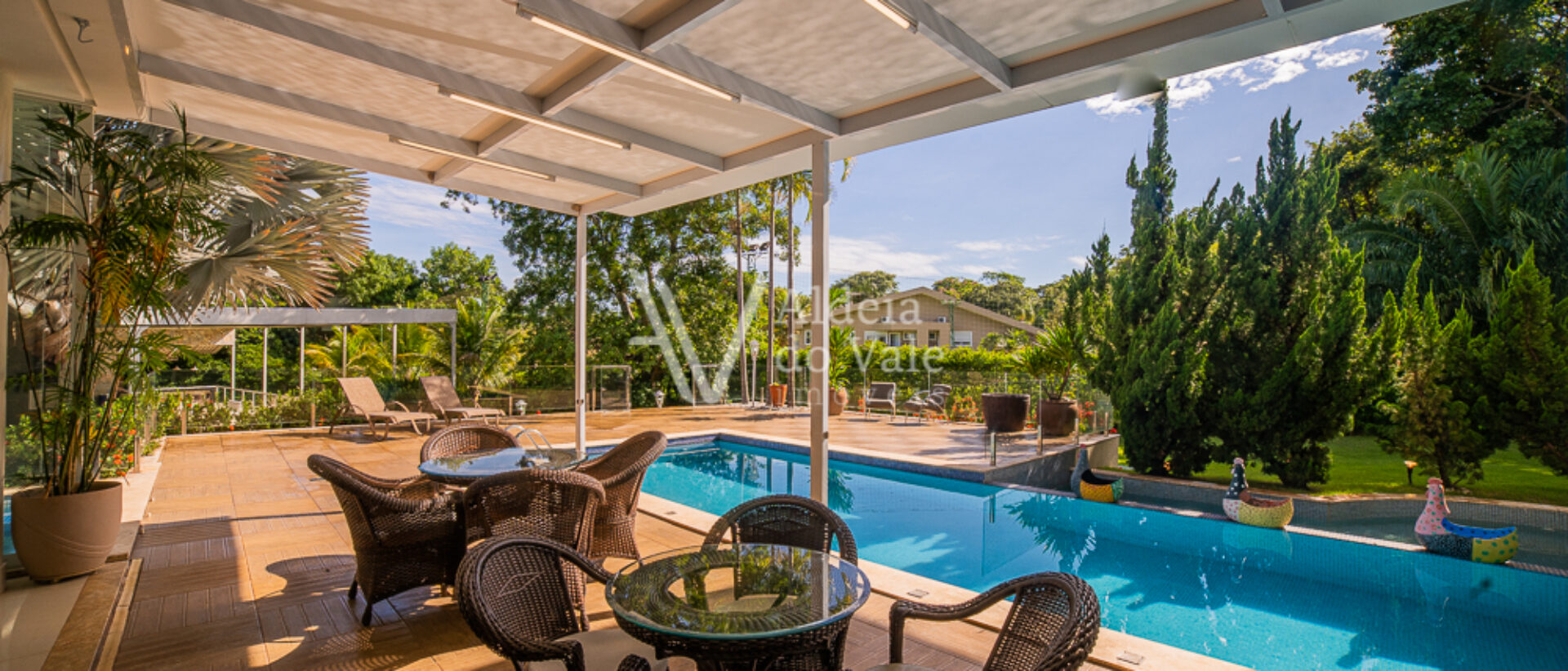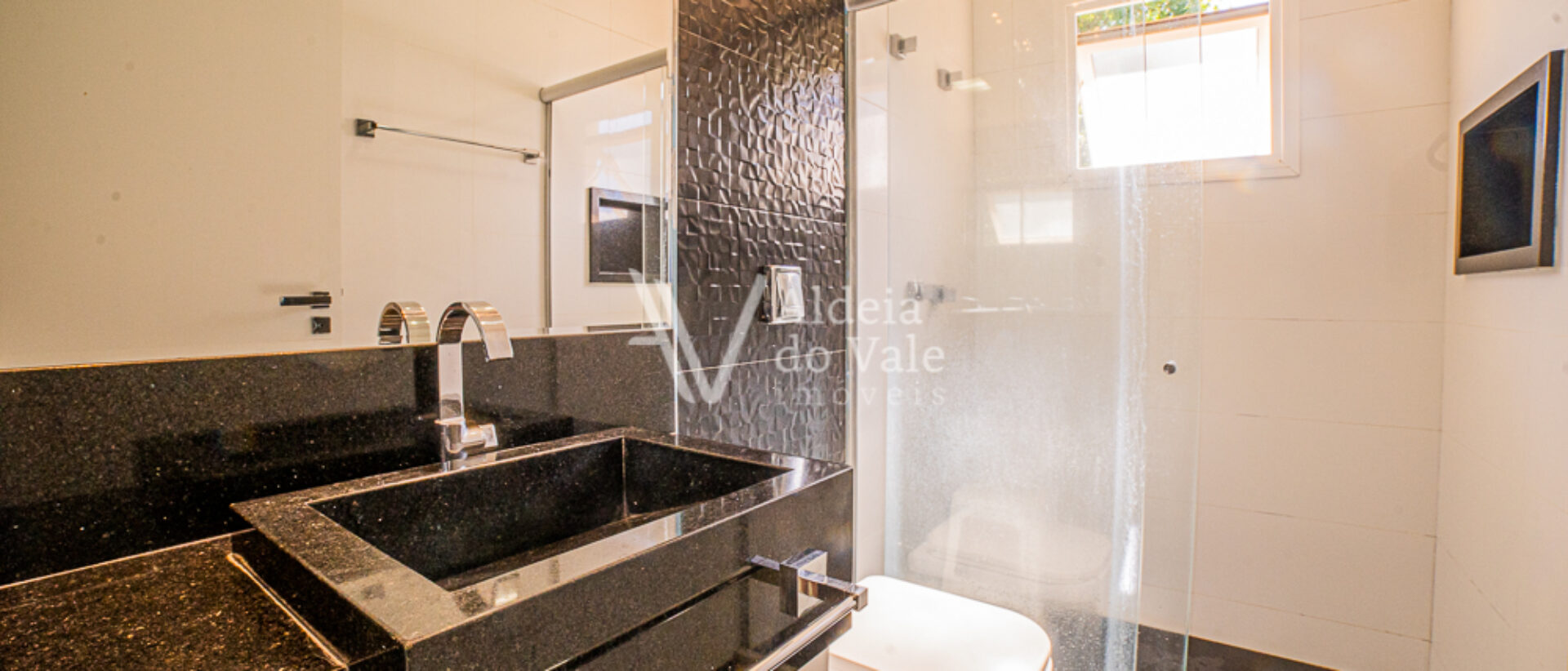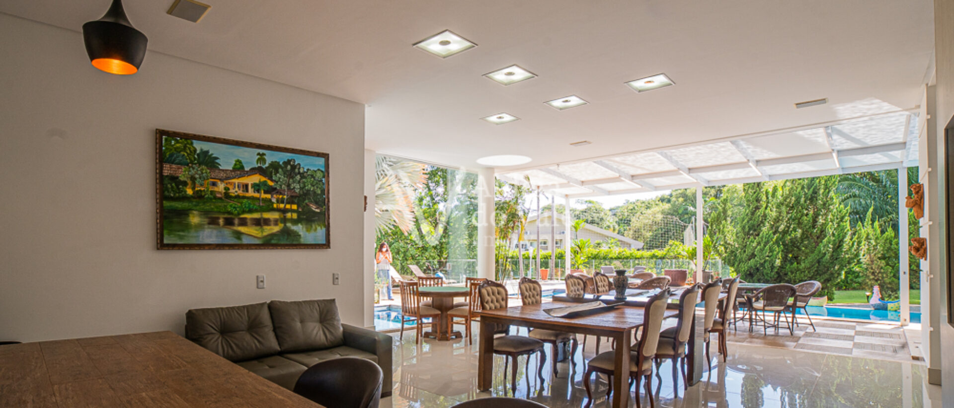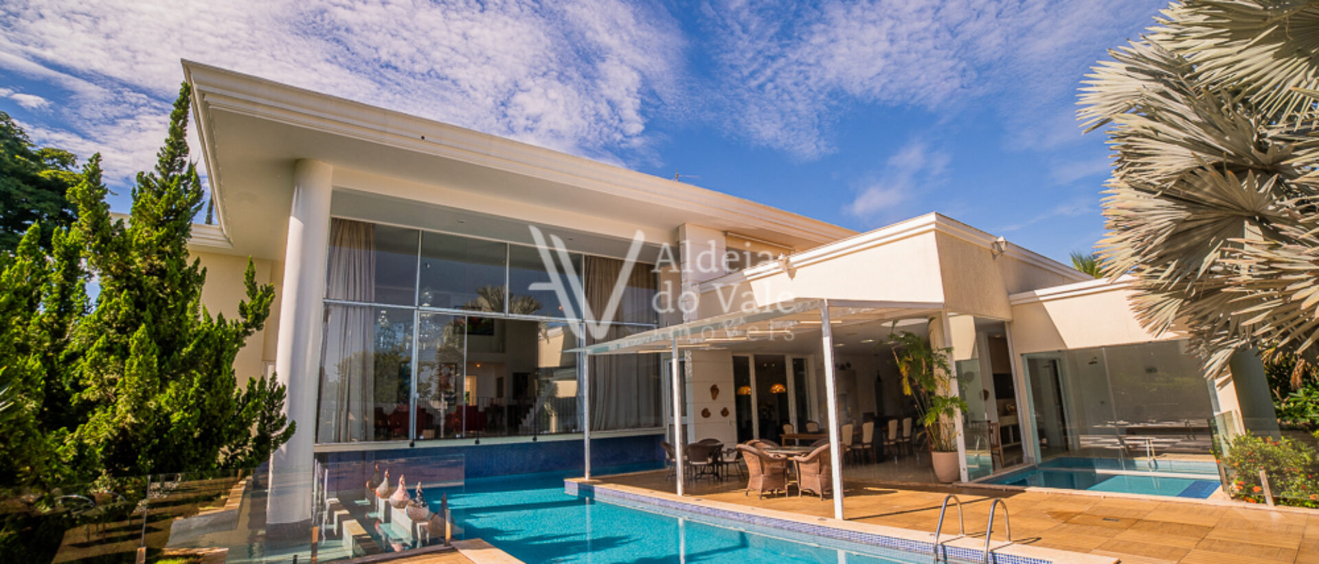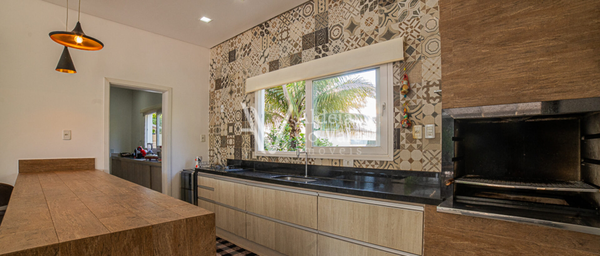 Seu acabamento de alto padrão conta com venezianas, portas e janelas em PVC automatizadas, completíssima em armários e climatizada, com poço artesiano e energia solar.