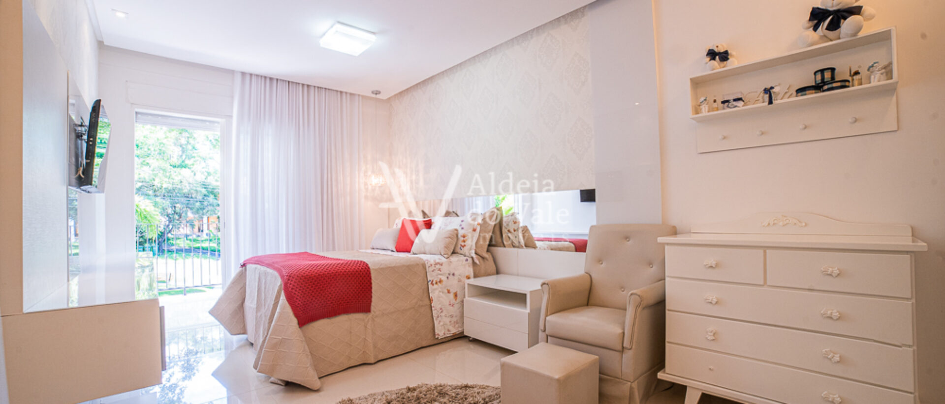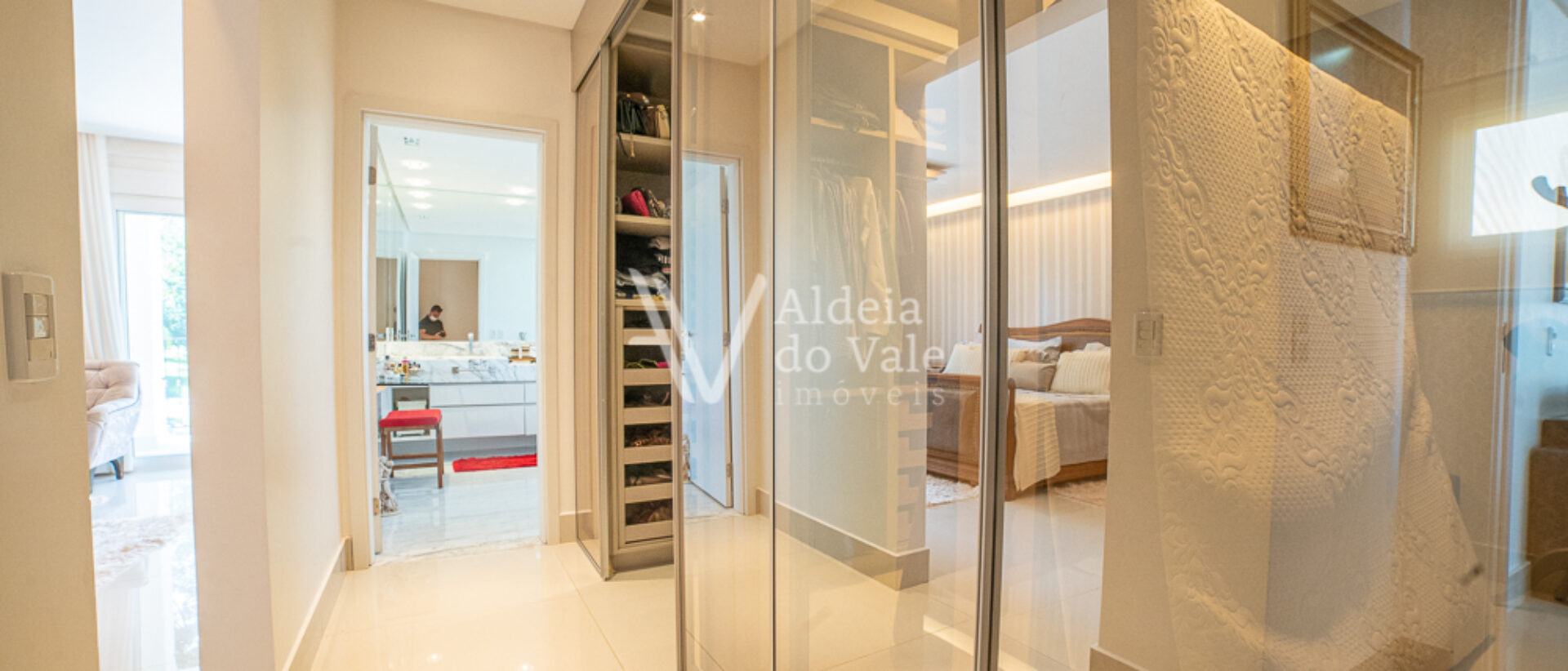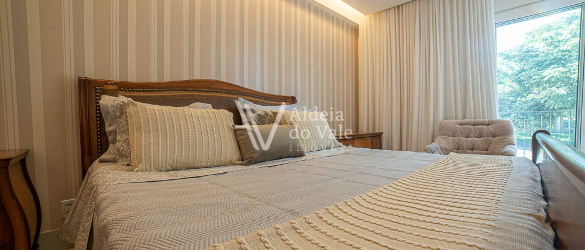 Um destaque deste vídeo é a linda produção das camas das suítes, um mimo realizado com todo o carinho pela loja “Moreira e Glorinha”, a harmonia e aconchego perfeitos na integração das roupas de cama com os quartos, esse mimo está disponível para você fazer sua própria harmonização em sua casa, é só clicar no QR Code disponível no vídeo durante a apresentação das suítes no piso superior e agendar uma demonstração.