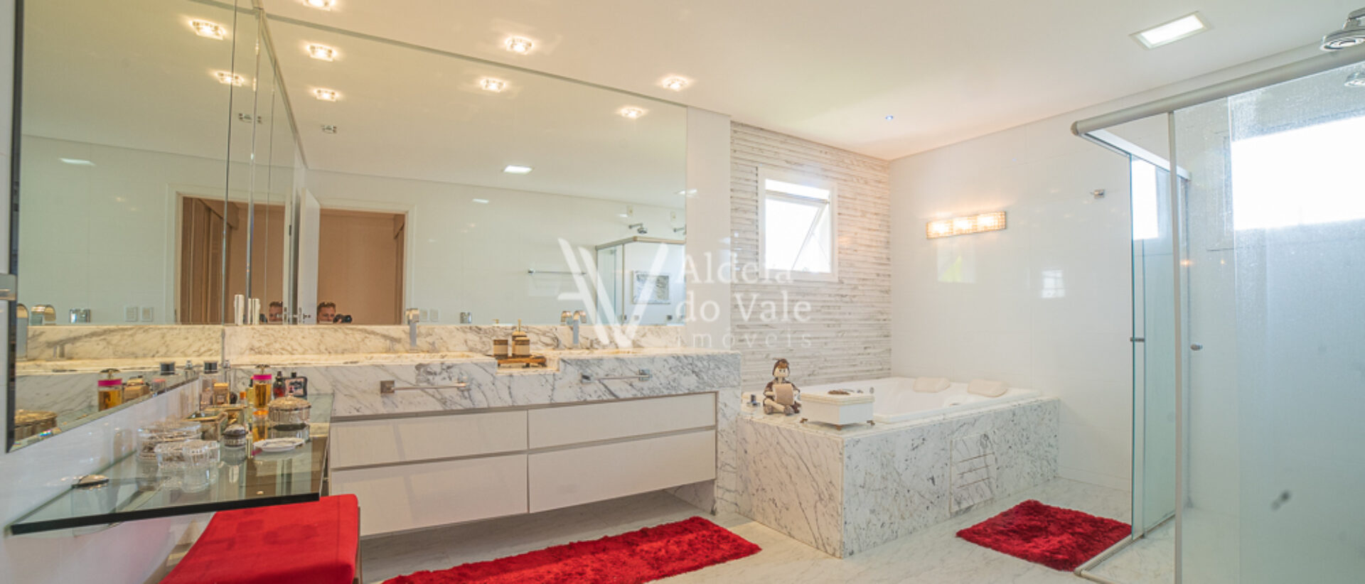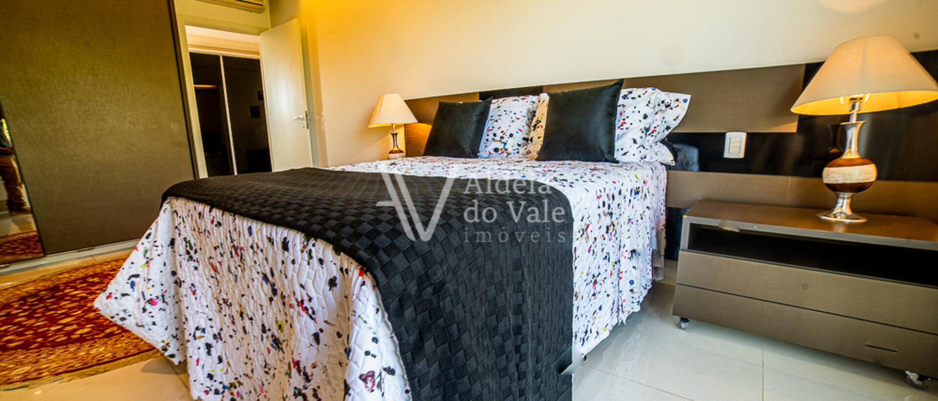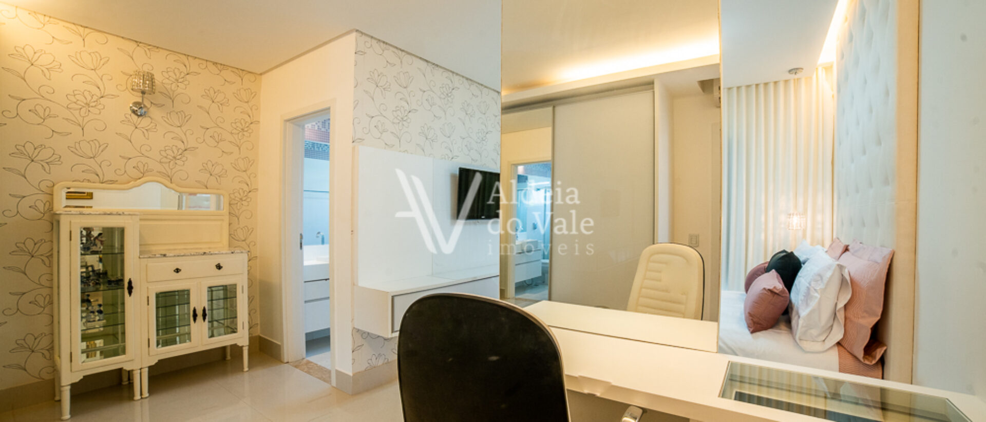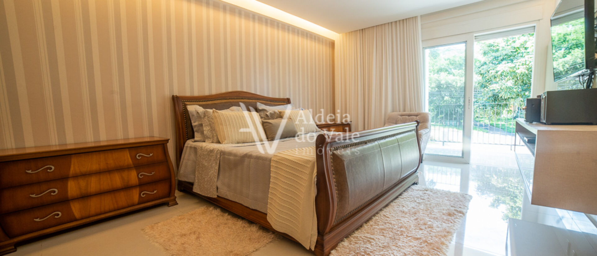 Um destaque deste vídeo é a linda produção das camas das suítes, um mimo realizado com todo o carinho pela loja “Moreira e Glorinha”, a harmonia e aconchego perfeitos na integração das roupas de cama com os quartos, esse mimo está disponível para você fazer sua própria harmonização em sua casa, é só clicar no QR Code disponível no vídeo durante a apresentação das suítes no piso superior e agendar uma demonstração.