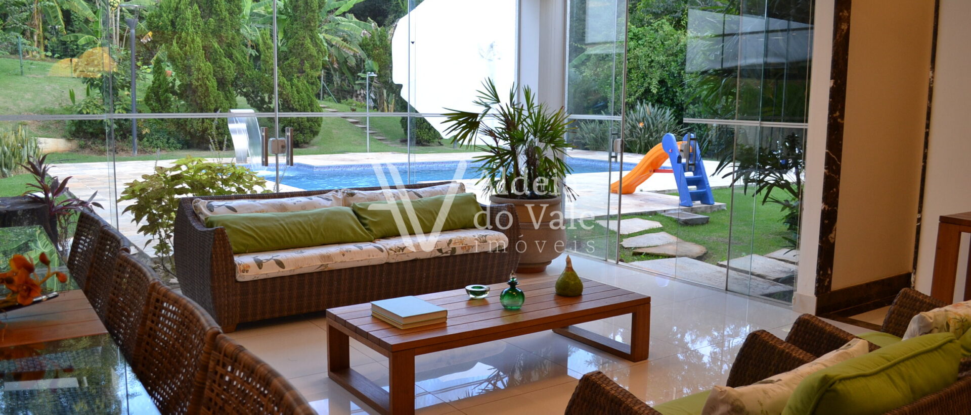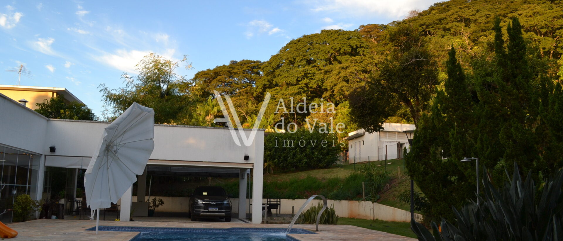 A piscina, área de lazer e quintal também são beneficiados pela linda paisagem.