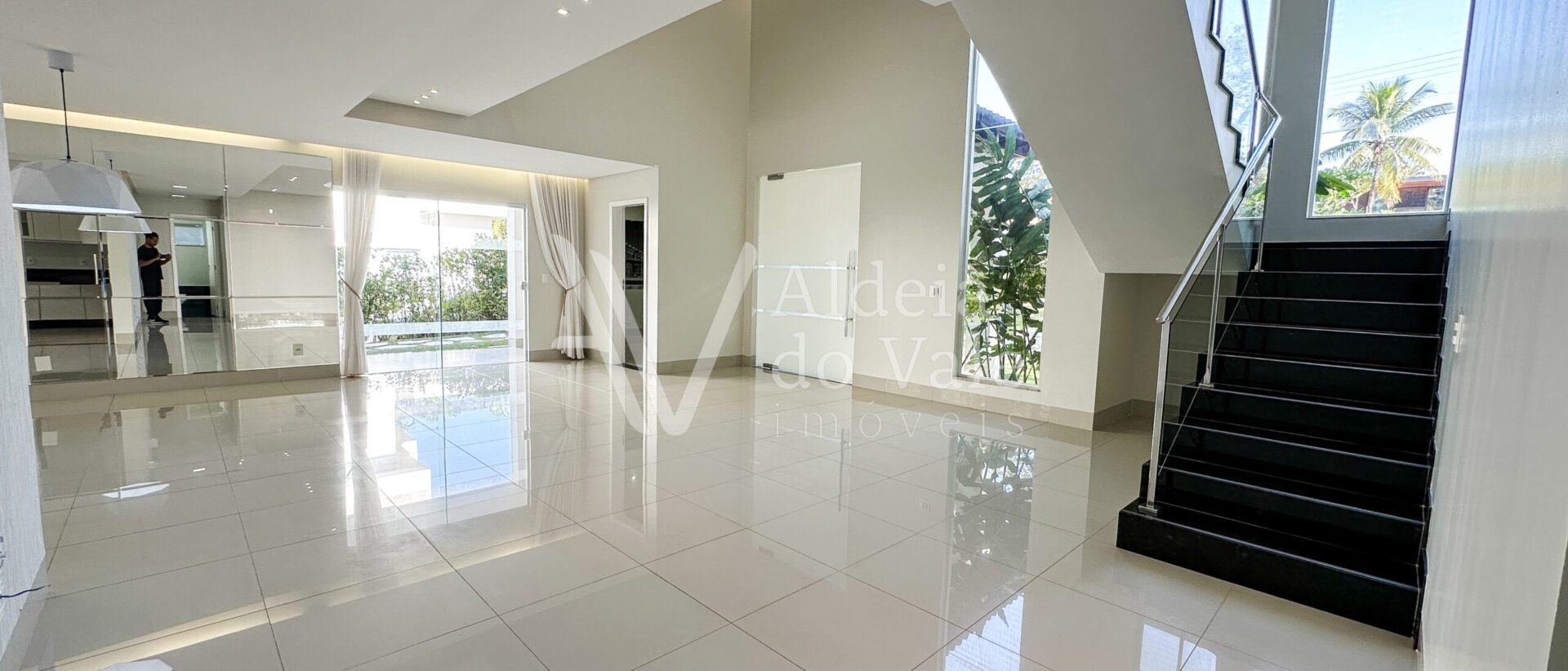 •Pé-direito duplo com ambientes integrados: sala de estar, jantar e cozinha