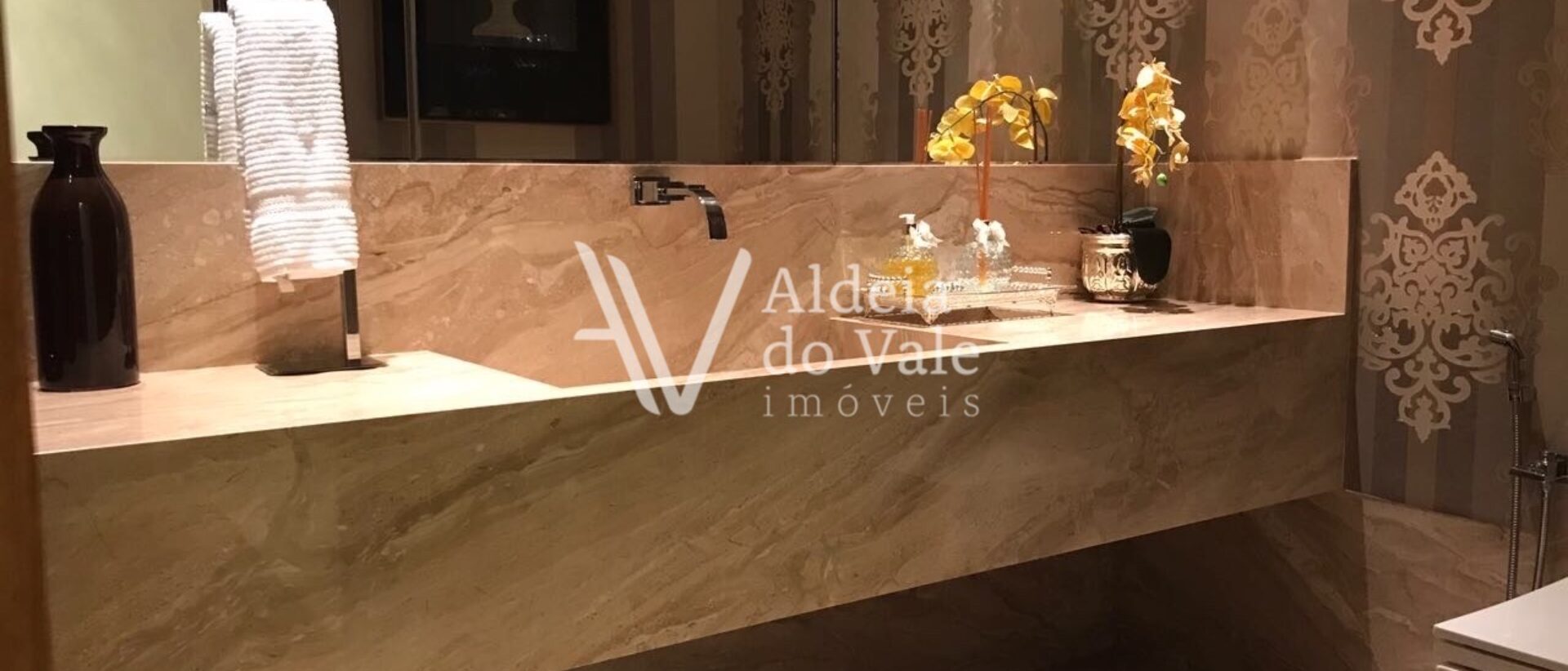 Este sobrado incrível repleto de mármores tem 4 suítes e sala íntima no piso superior, sendo a suíte máster com mais de 70m² com uma jacuzzi, sistema de som/vídeo e um closet gigante.