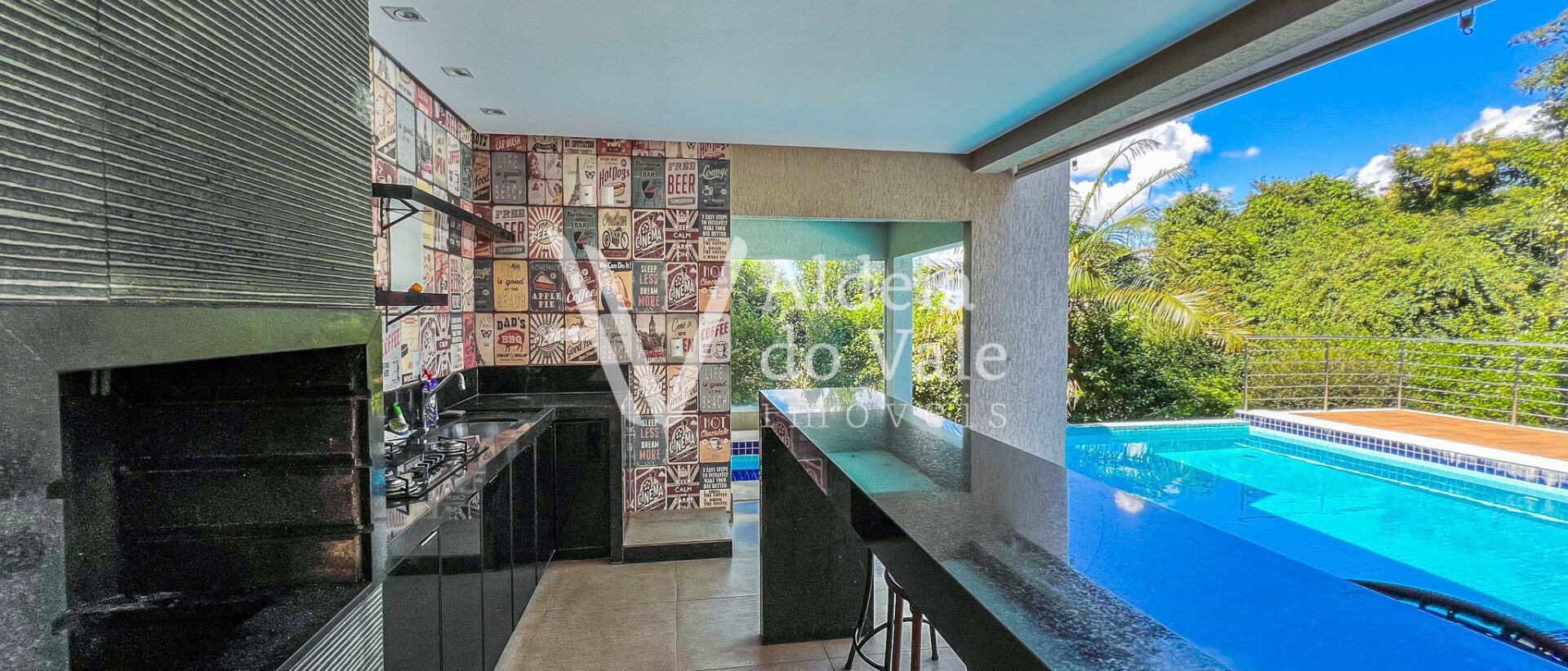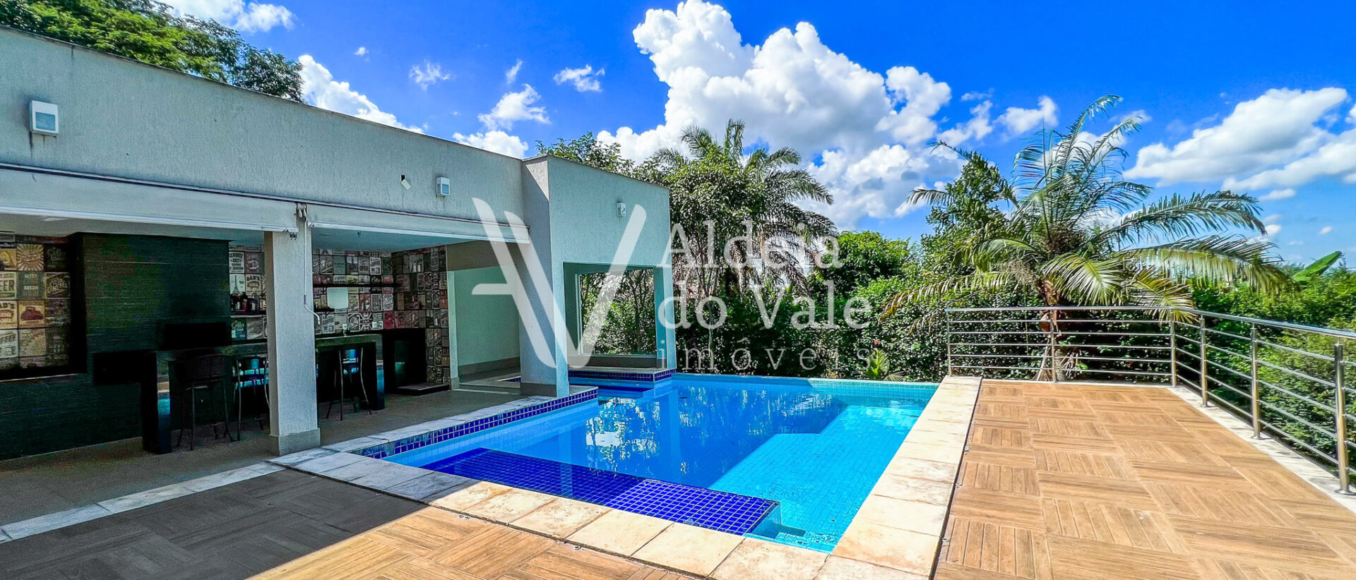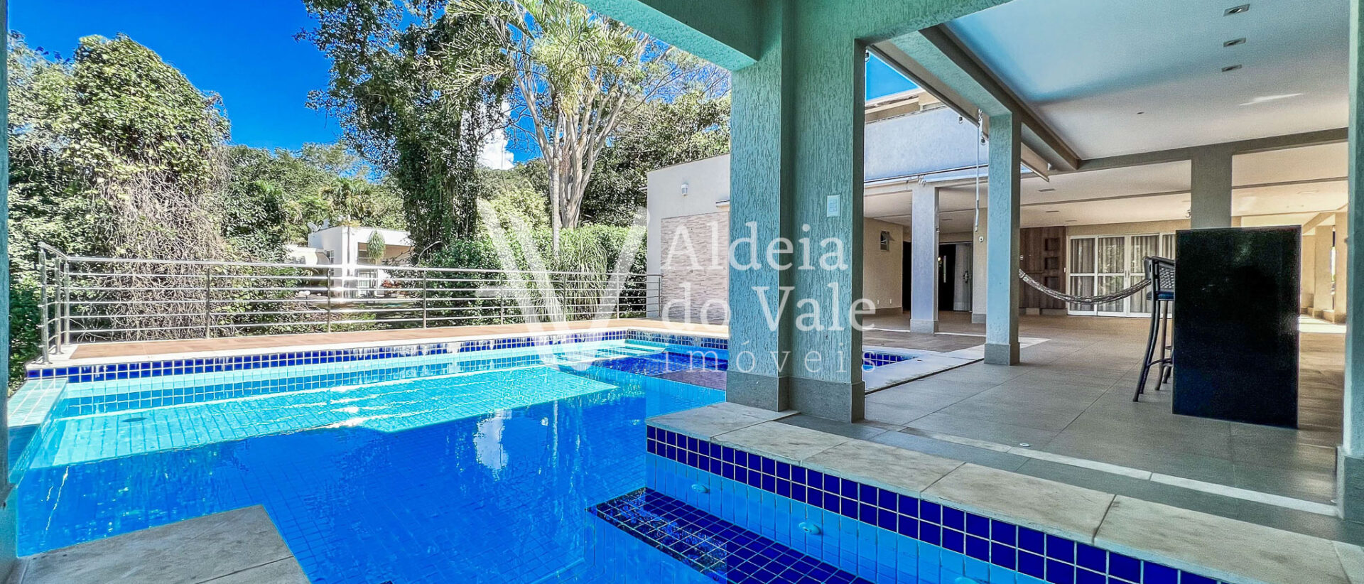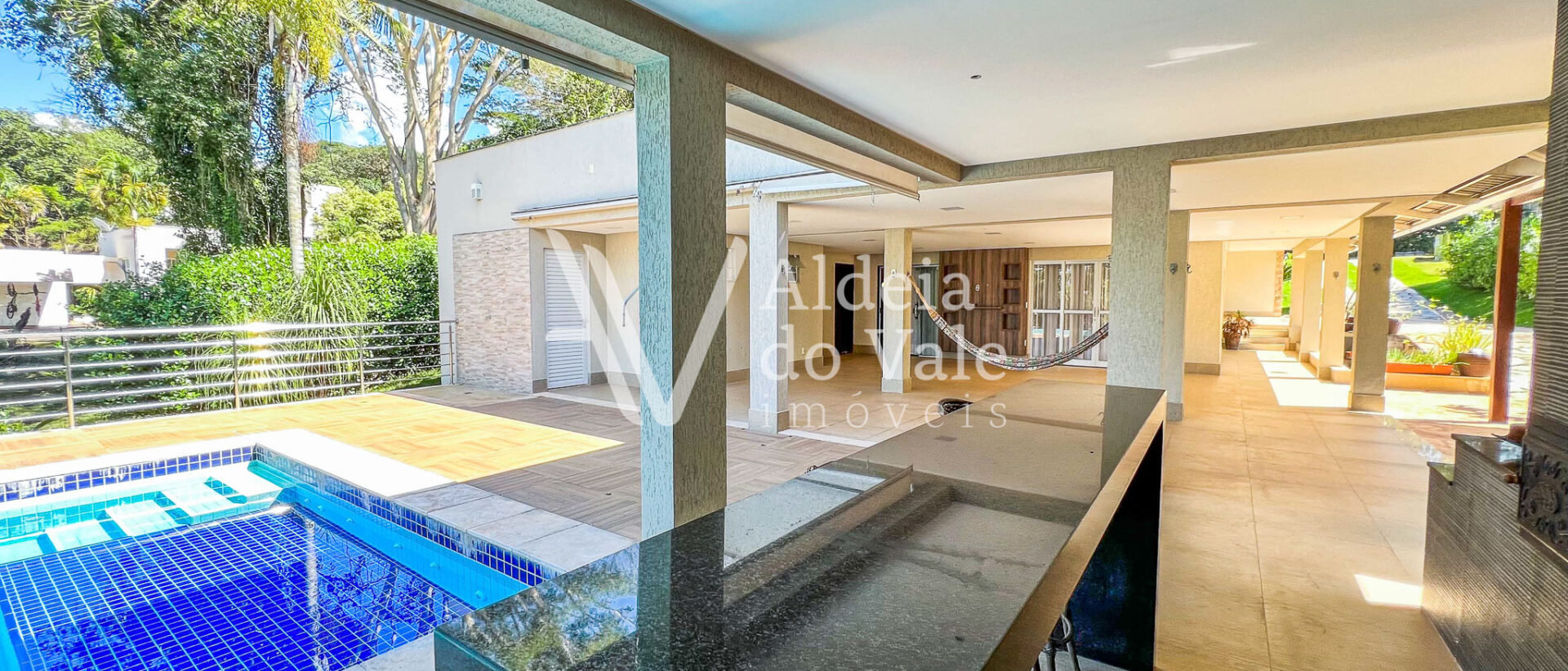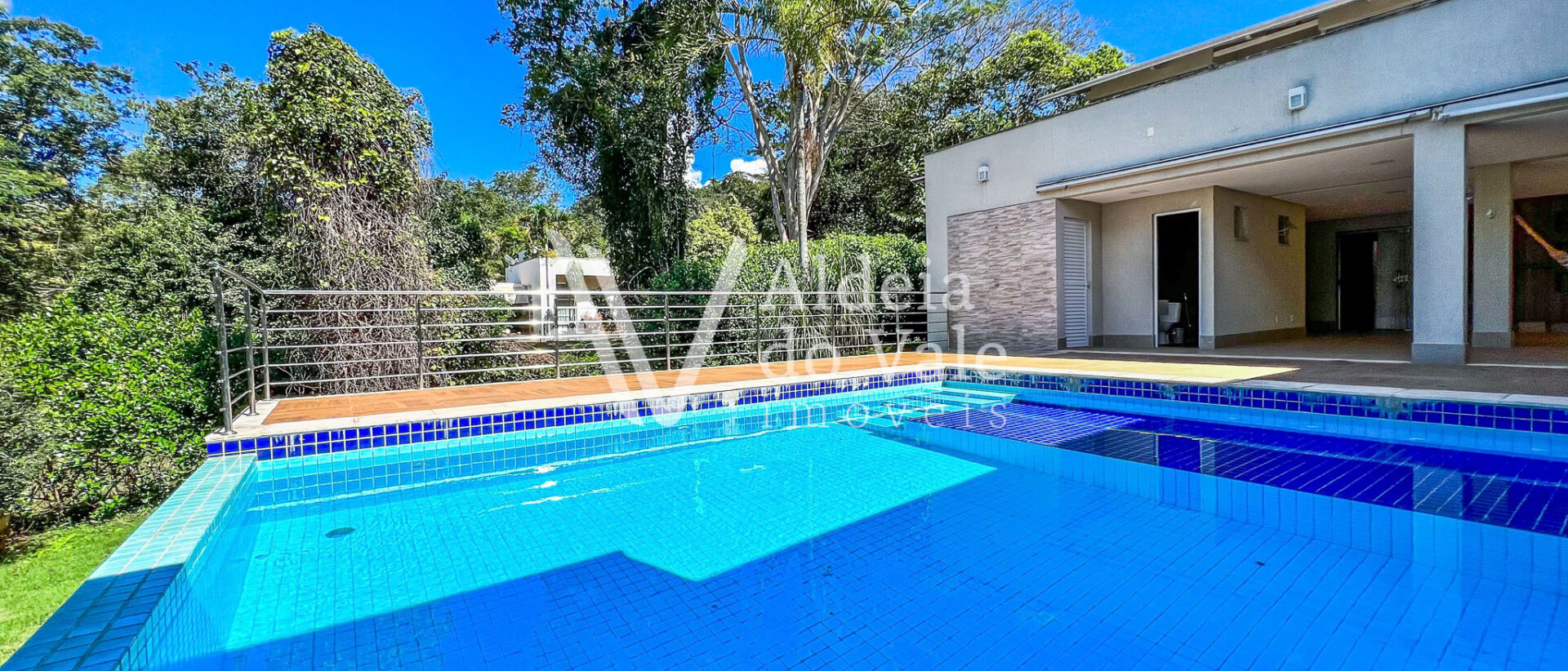 Encantador é o seu quintal e a piscina de borda infinita, que proporciona uma agradável integração da área gourmet com o bosque ao fundo do terreno. A sauna também está integrada com a piscina, sendo possível sair dela com um pulo direto na piscina.