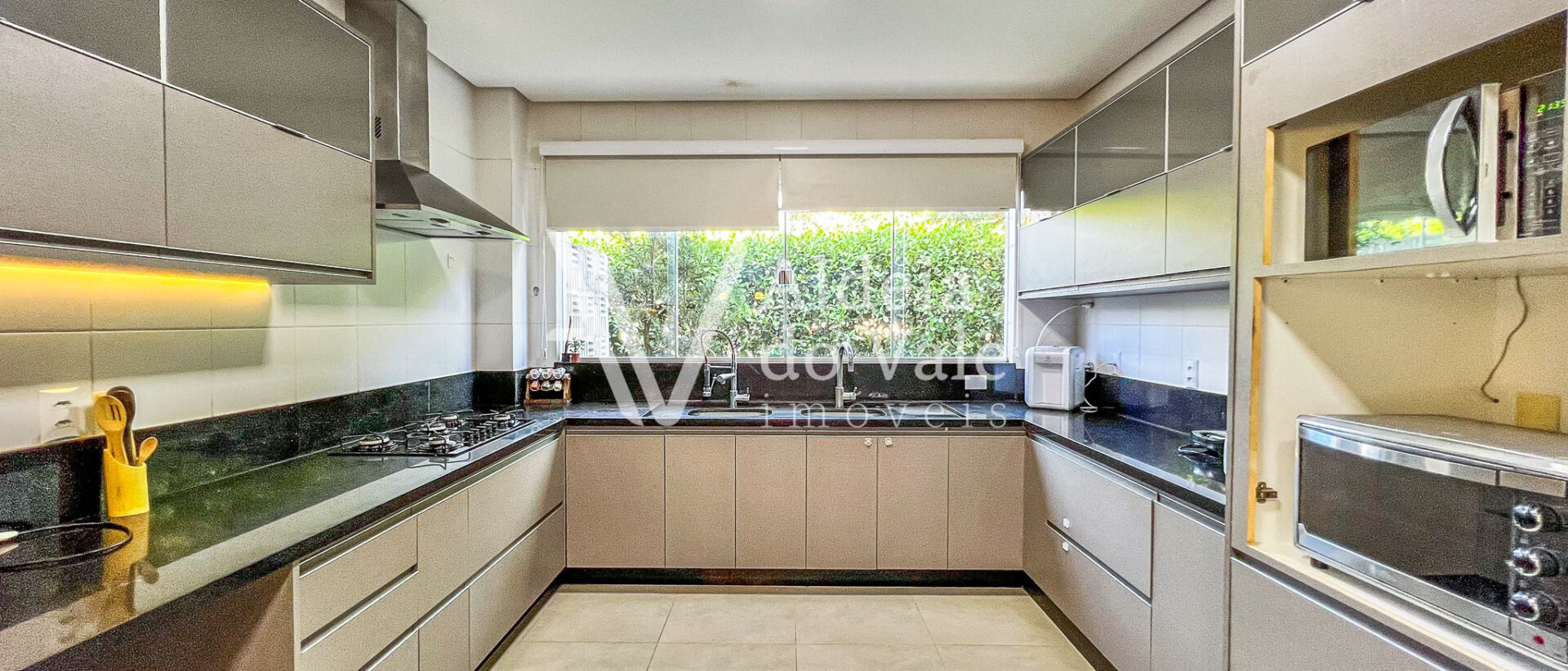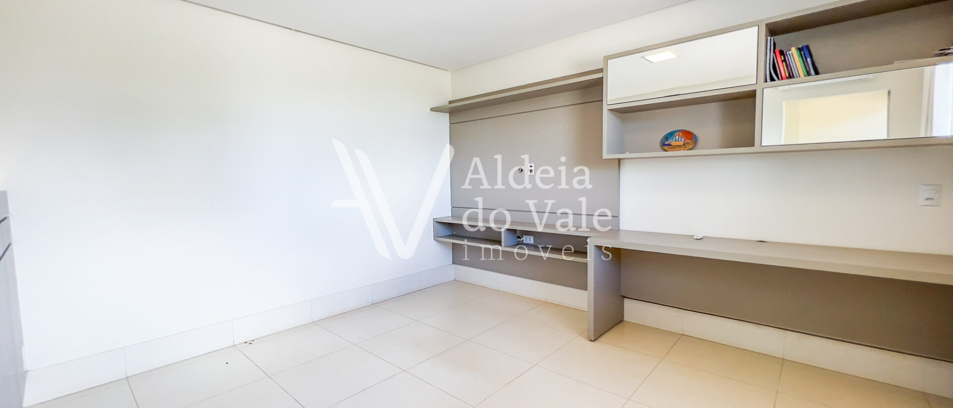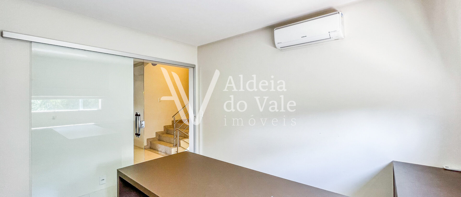 Possui copa no andar superior, escritório, sala de TV e jantar, e garagem coberta com 3 vagas.