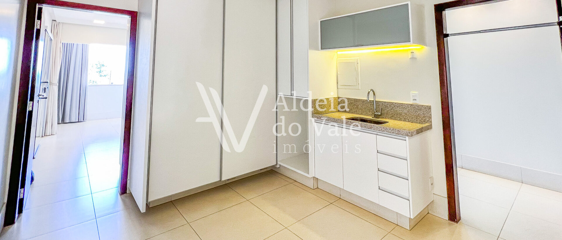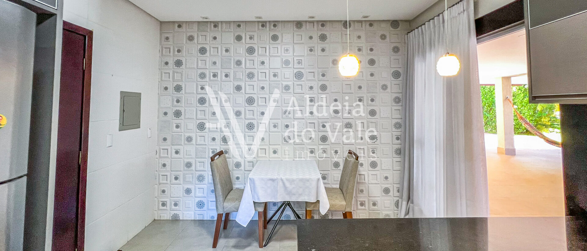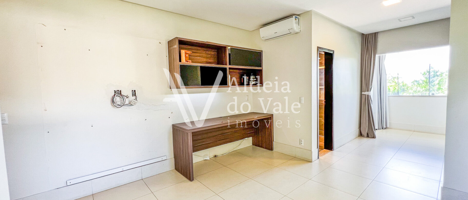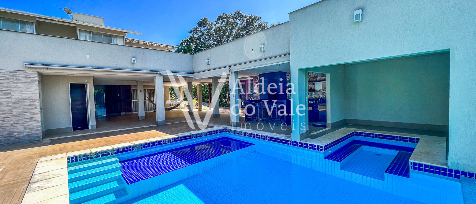 Possui copa no andar superior, escritório, sala de TV e jantar, e garagem coberta com 3 vagas.