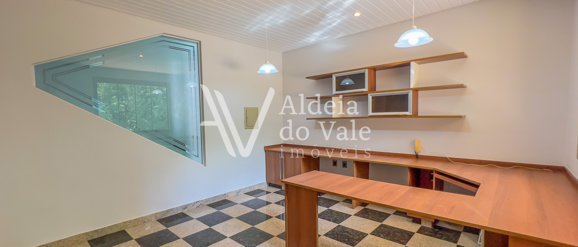 Com 5 suítes, 2 escritórios, cozinha ampla, lavanderia com quarto de empregada, elevador e espaço para ateliê ou oficina.