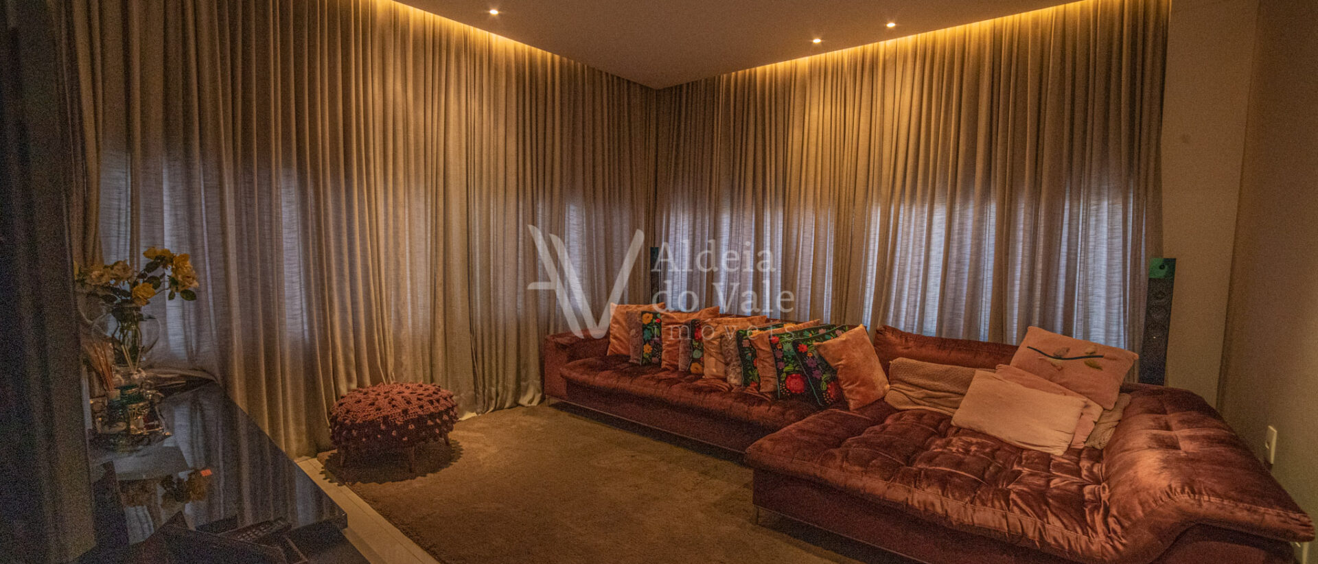 Projetada pela arquiteta Arytana Stefenoni está casa possui no térreo sala com 2 ambientes, Home Cinema, 4 suítes americanas (4 quartos e dois banheiros), Cozinha, Despensa, Área de serviço e Escaninho.