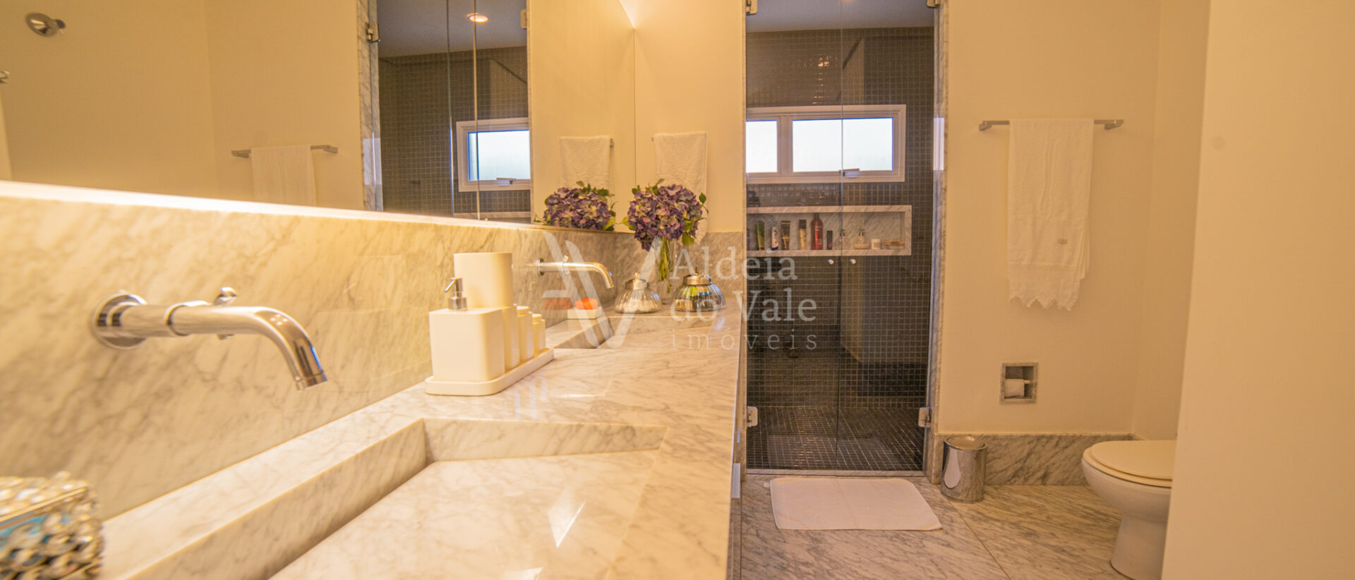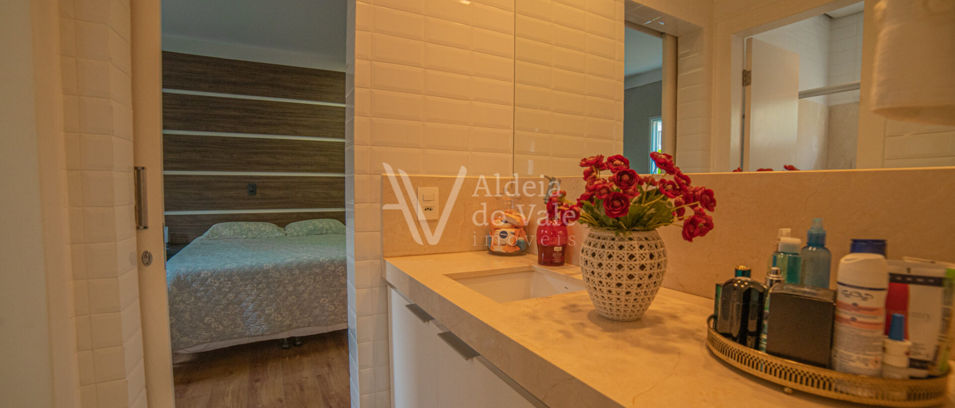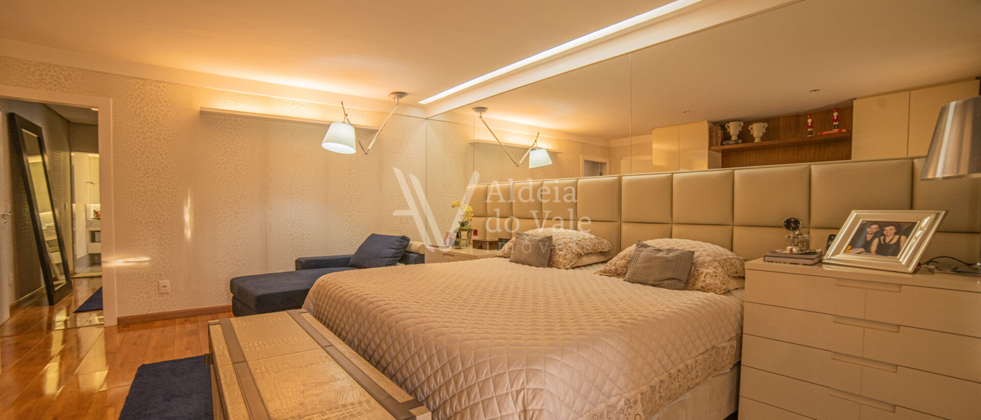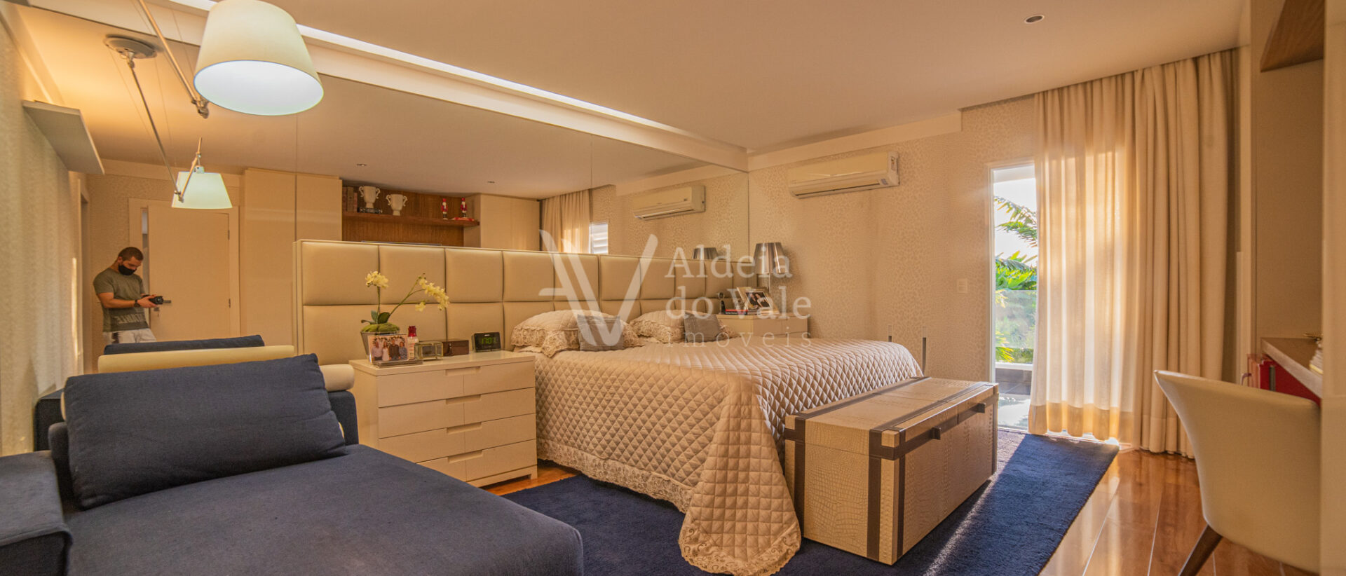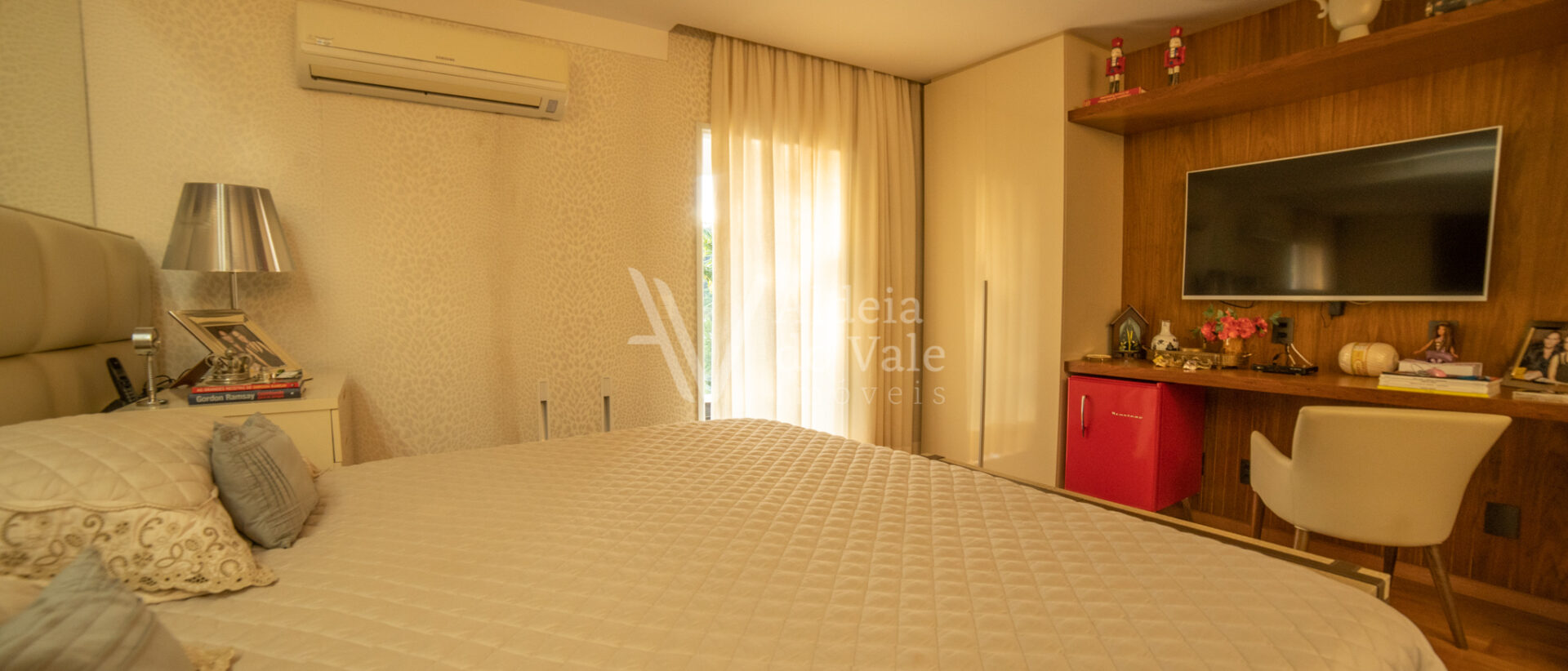 No piso superior se encontra uma ampla suíte, com closet e varanda com uma vista maravilhosa.