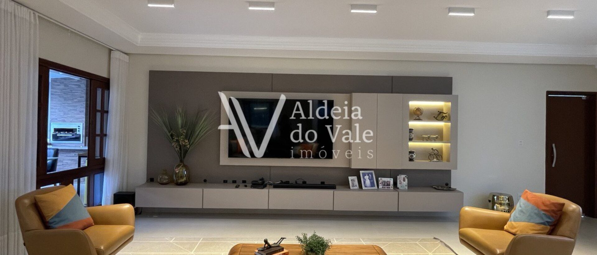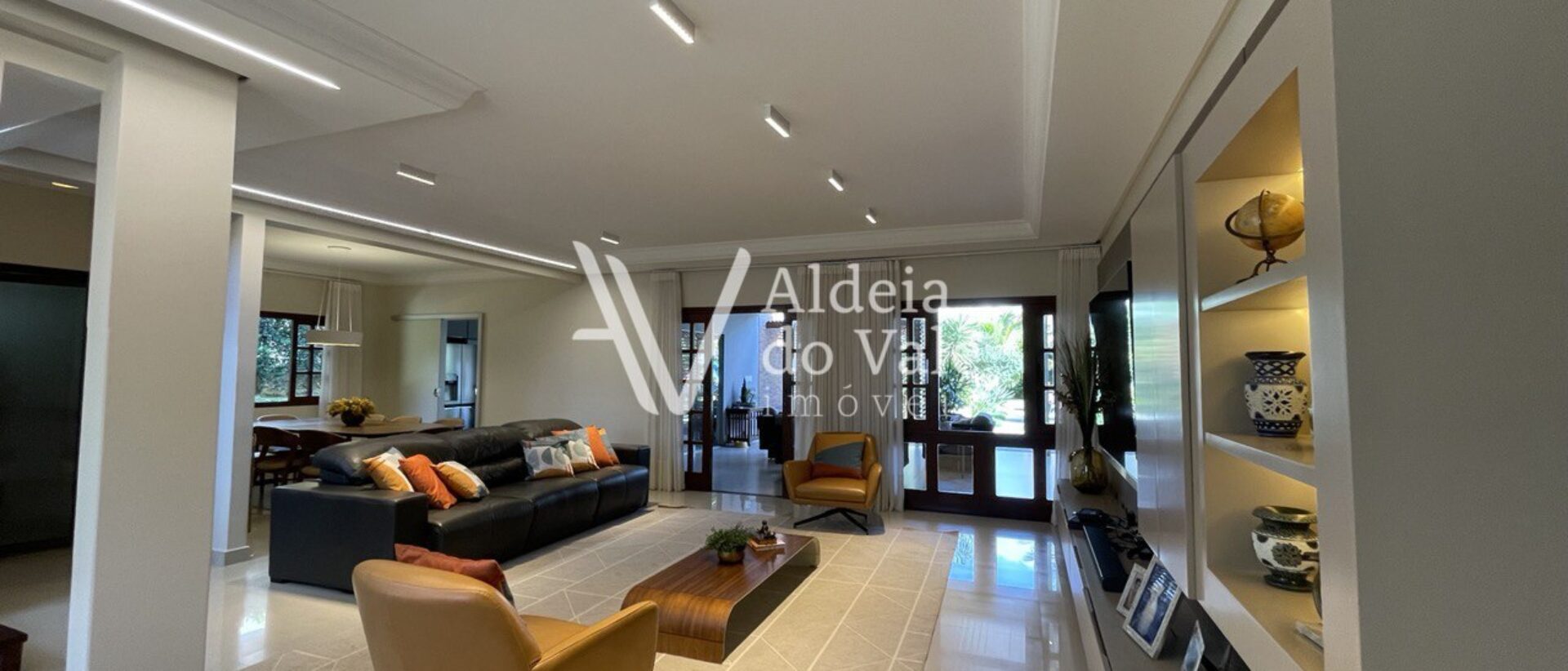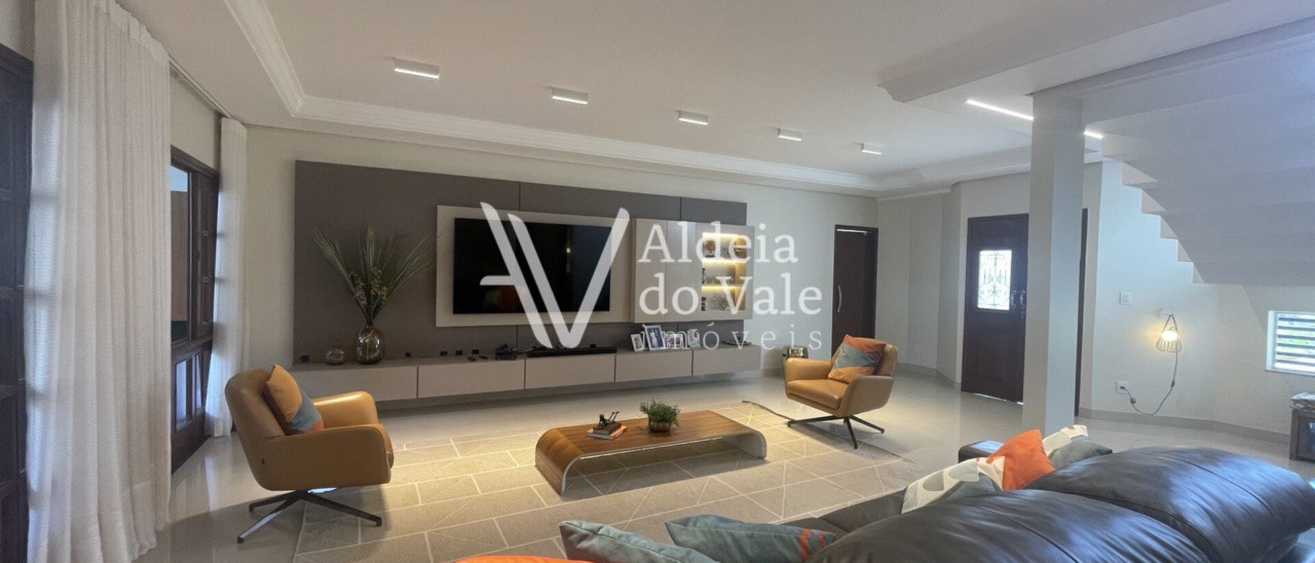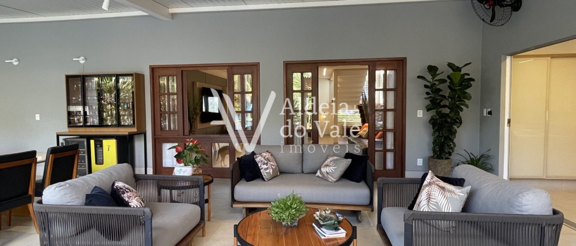 Pavimento térreo: Sala de estar, sala de jantar, lavabo, escritório, cozinha, área gourmet com churrasqueira, piscina, 1 suíte e 1 escritório externo.