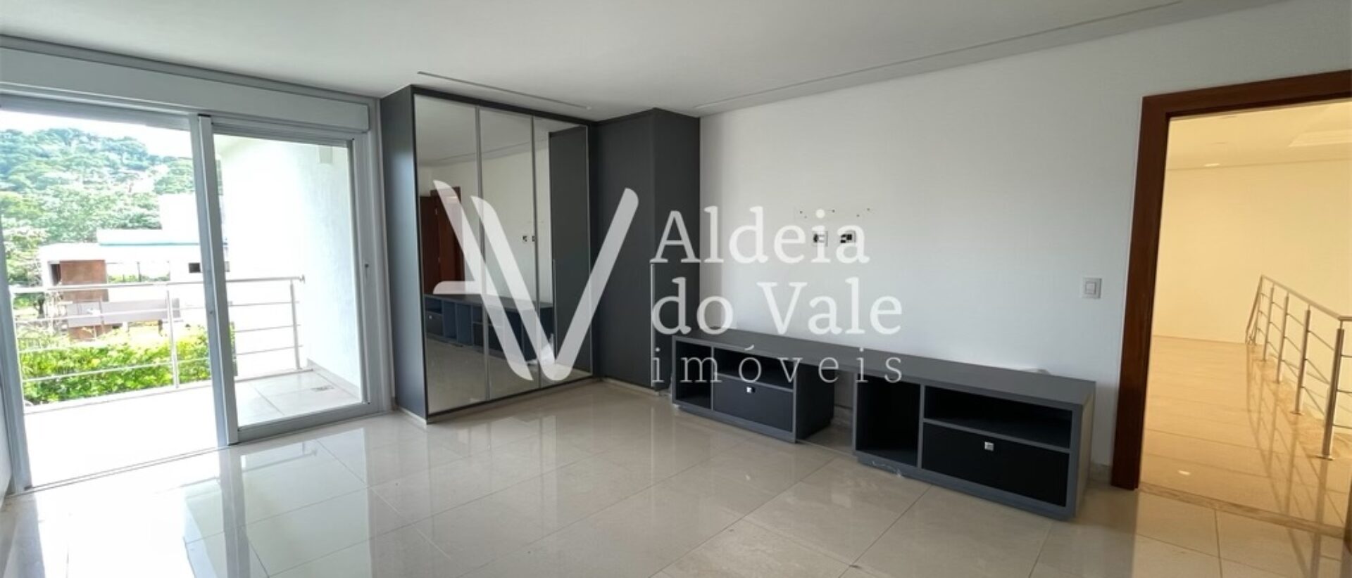 Piso superior com 4 suítes amplas com varanda, sendo 1 master com closet, hidro e maravilhosa vista para área verde.