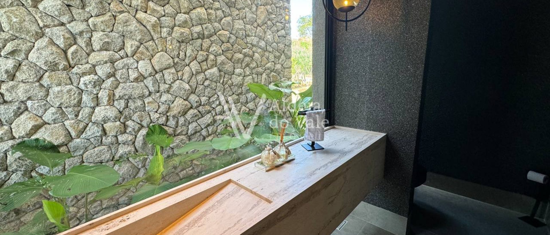 Com mármores, granitos e quartizitos, pedra moledo nas fachadas, pé direito duplo no hall de entrada com tensol flex, cozinha integrada com bancada de ilha, área de lazer com piscina em borda infinita, revestida com hijau, aquecida, com hidro e iluminada, com prainha!