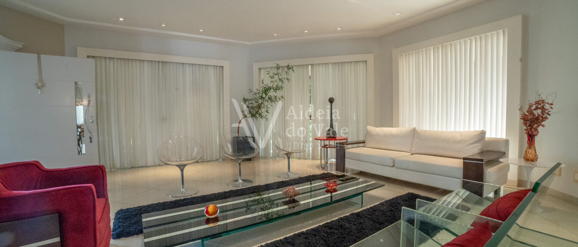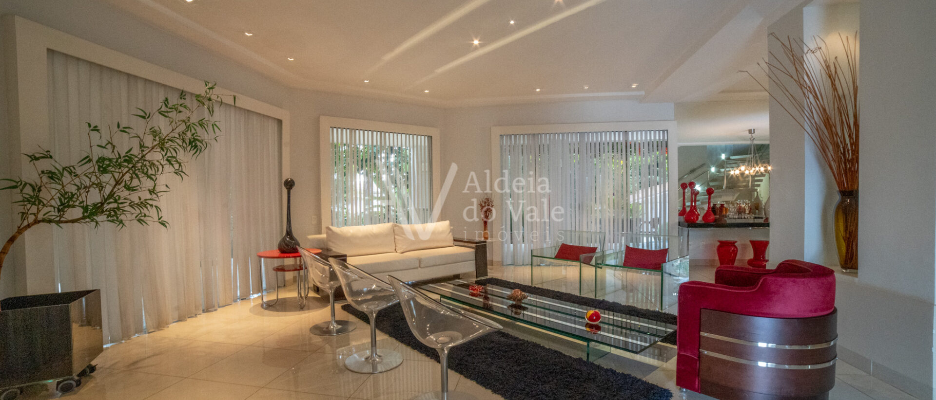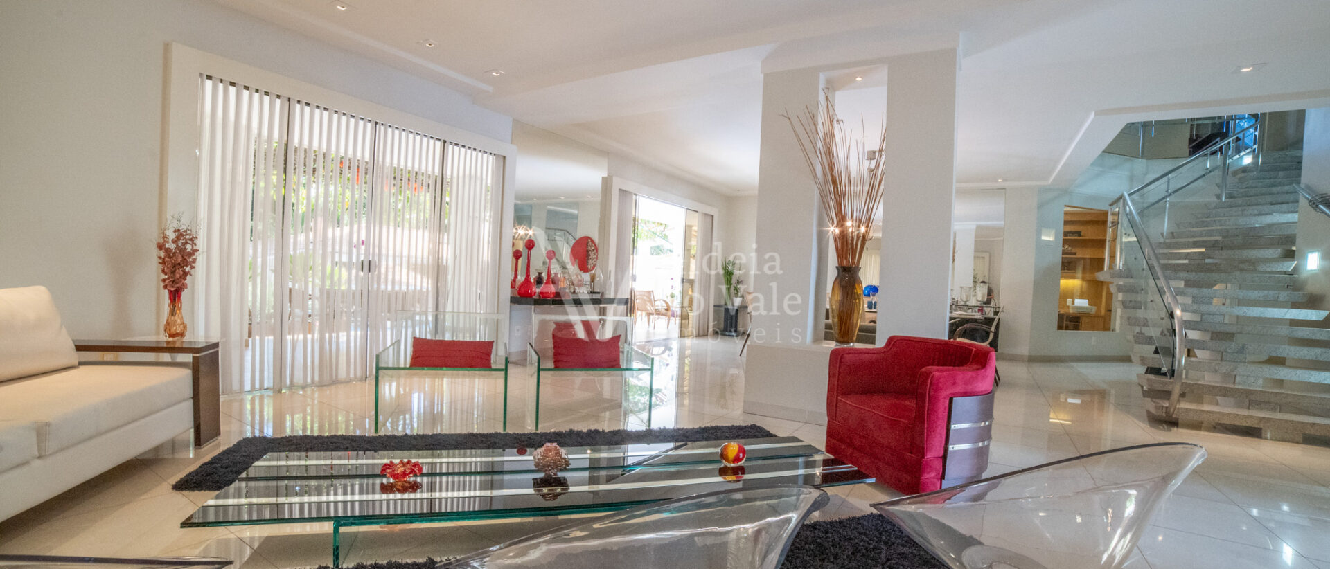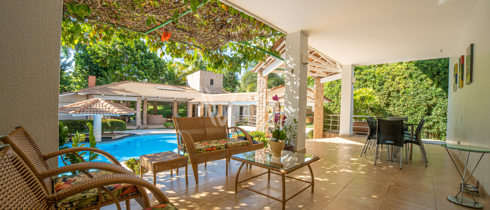 Este belo sobrado localizado em um fundo de vale com lagos é integrado na natureza. Cercado por palmeiras imperiais possui um pomar completo com aproximadamente 50 espécies frutíferas e horta.