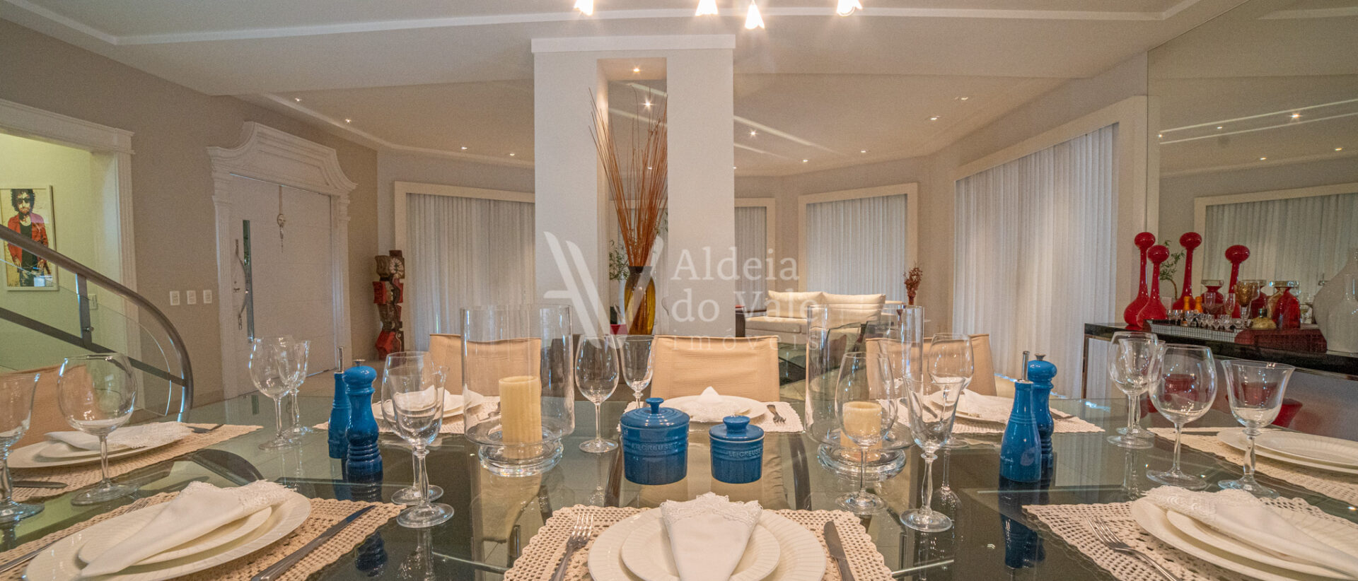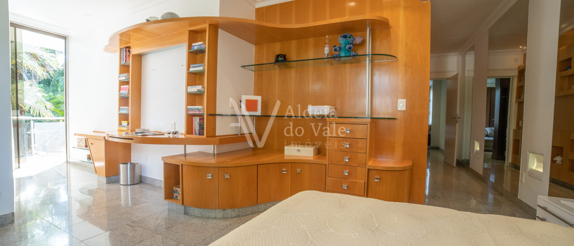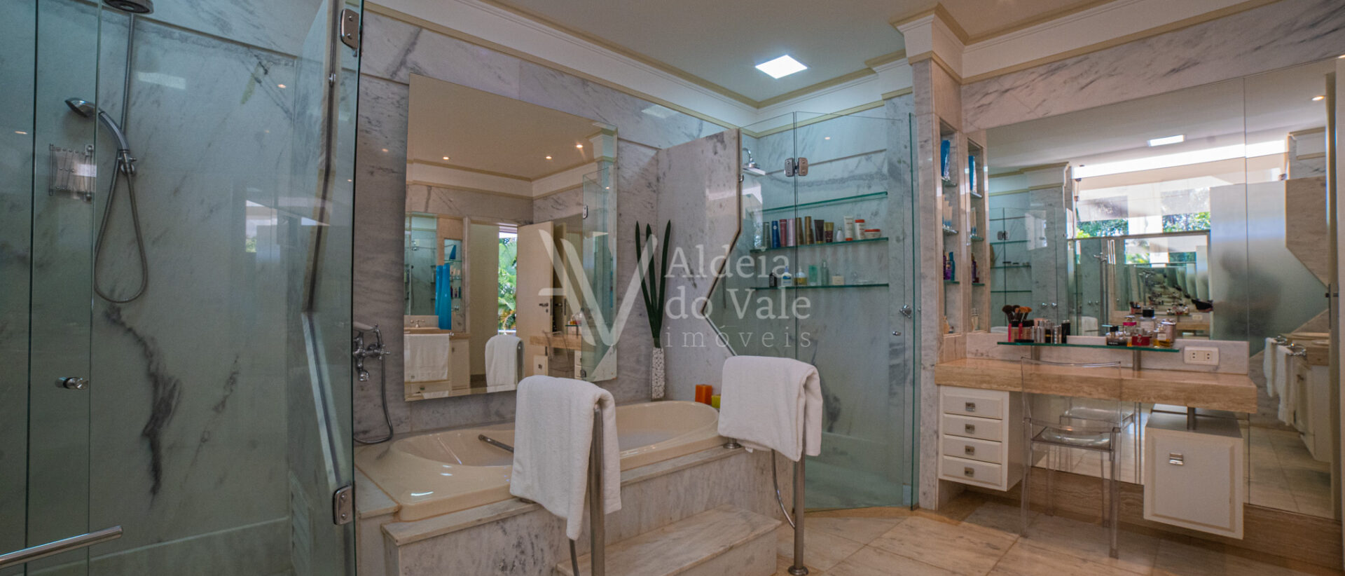 No piso superior são quatro suítes sendo uma máster com banheira, dois chuveiros e closet amplo, todas com varanda.