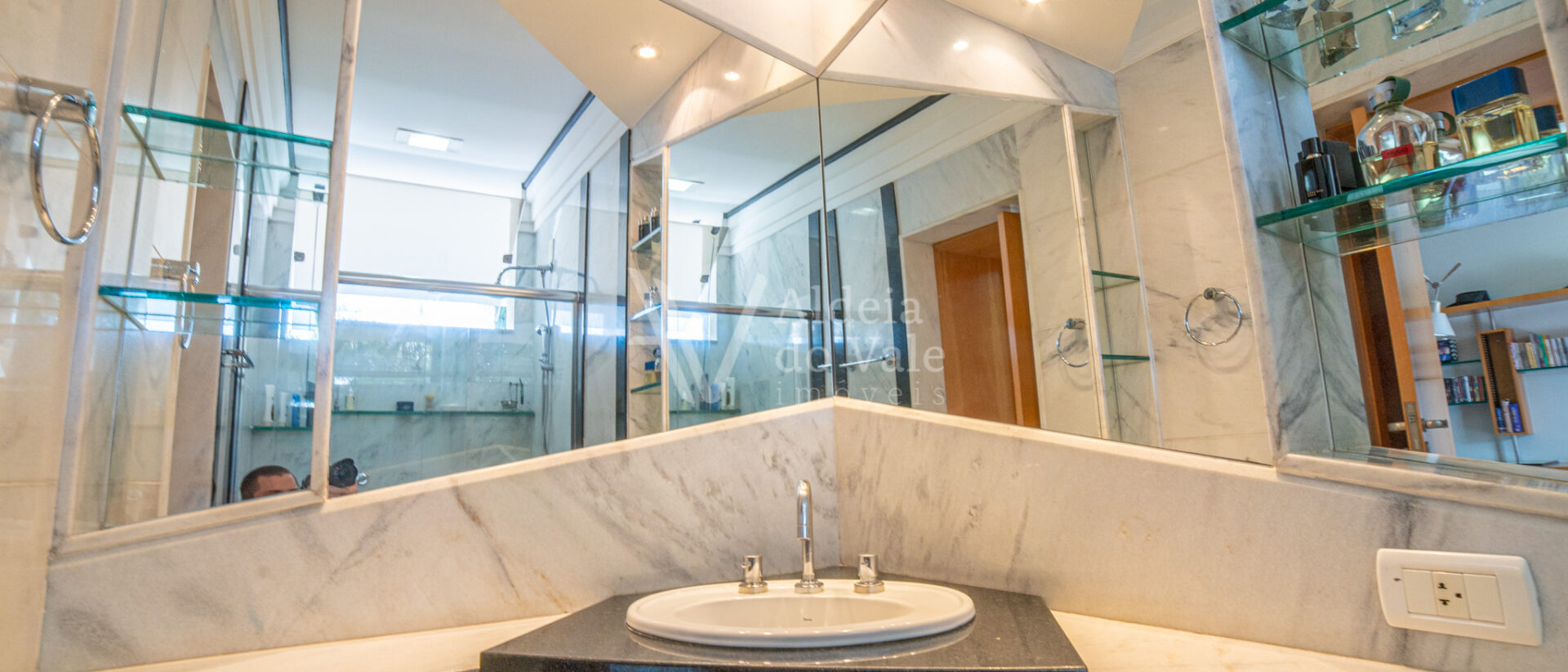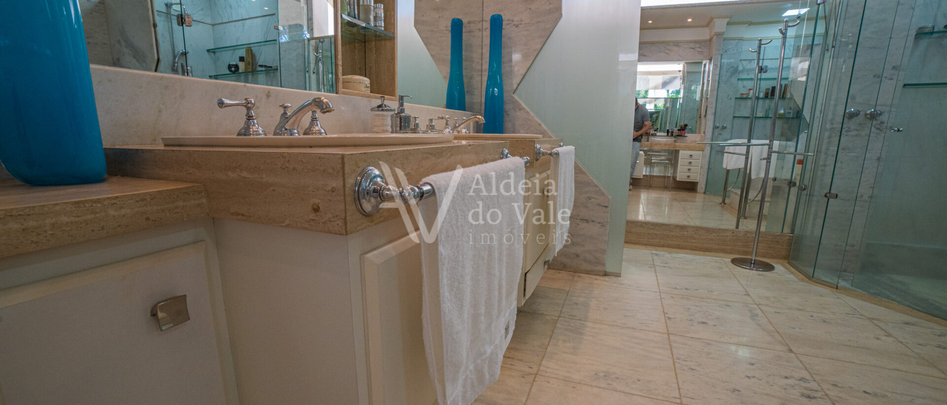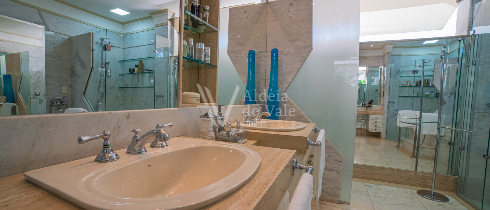 No piso superior são quatro suítes sendo uma máster com banheira, dois chuveiros e closet amplo, todas com varanda.