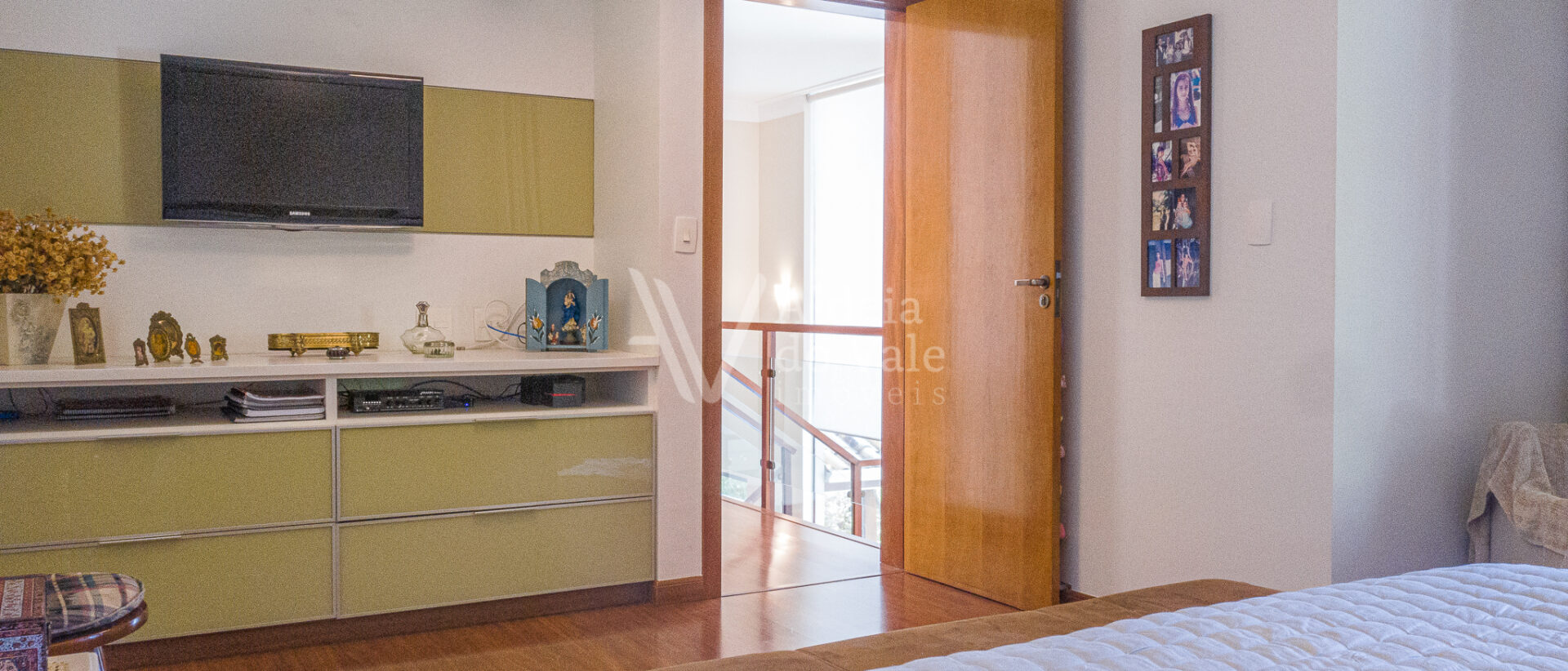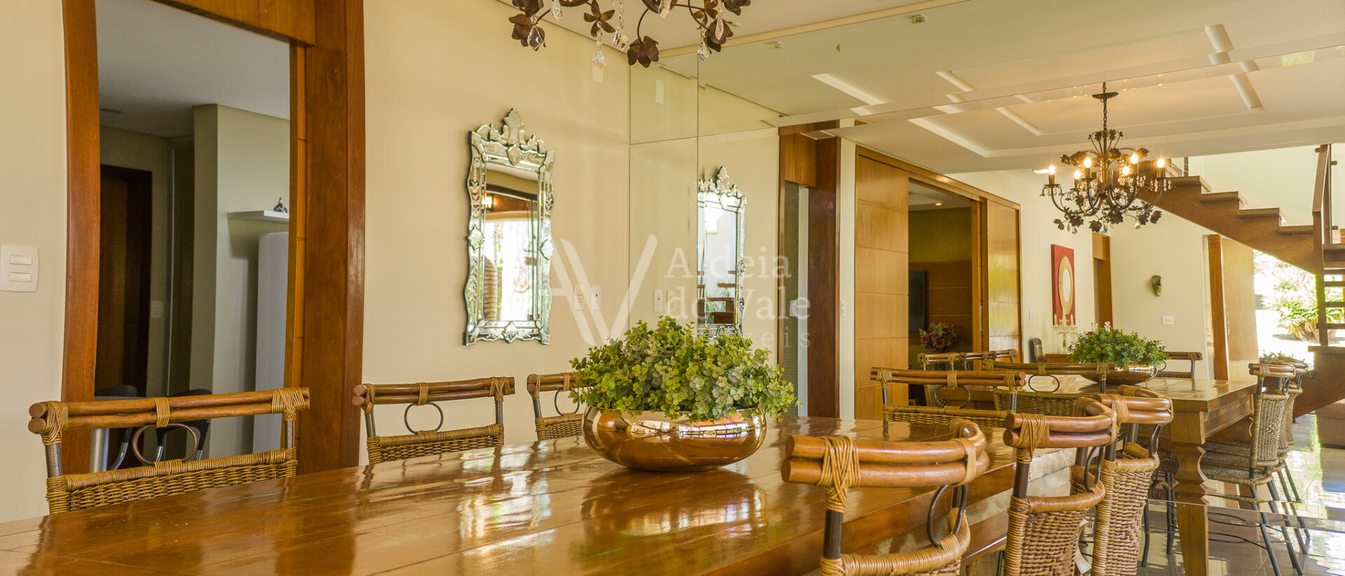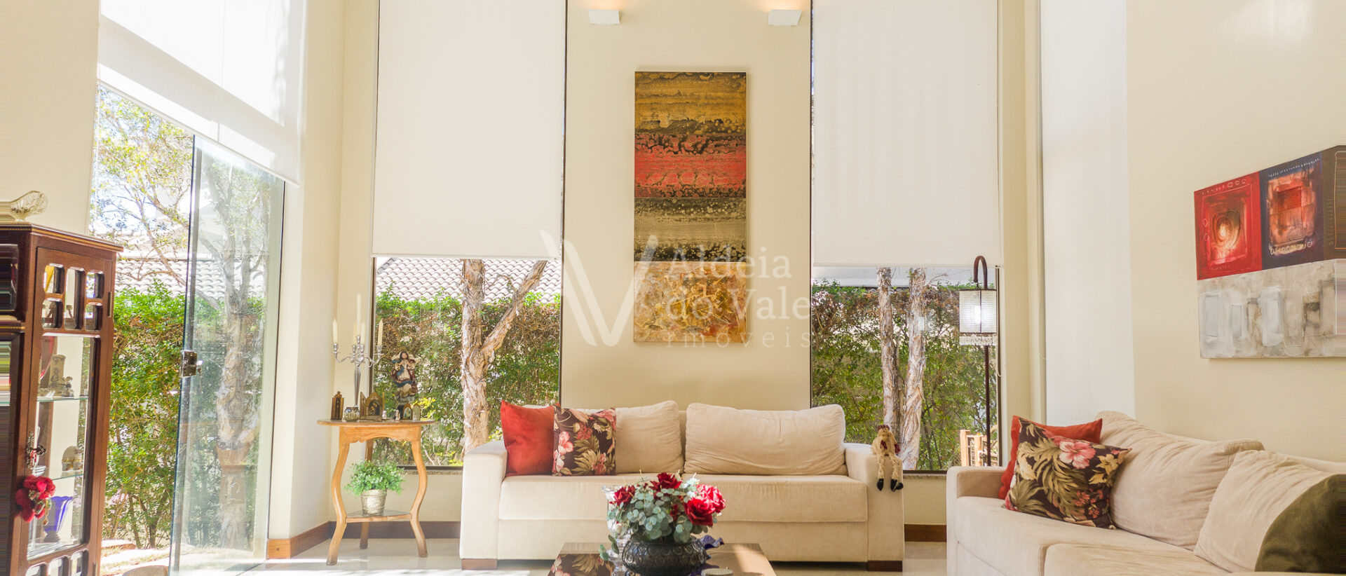 A sala de estar é ampla e arejada com pé direito duplo. São 4 suítes sendo uma no térreo. As 3 suítes superiores estão completas em armários e são duas suítes másters com closets.