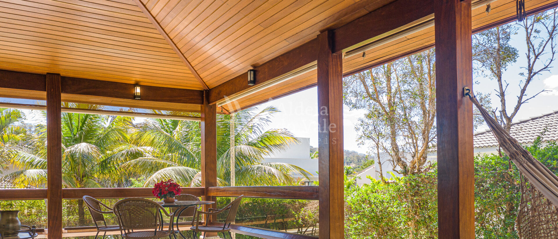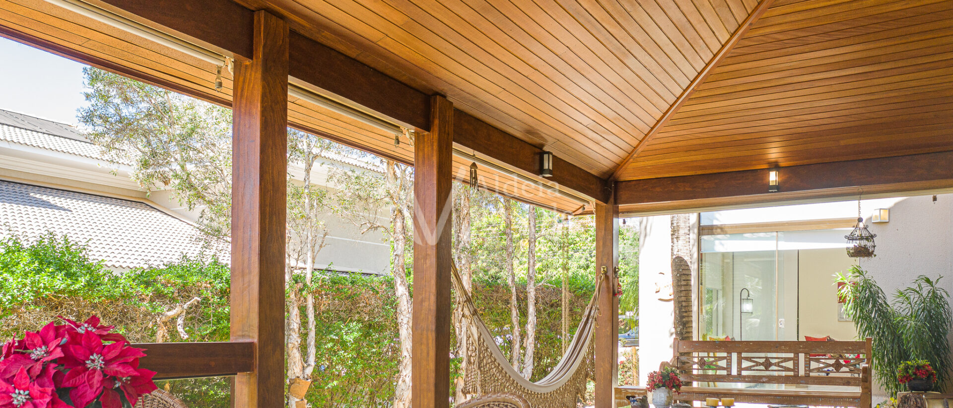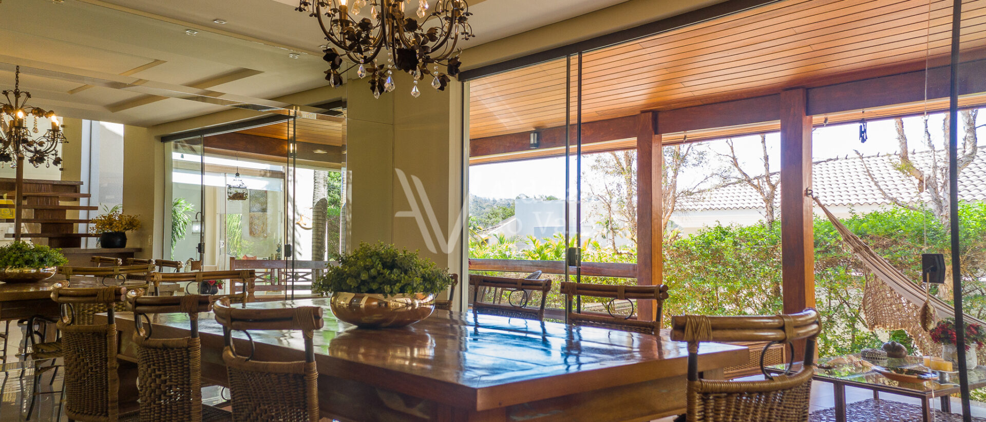 Ao entrar nesse sobrado tão bem decorado, com tanto carinho, bom gosto e cuidado, bate uma vontade de experimentar morar aqui. Cada ambiente é um verdadeiro recanto. Para os amantes da boa culinária tem uma área gourmet na varanda integrada à cozinha que é perfeita para cozinhar apreciando o belíssimo pôr de sol no final de tarde, tem o quiosque maravilhoso com boca de fogão industrial, escorredor projetado para panelas grandes e com lugar especial para pendurar os discos de roda de fritar bifes, tudo sob medida e com a boa e companheira rede pra tirar um cochilo depois do almoço de final de semana.