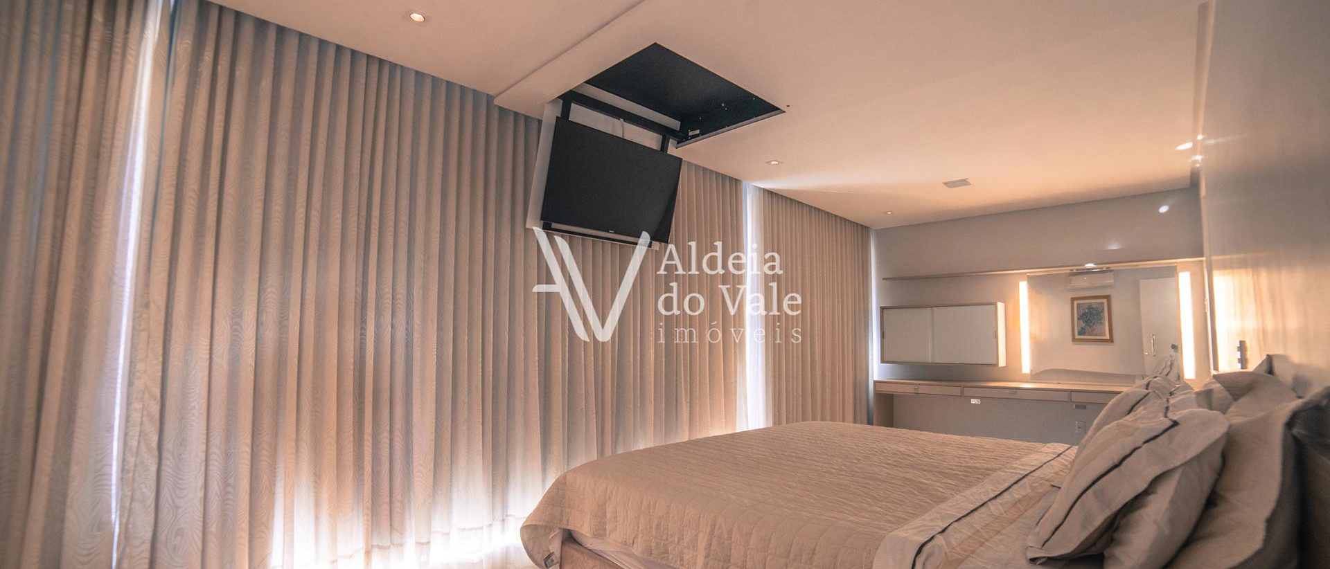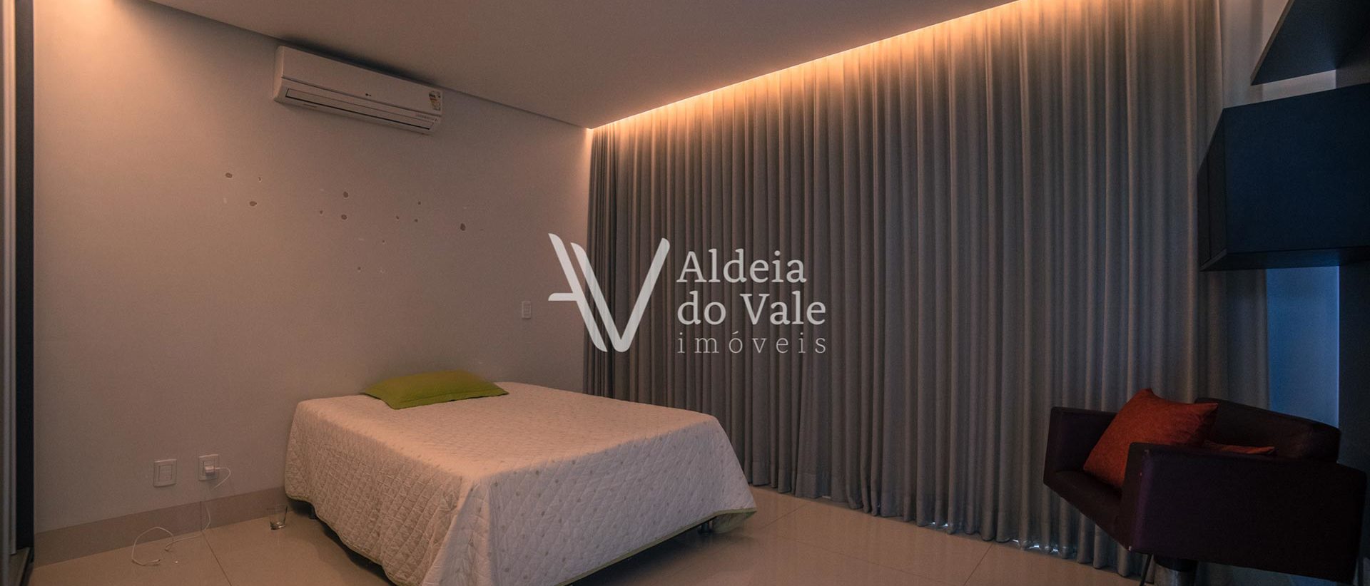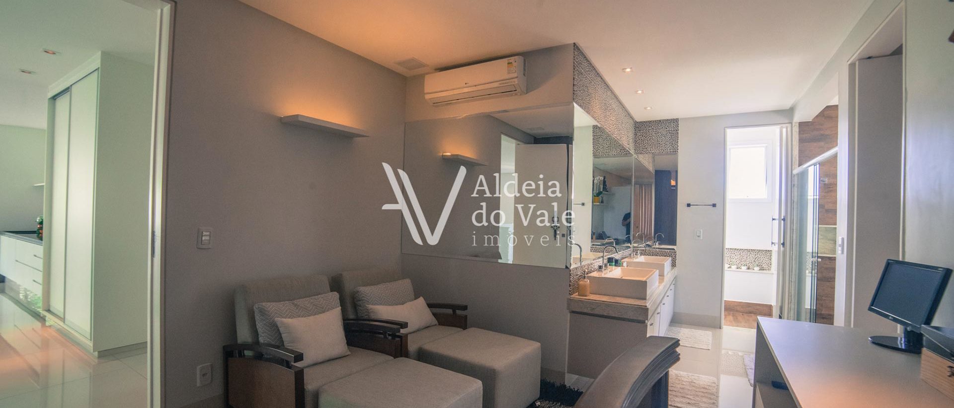 O gosto refinado na escolha de todo o acabamento, trazendo a beleza de fora para dentro, mármores, iluminação, espelho d’agua com fonte, pedras exclusivas, pisos e bancadas, e nos armários de alto padrão, metais dos banheiros, pedras naturais, qualidade das hidros, que garantem o relaxamento perfeito após um dia de dedicação. São 4 suítes no piso superior (sendo 3 masters) e 1 suíte no térreo. O jardim possui irrigação automática abastecida pelo poço artesiano.