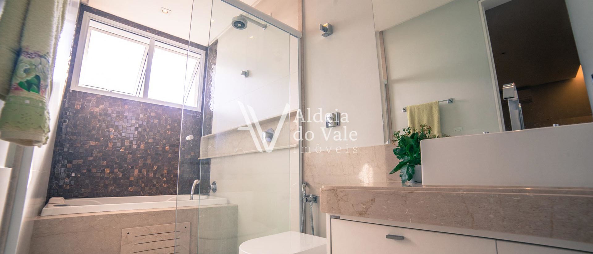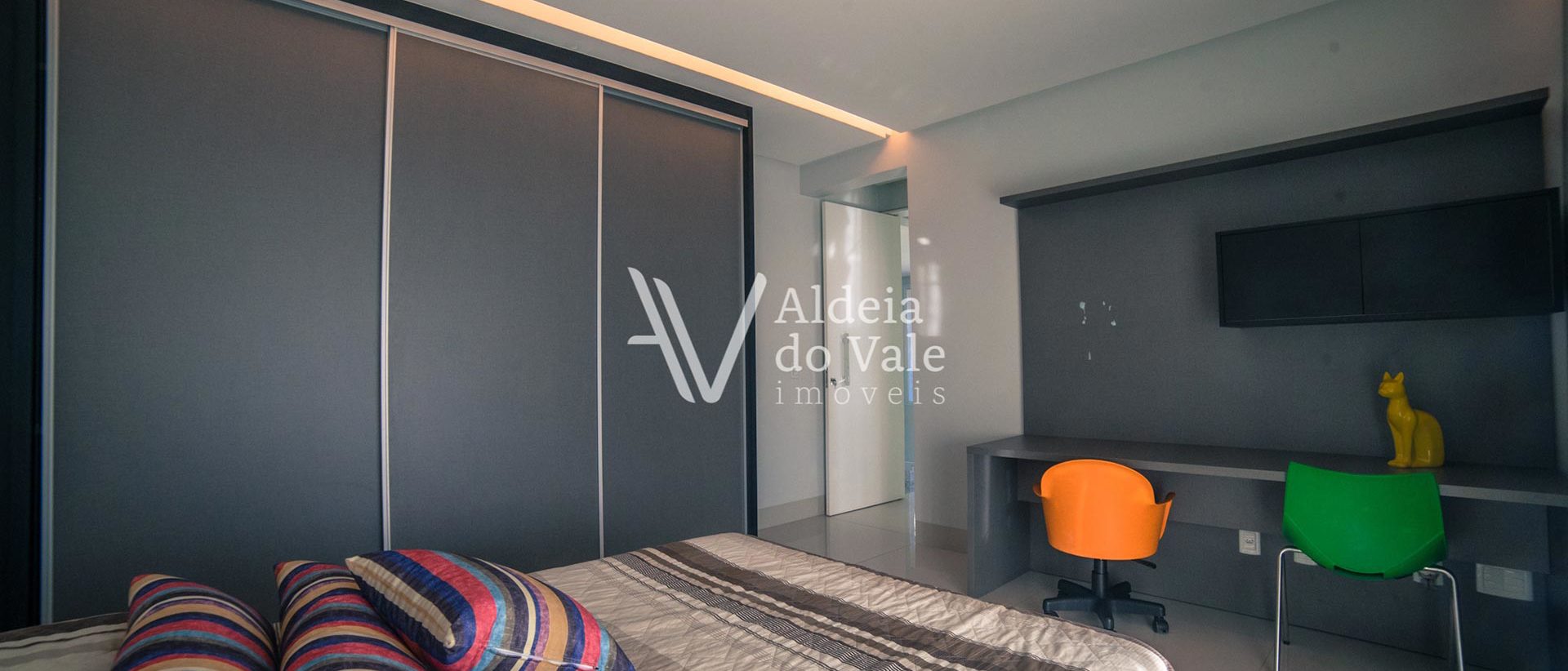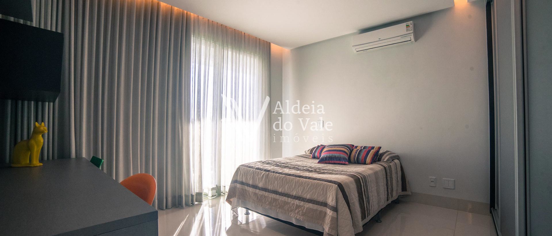 O gosto refinado na escolha de todo o acabamento, trazendo a beleza de fora para dentro, mármores, iluminação, espelho d’agua com fonte, pedras exclusivas, pisos e bancadas, e nos armários de alto padrão, metais dos banheiros, pedras naturais, qualidade das hidros, que garantem o relaxamento perfeito após um dia de dedicação. São 4 suítes no piso superior (sendo 3 masters) e 1 suíte no térreo. O jardim possui irrigação automática abastecida pelo poço artesiano.