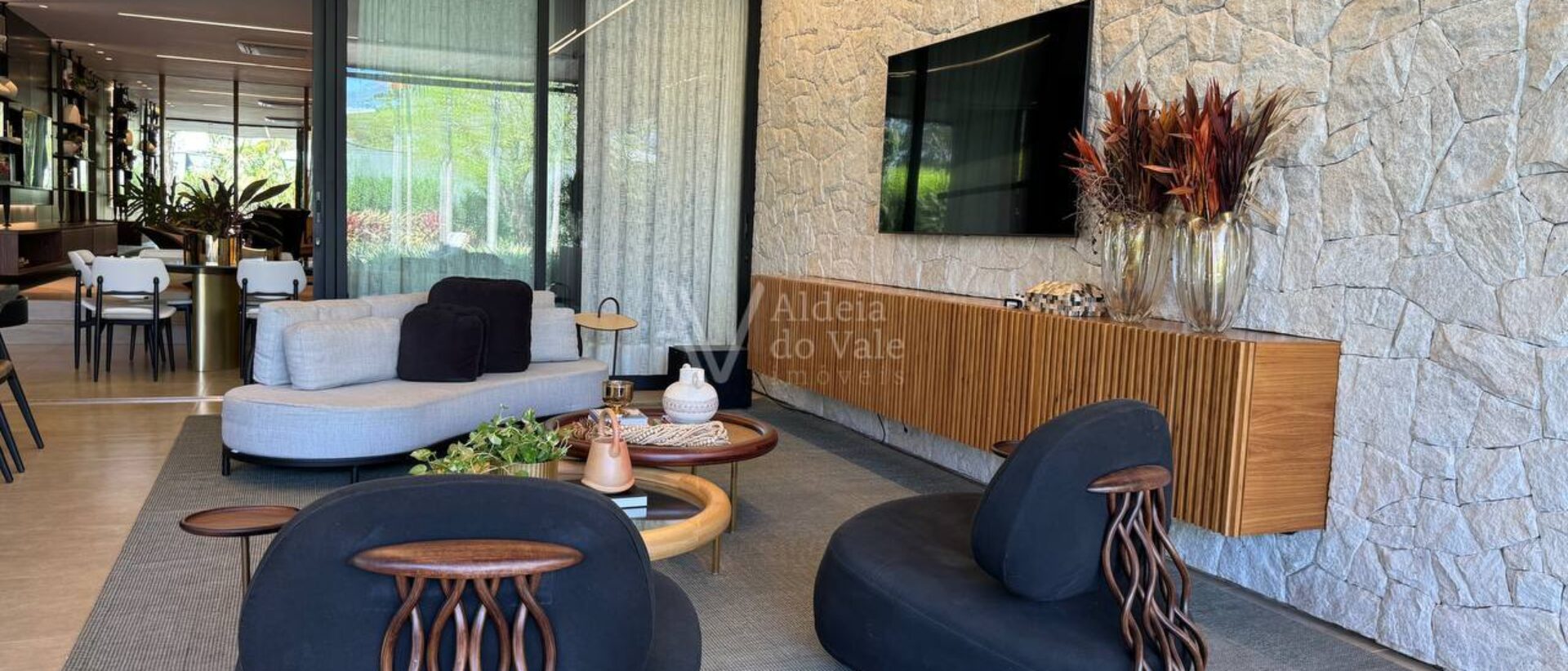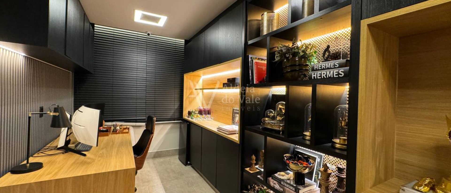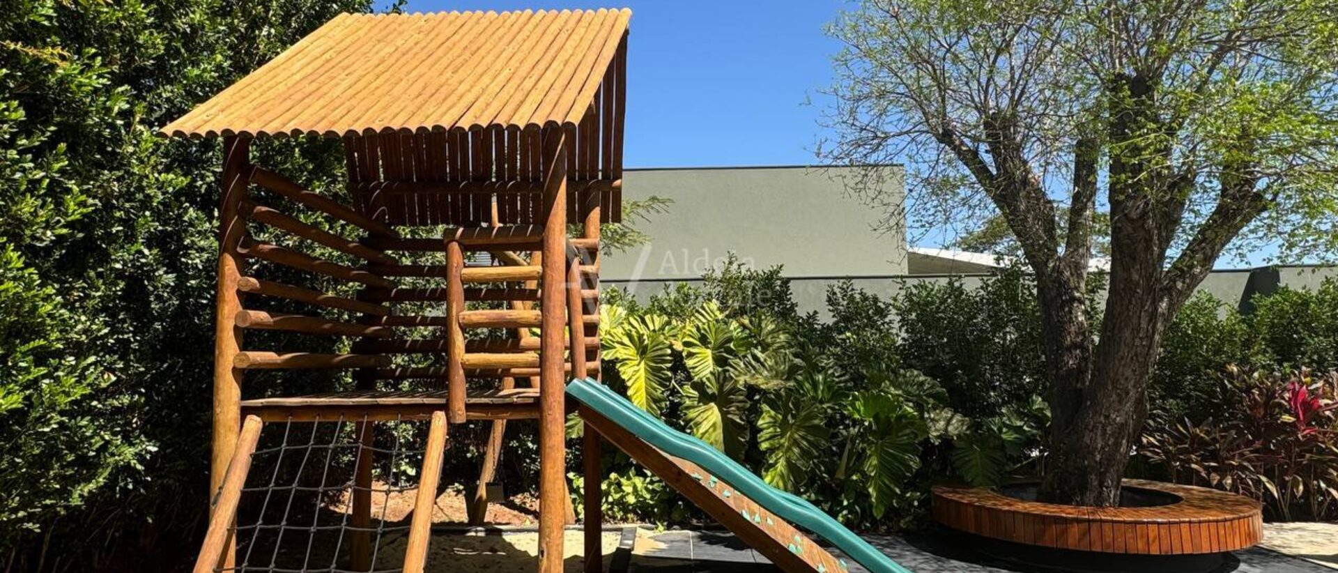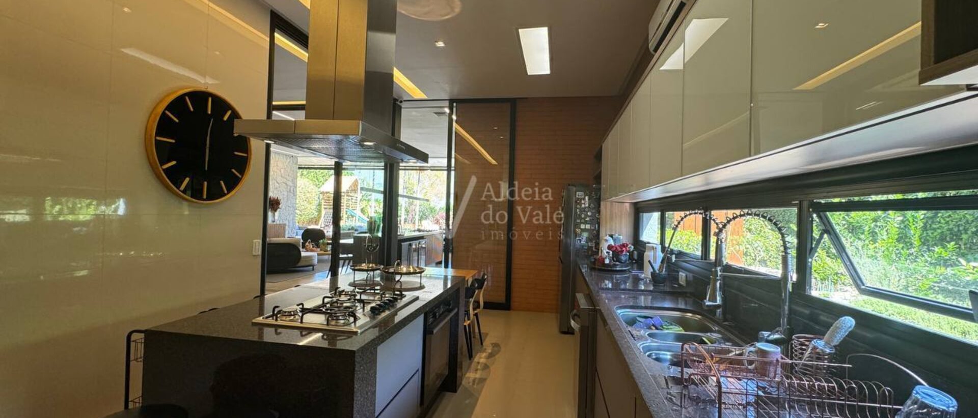 Possui 3 suítes e um escritório com banheiro, sala ampla, cozinha completa, área de lazer com churrasqueira e forno a lenha, e parquinho com piso amortecedor.