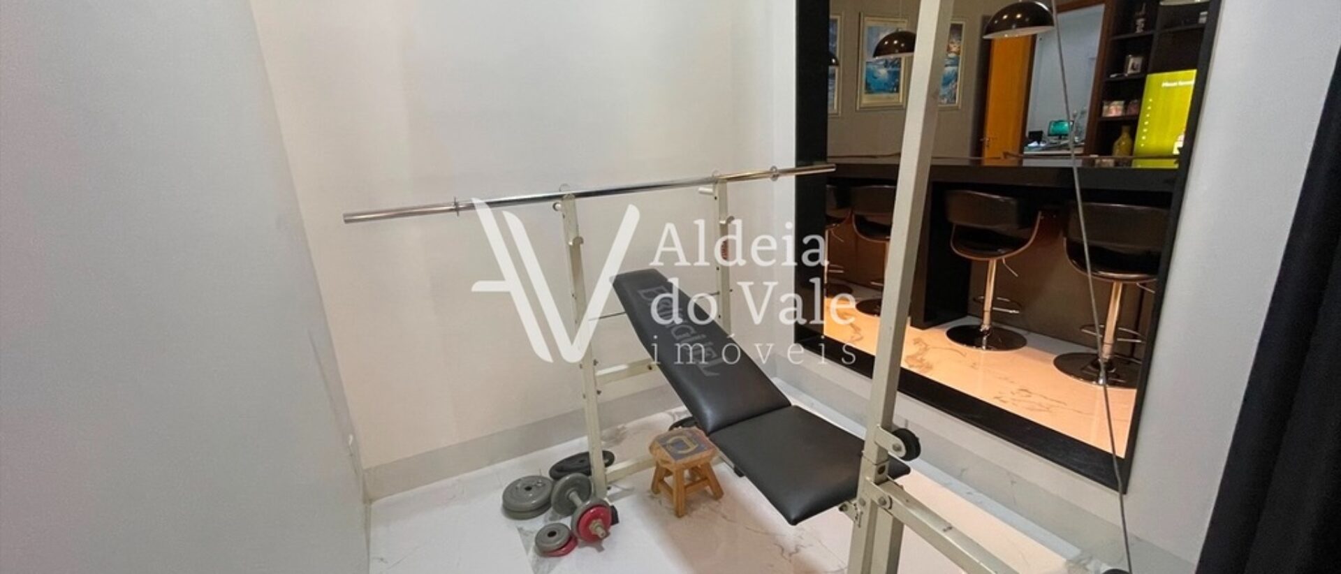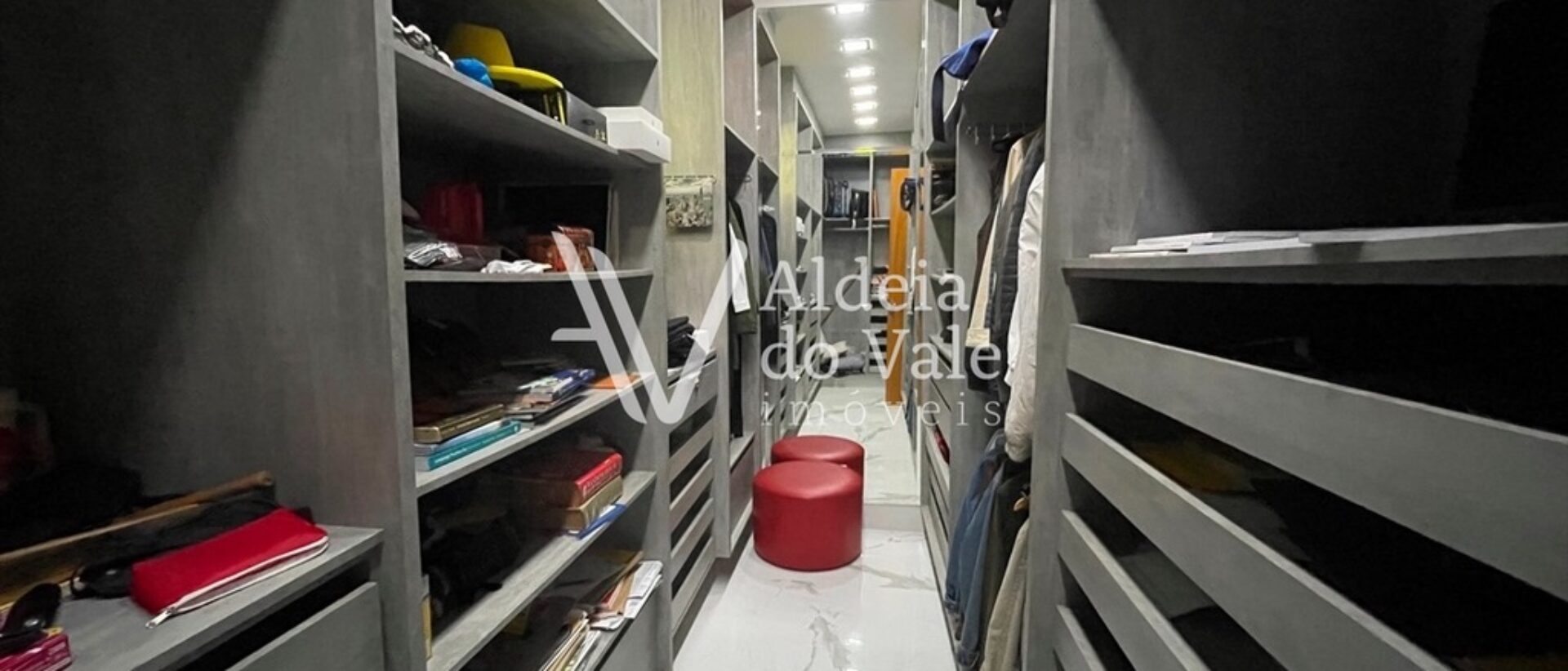 A distribuição do imóvel é excelente, com 5 suítes amplas, uma mobiliada como escritório, Home Theater, sala de ginástica, 2 despensas, DCE, garagem coberta para 3 carros e pátio de estacionamento muito amplo, banheiro externo, um sótão imenso que pode ser aproveitado para salão de jogos, academia, biblioteca ou qualquer outro lazer. Impecável em acabamento, com venezianas automatizadas, iluminação e ar condicionado, piso no porcelanato, uma cascata na sala, completíssima em armários.