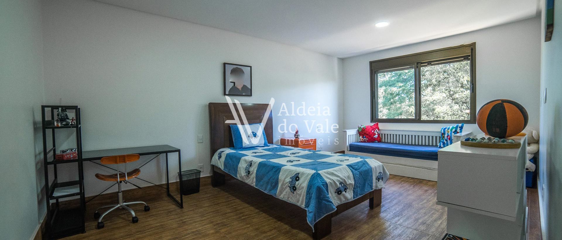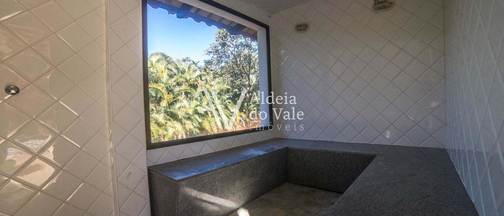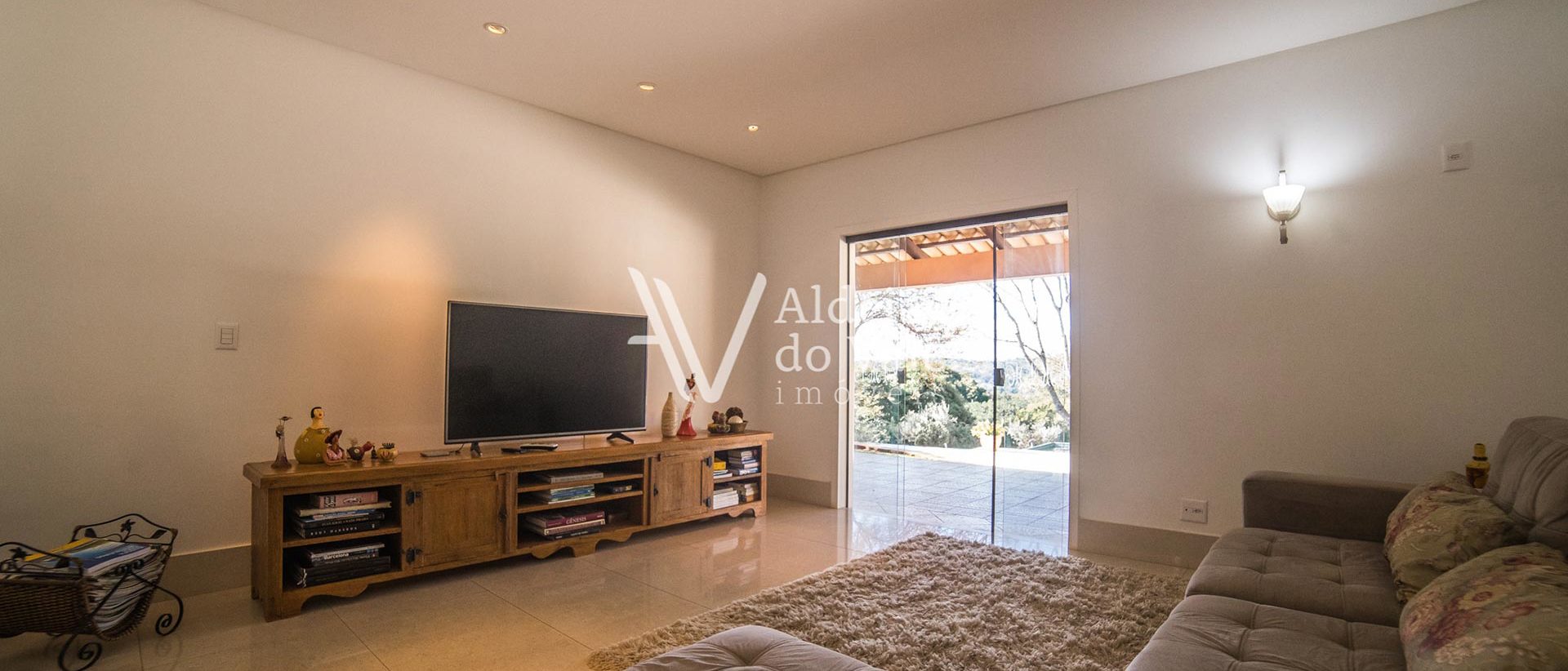 Salas amplas com lareira e um pé direito duplo com lambril de madeira. Sala de TV, cozinha gourmet, sauna e um ambiente versátil para brinquedoteca, sala de ginástica ou atelier.