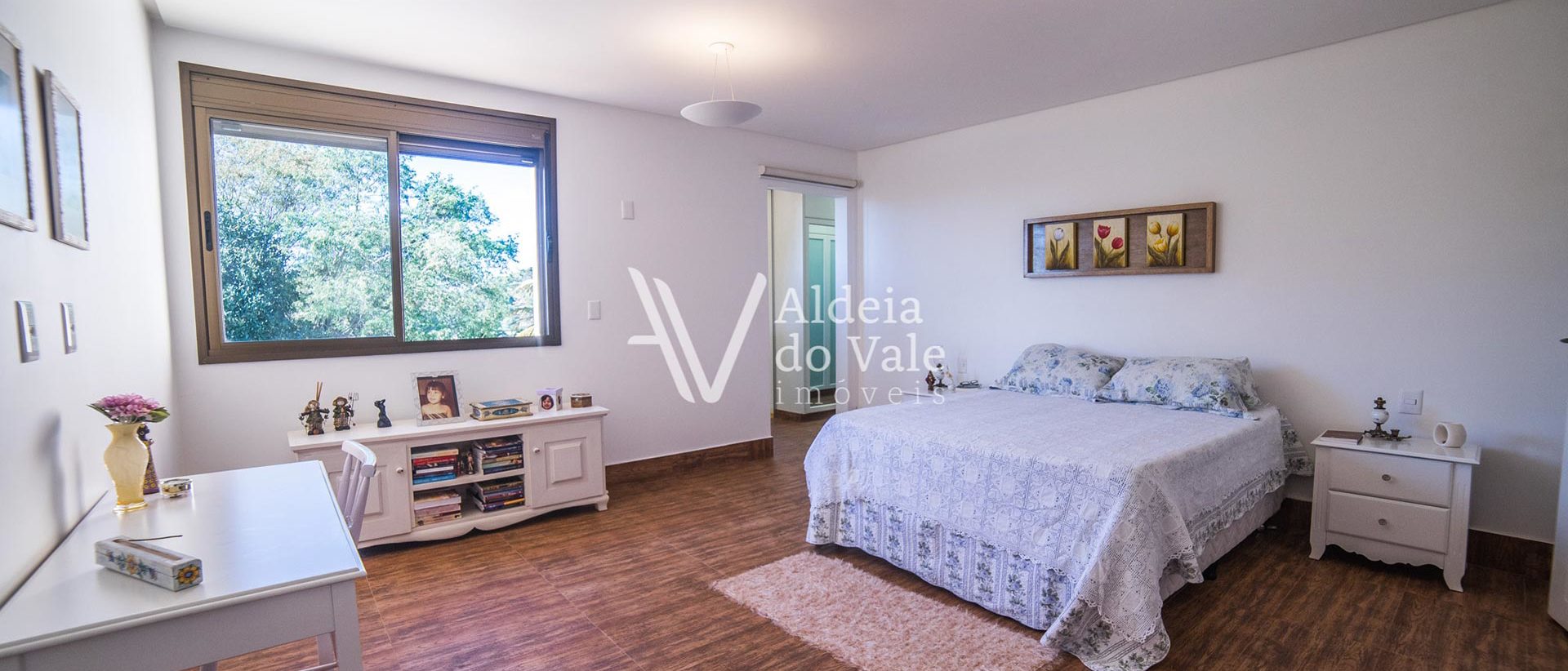 Na parte social da casa, uma suíte no térreo, 3 suítes no piso superior com um lindo piso espanhol amadeirado importado.