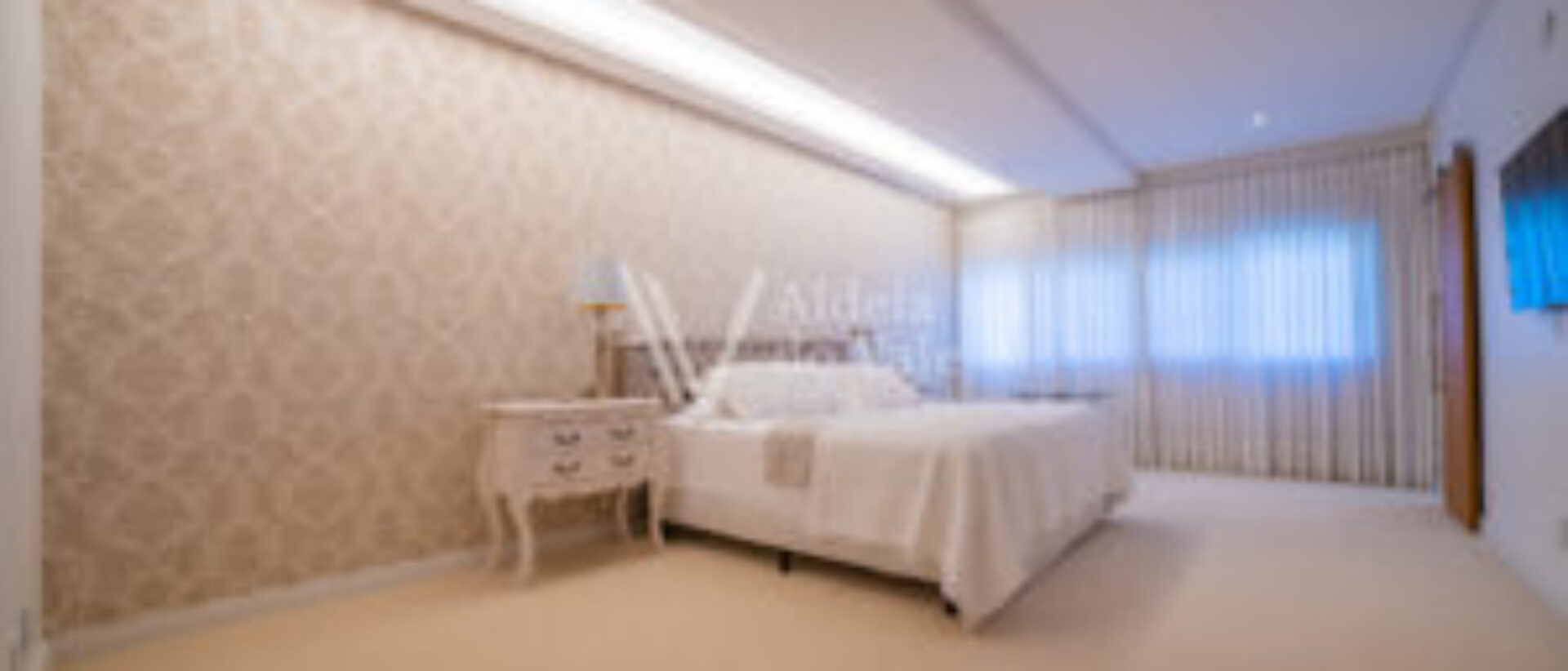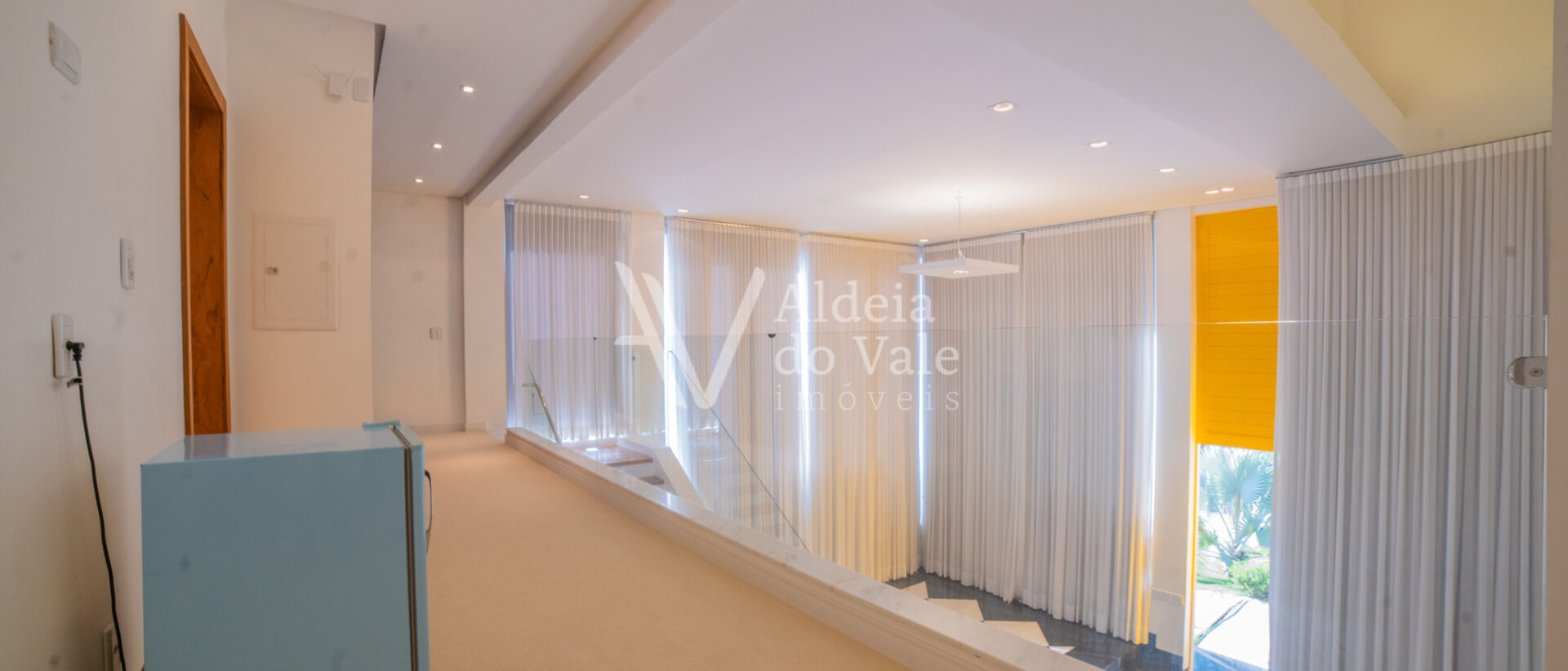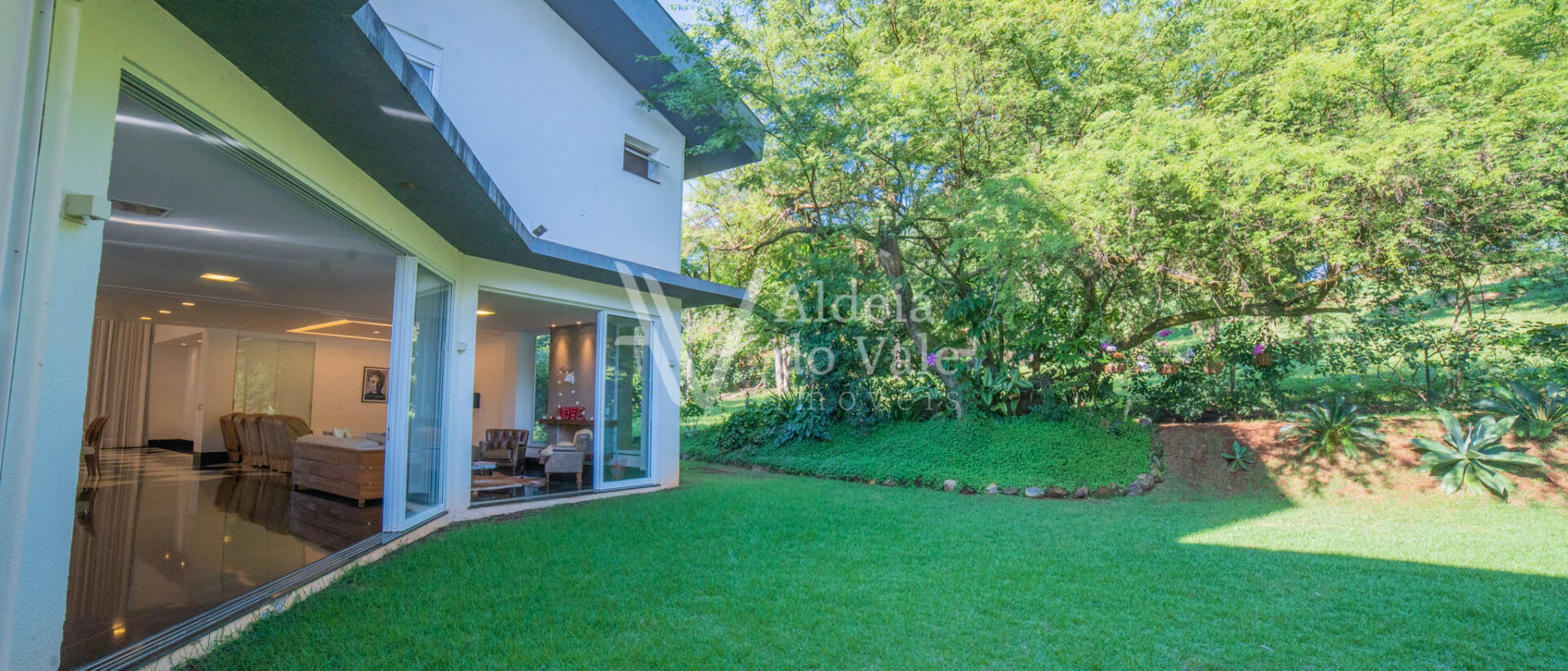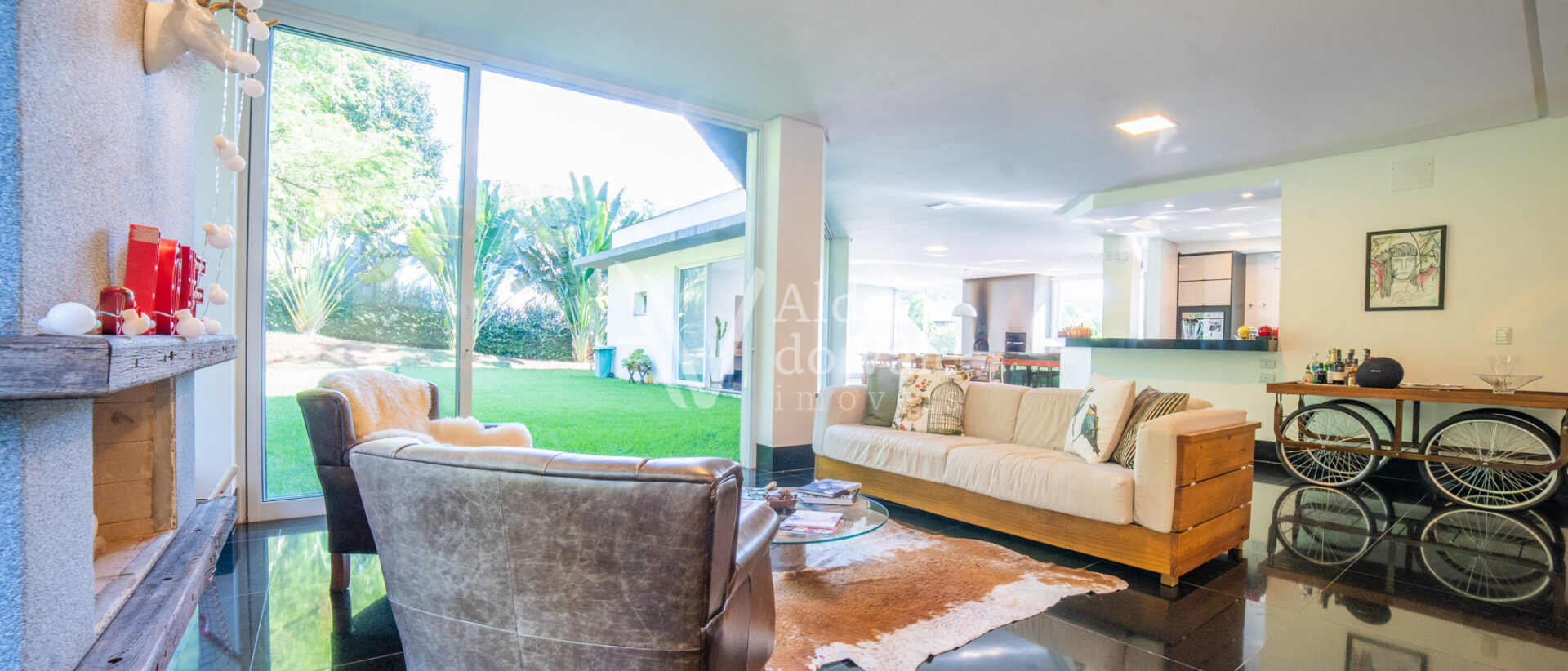 Possui 3 suítes com closet no piso superior, sendo uma máster completíssima em armários. No piso térreo mais uma suíte, escritório, lavabo, e sala de estar com pé direito duplo, sala de jantar, Home Theater com lareira, varanda ampla e jardim, cozinha gourmet maravilhosa com despensa.