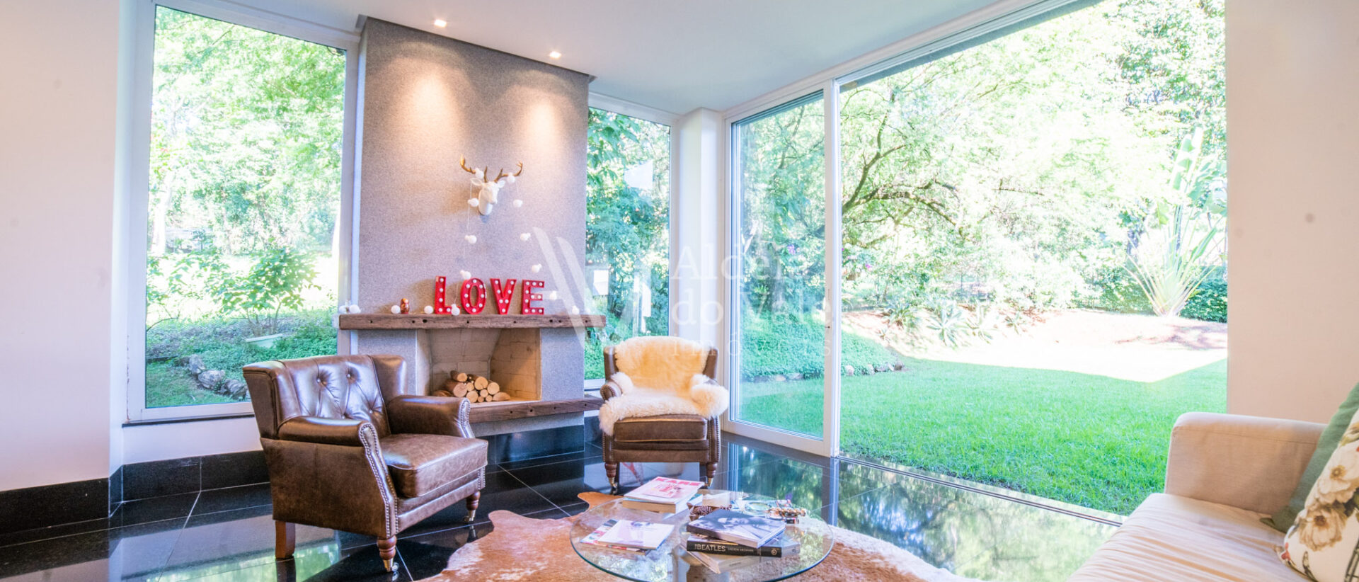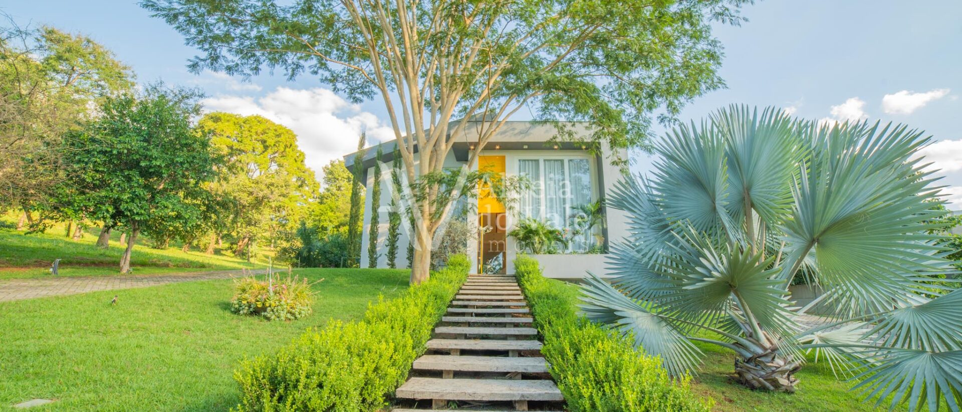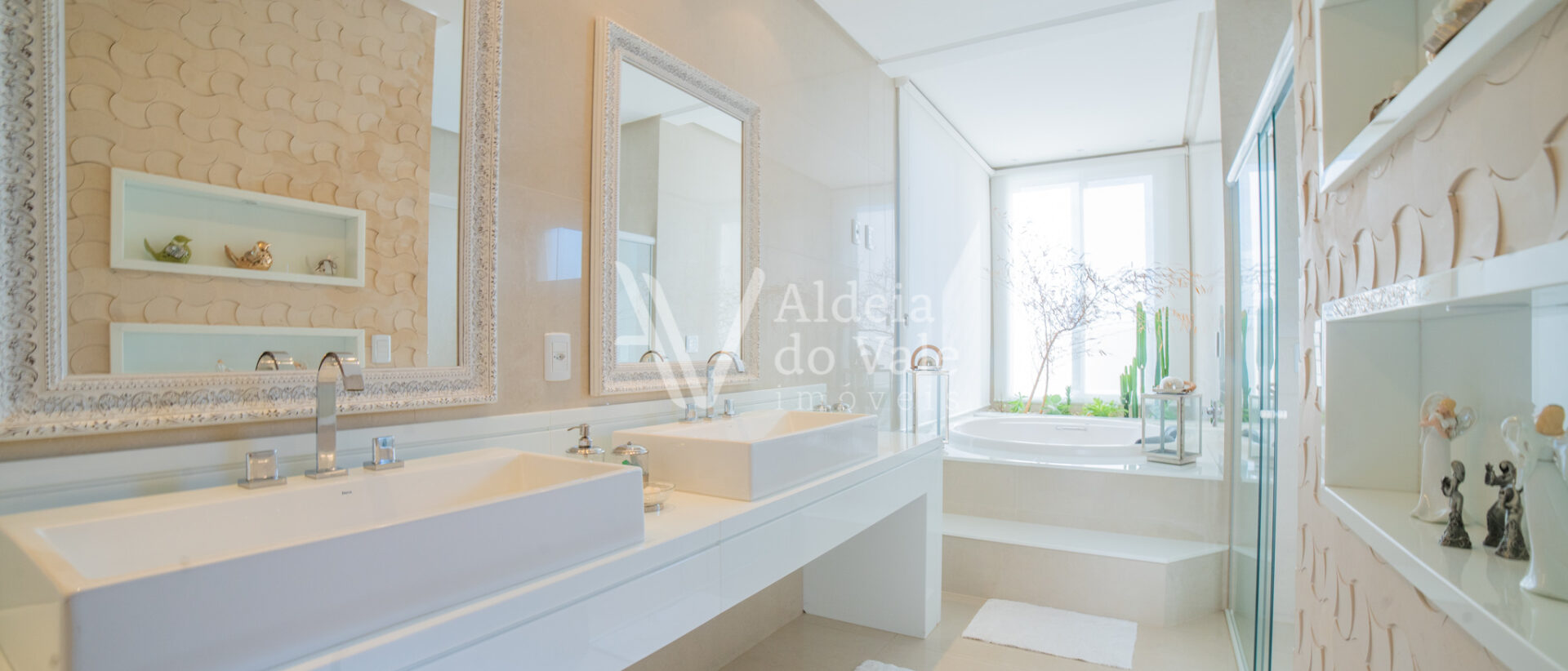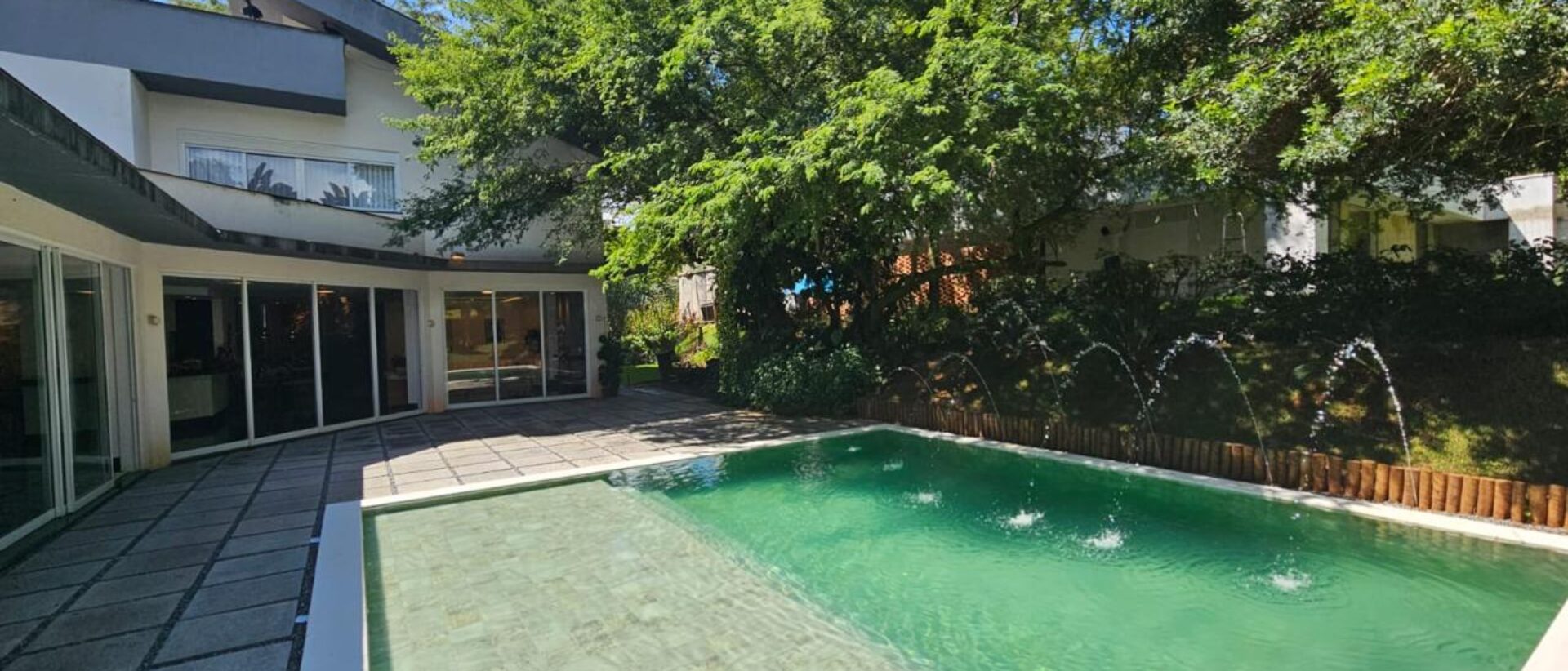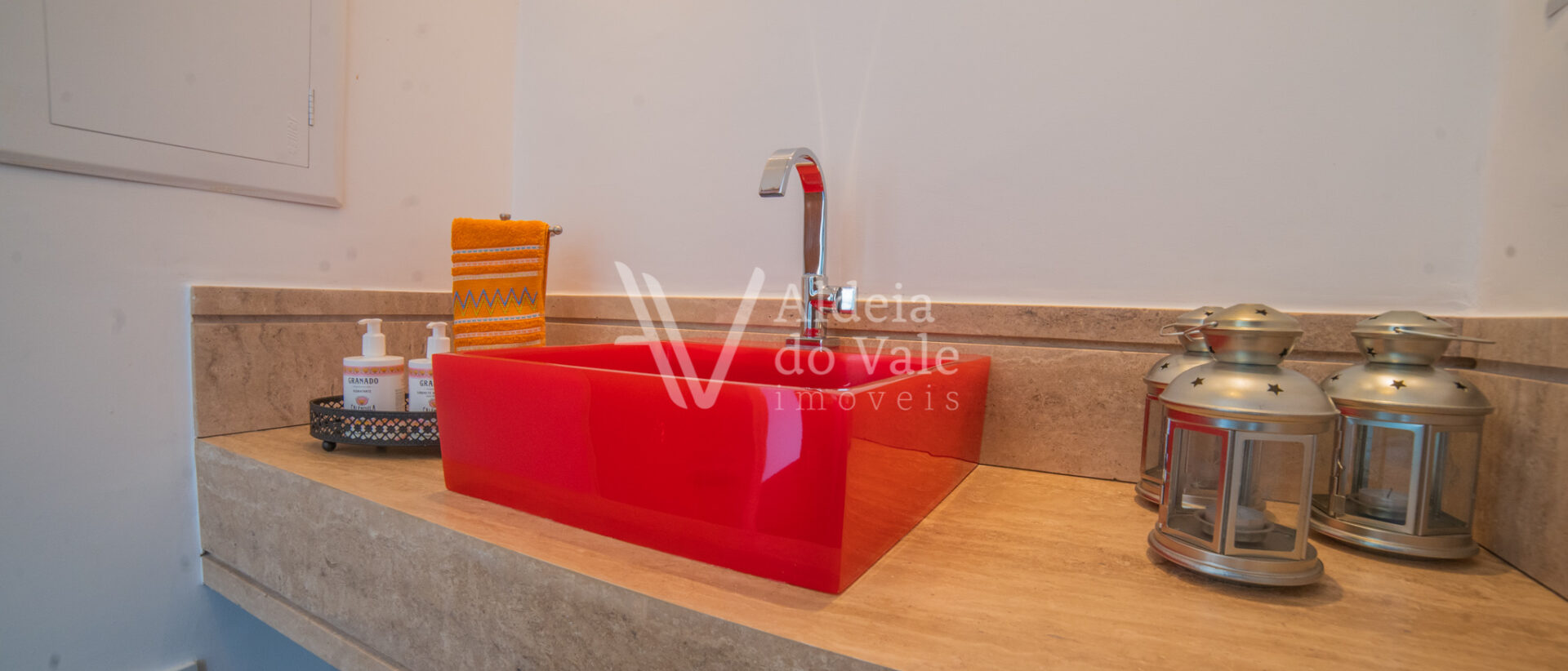 Possui 3 suítes com closet no piso superior, sendo uma máster completíssima em armários. No piso térreo mais uma suíte, escritório, lavabo, e sala de estar com pé direito duplo, sala de jantar, Home Theater com lareira, varanda ampla e jardim, cozinha gourmet maravilhosa com despensa.