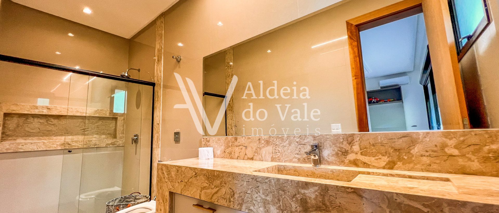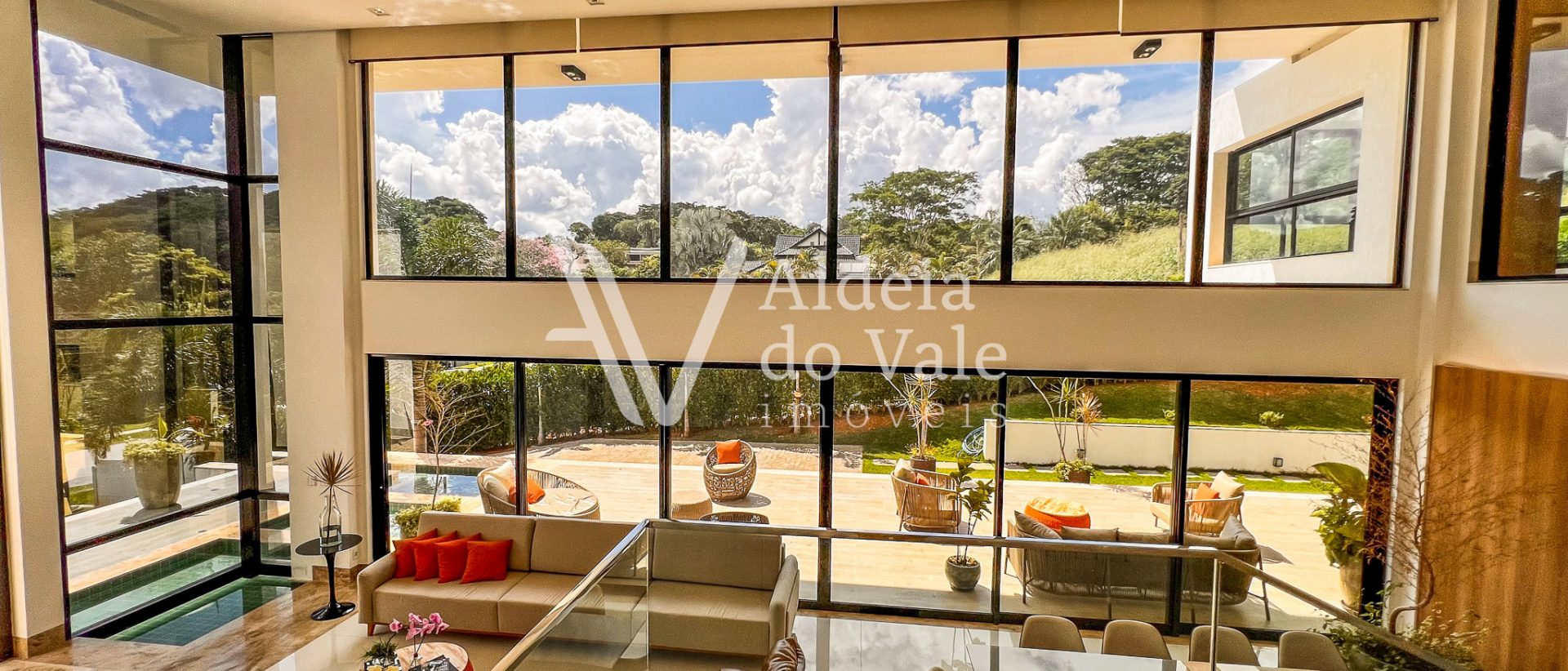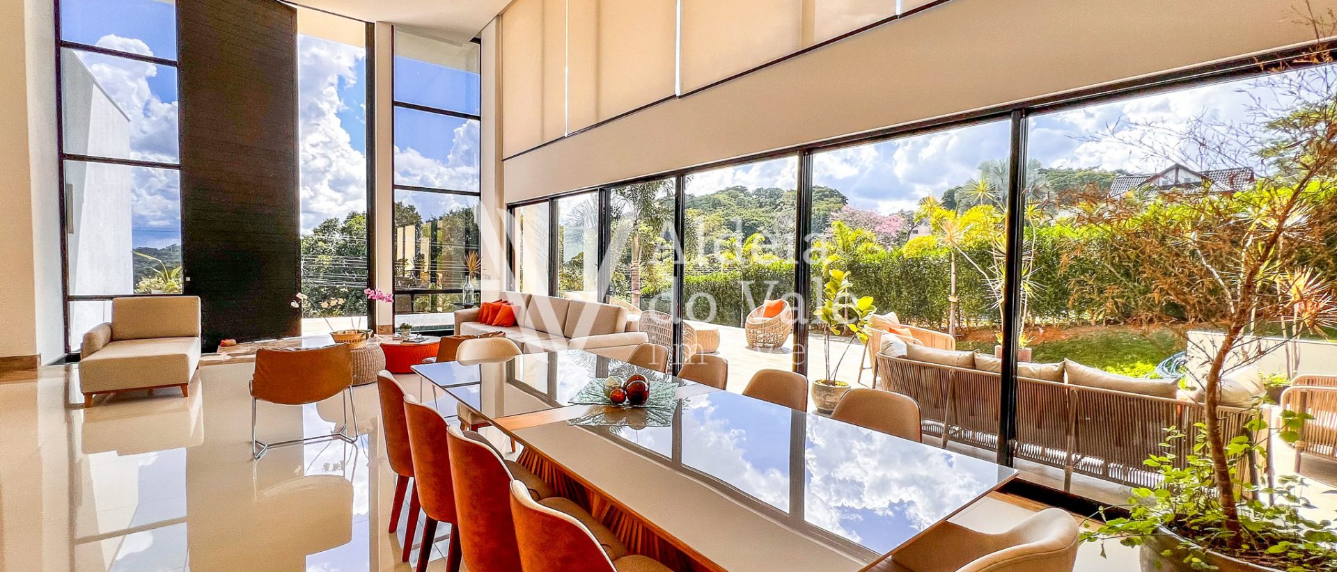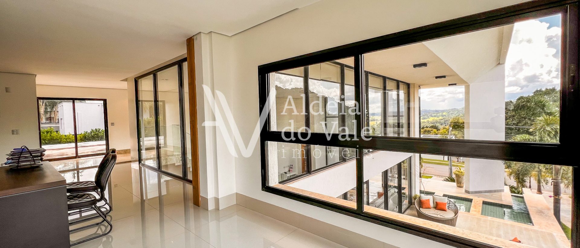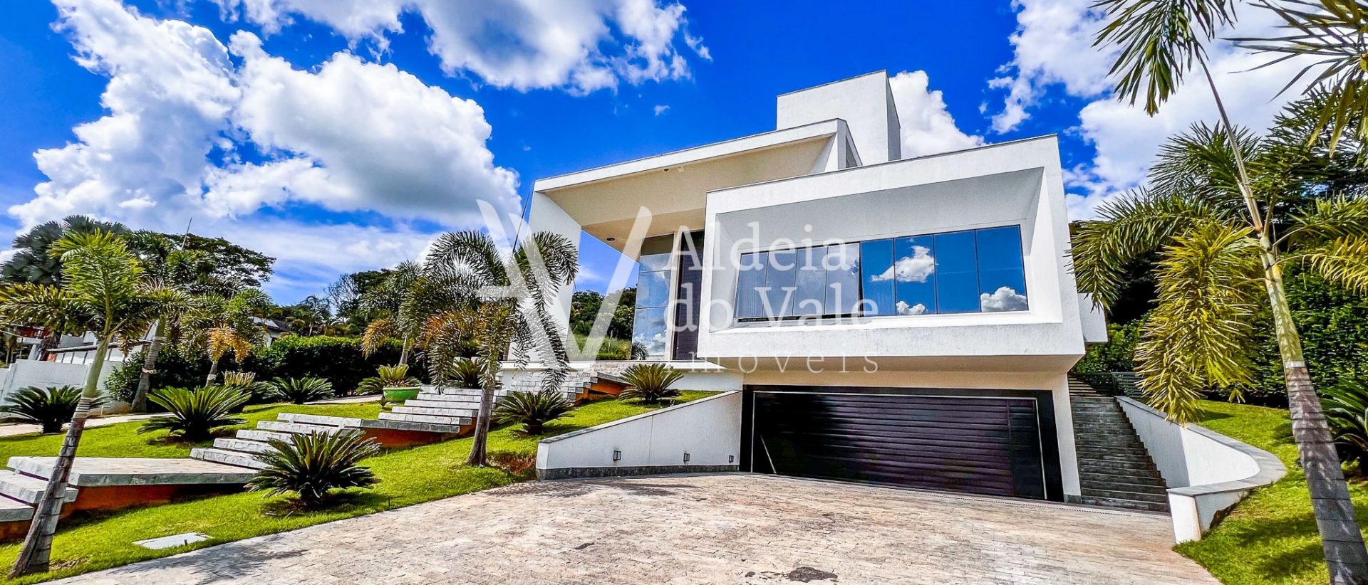 Imóvel com fino acabamento, garagem ampla com portão automatizado, escaninho, lindo paisagismo e ótima localização na parte alta do Aldeia do Vale.