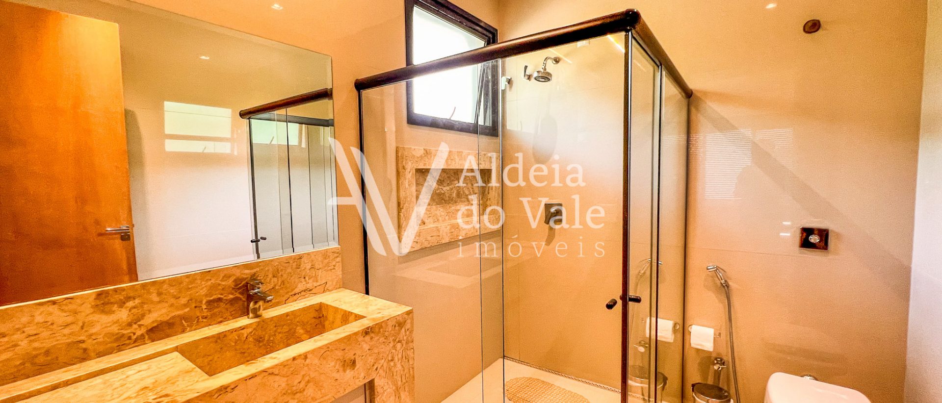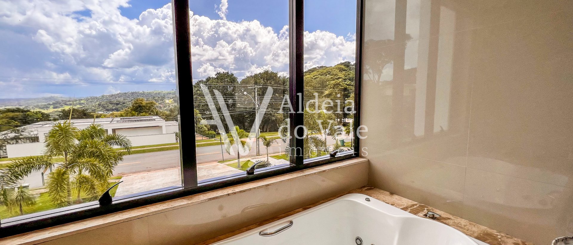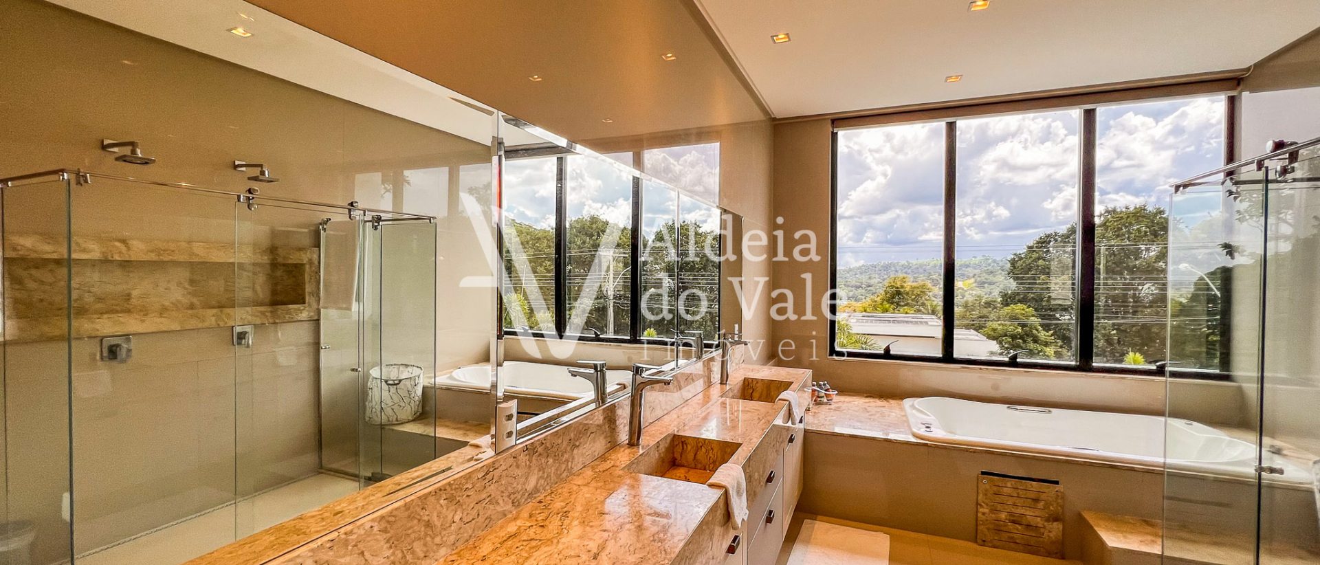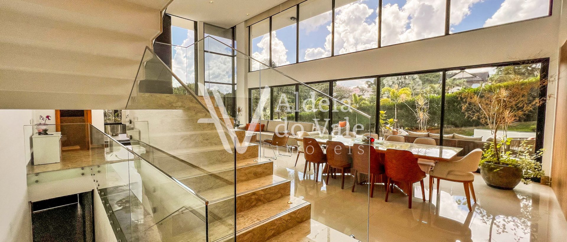 Imóvel com fino acabamento, garagem ampla com portão automatizado, escaninho, lindo paisagismo e ótima localização na parte alta do Aldeia do Vale.