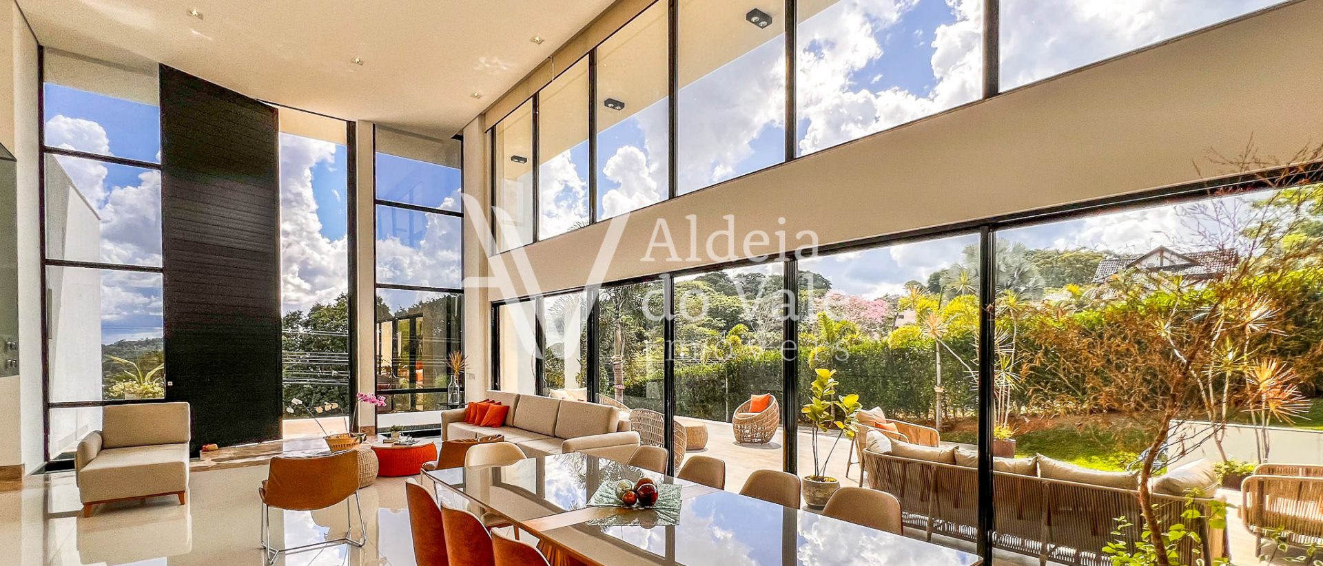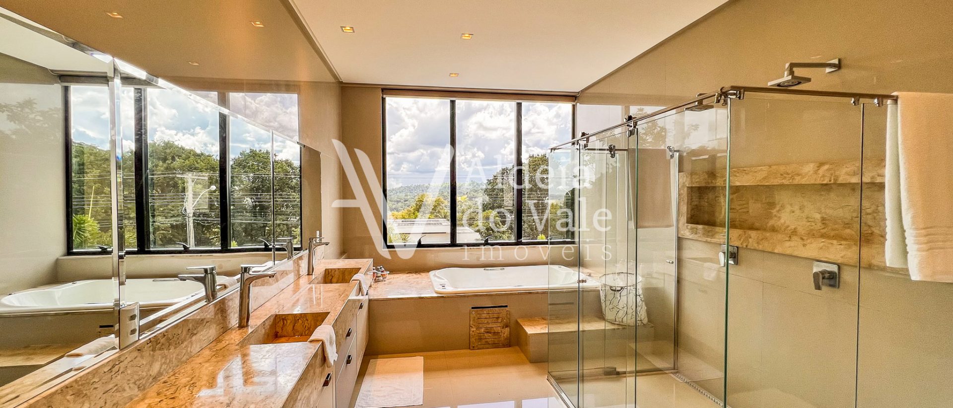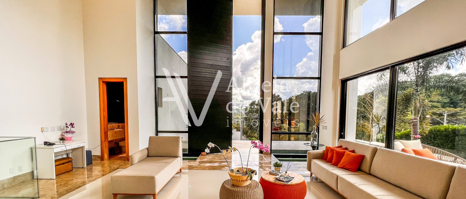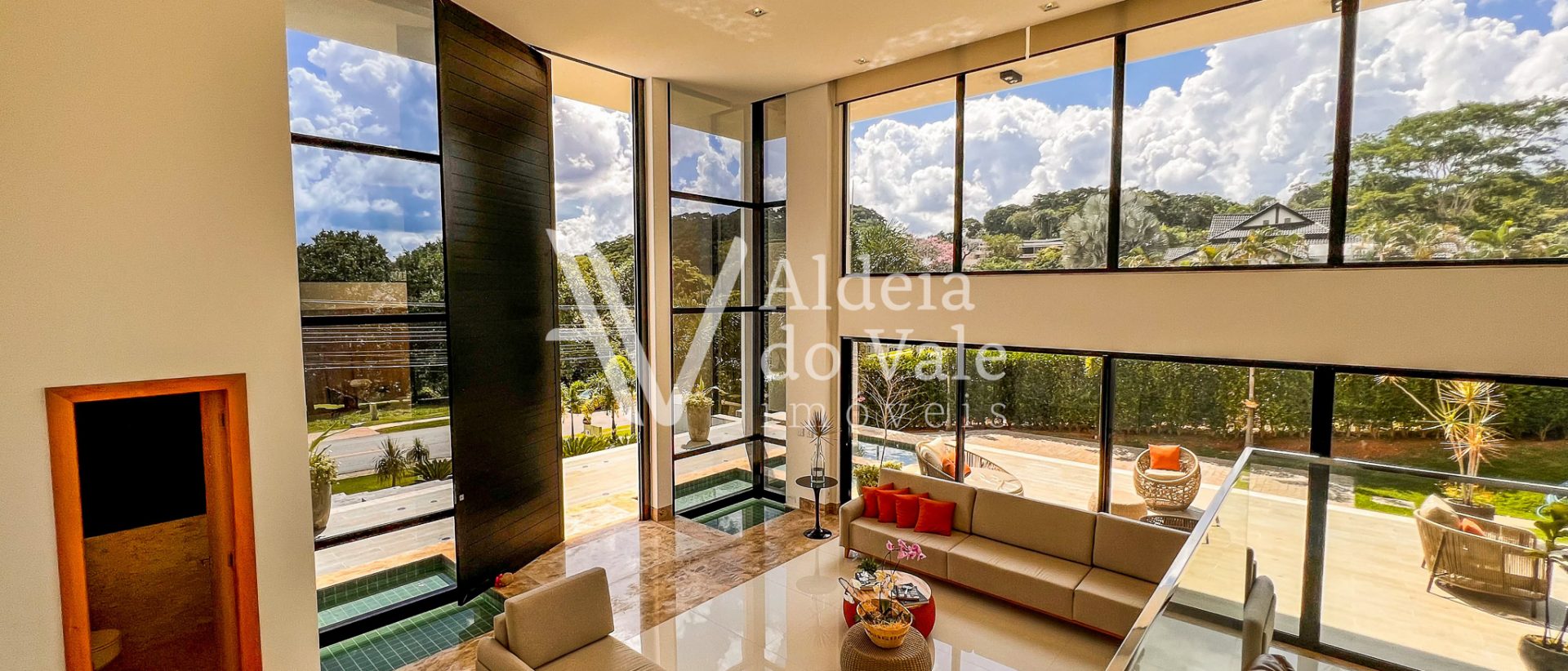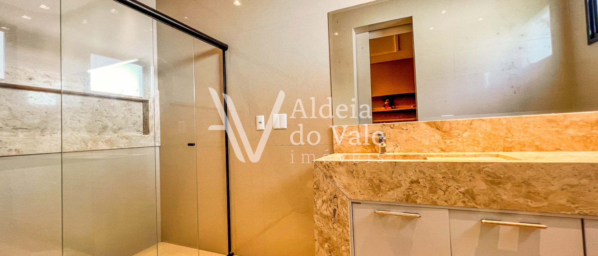 Imóvel com fino acabamento, garagem ampla com portão automatizado, escaninho, lindo paisagismo e ótima localização na parte alta do Aldeia do Vale.