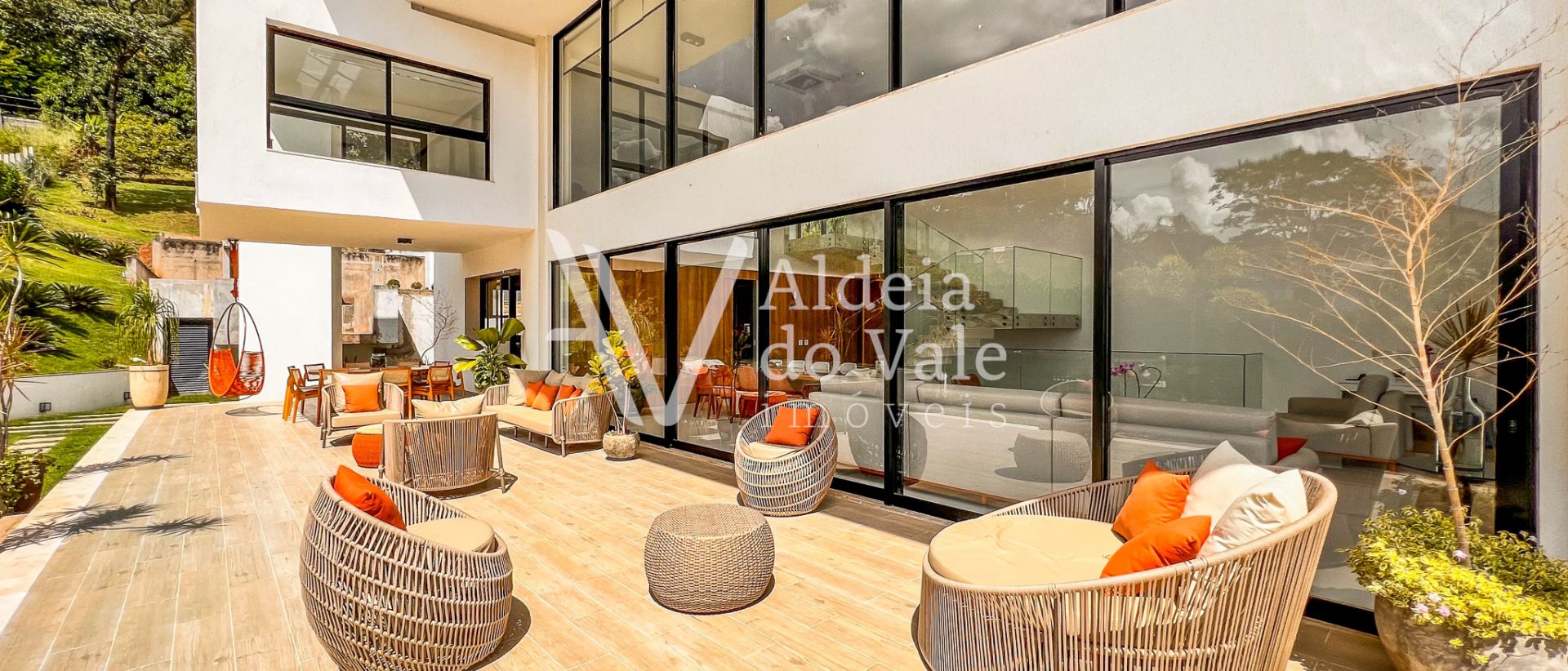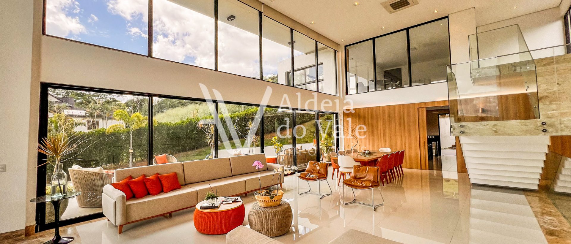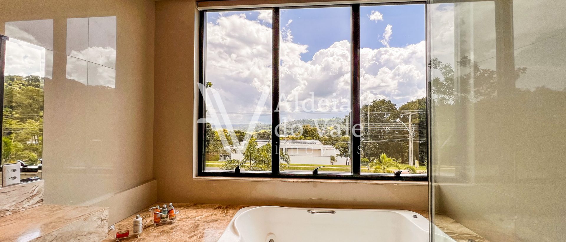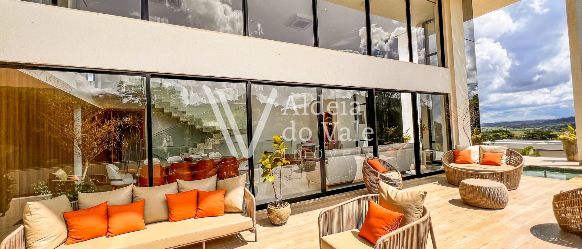 Imóvel com fino acabamento, garagem ampla com portão automatizado, escaninho, lindo paisagismo e ótima localização na parte alta do Aldeia do Vale.