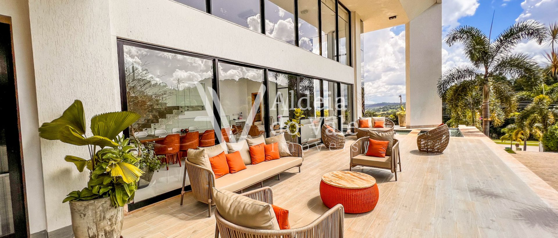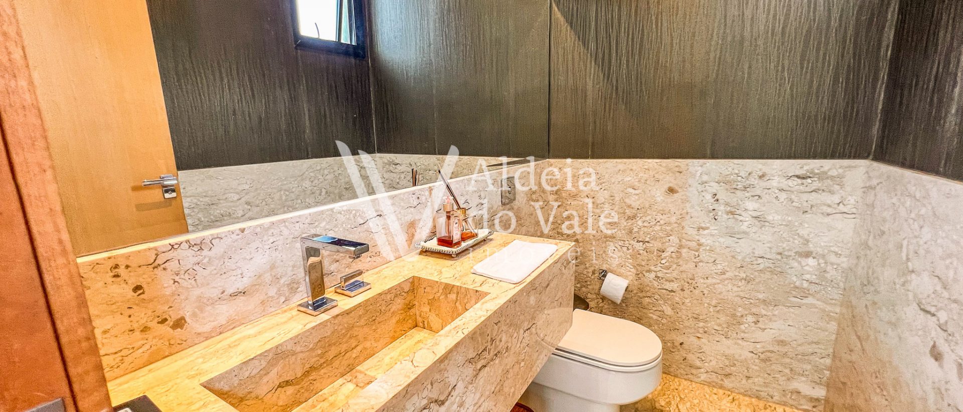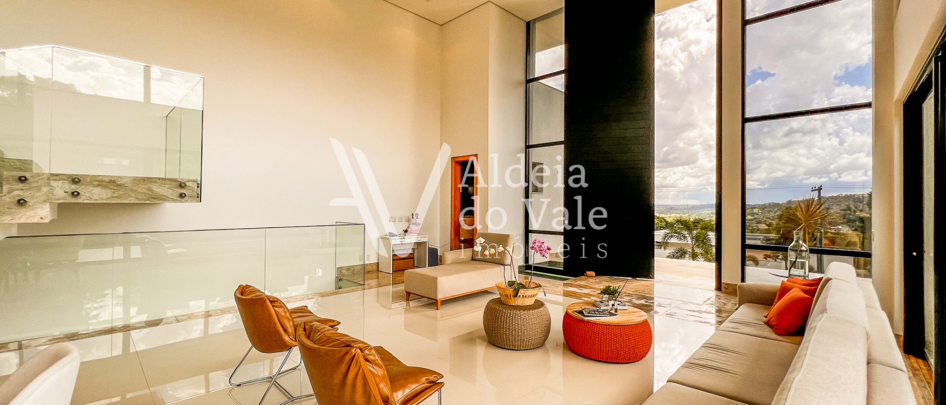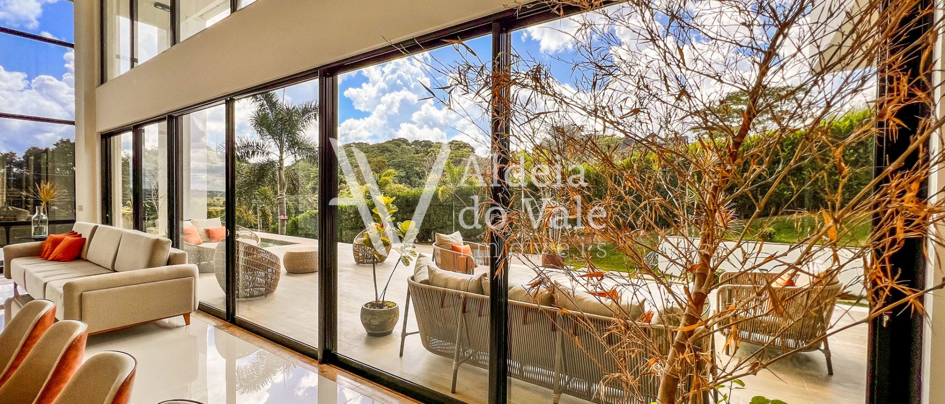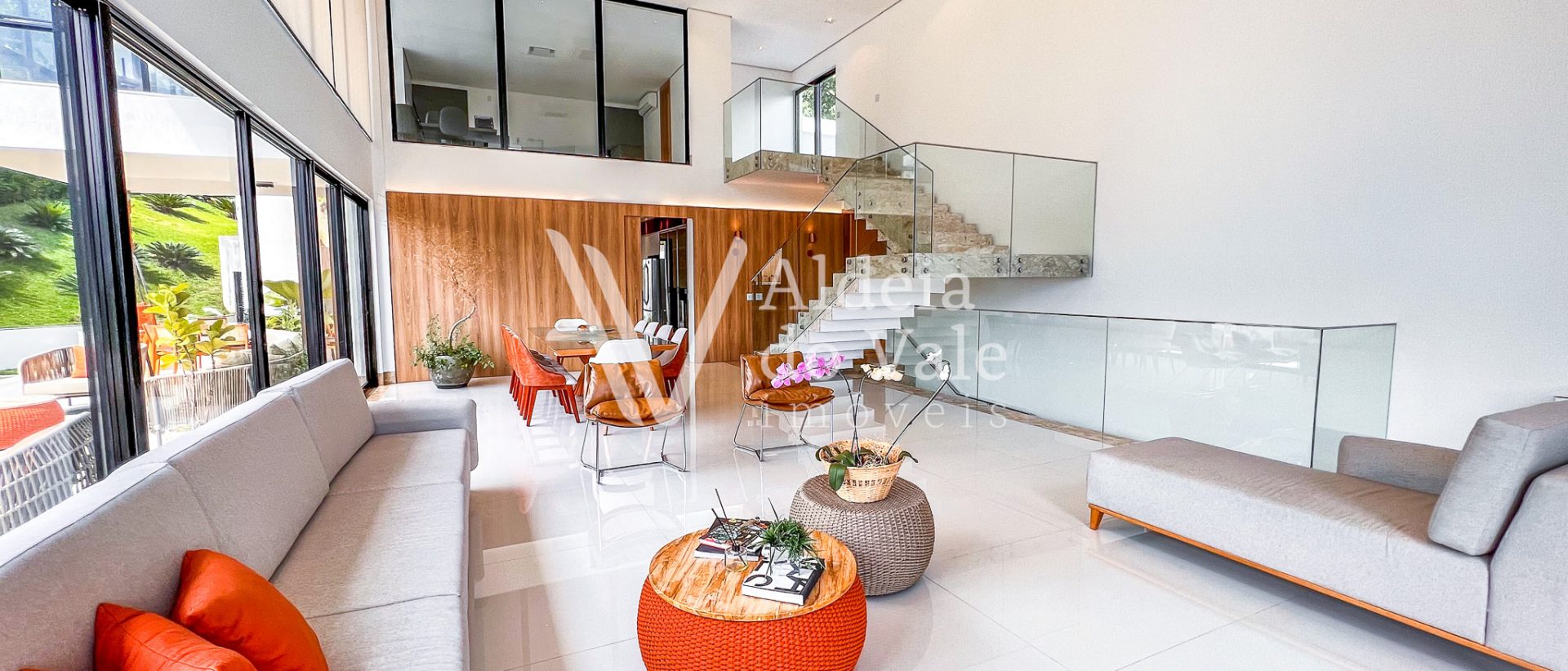 Imóvel com fino acabamento, garagem ampla com portão automatizado, escaninho, lindo paisagismo e ótima localização na parte alta do Aldeia do Vale.
