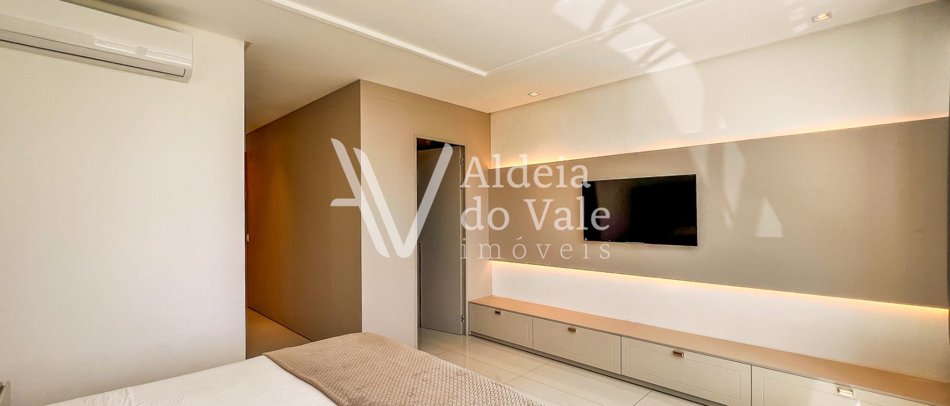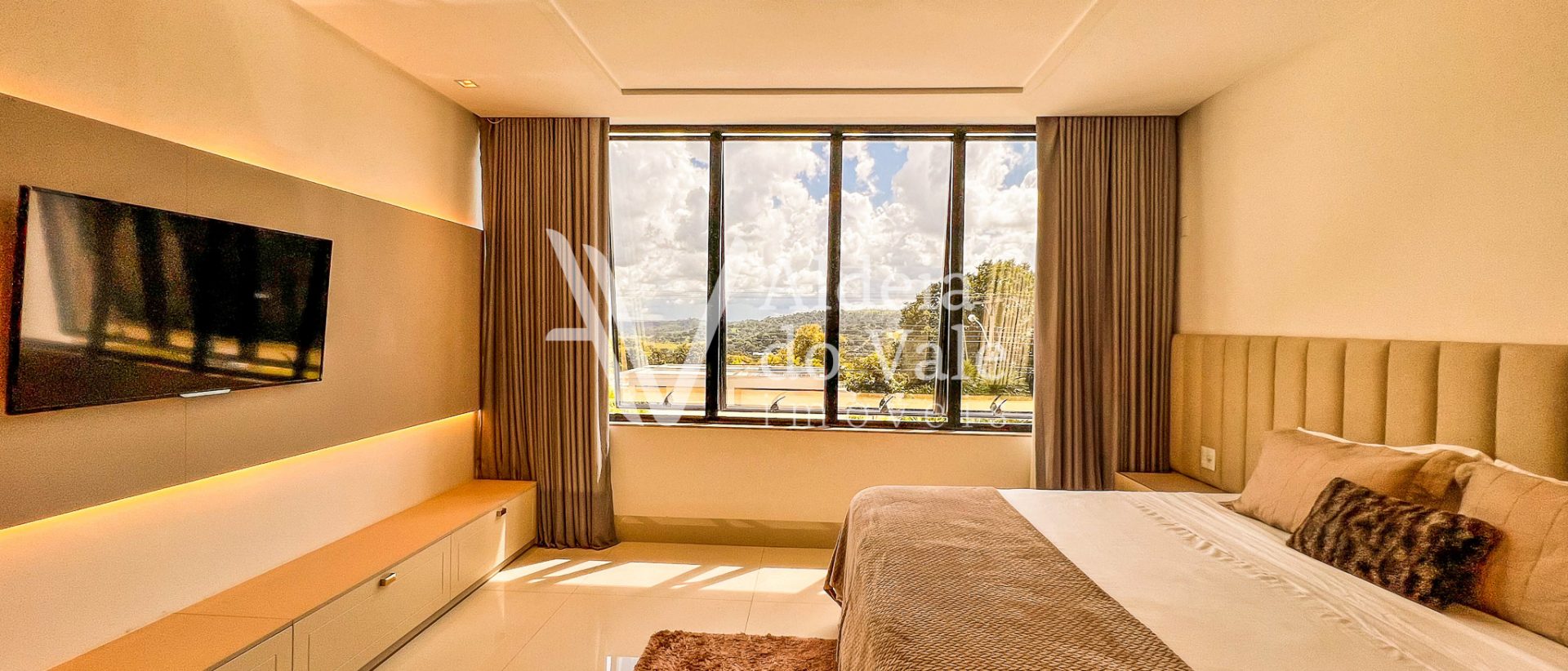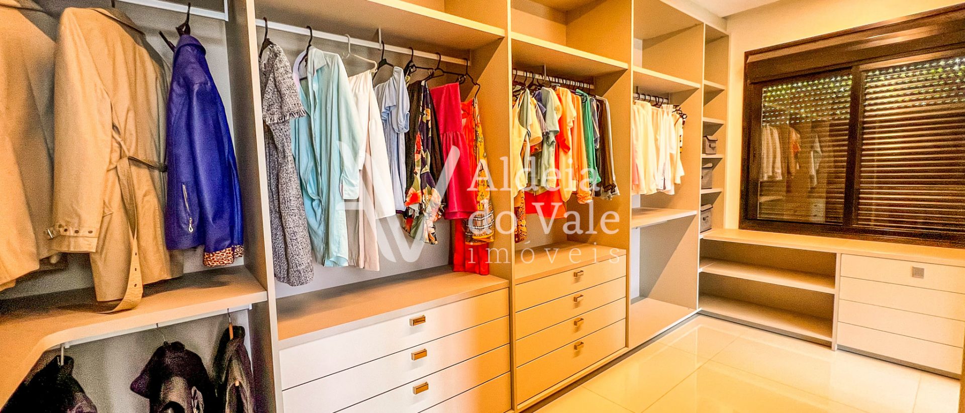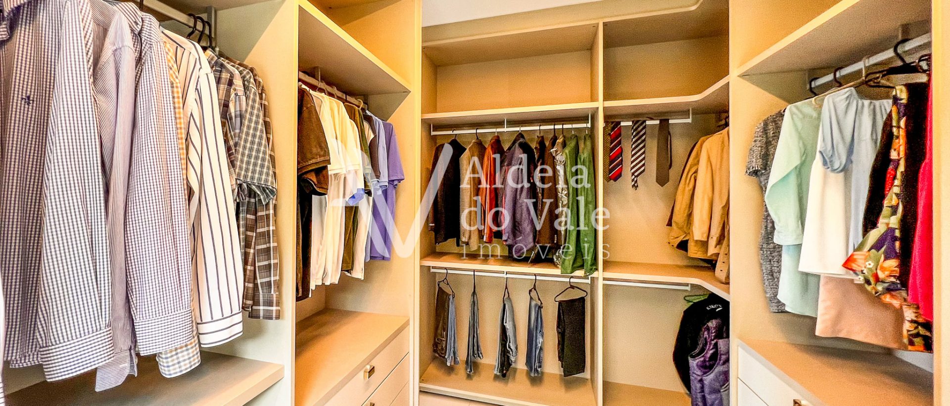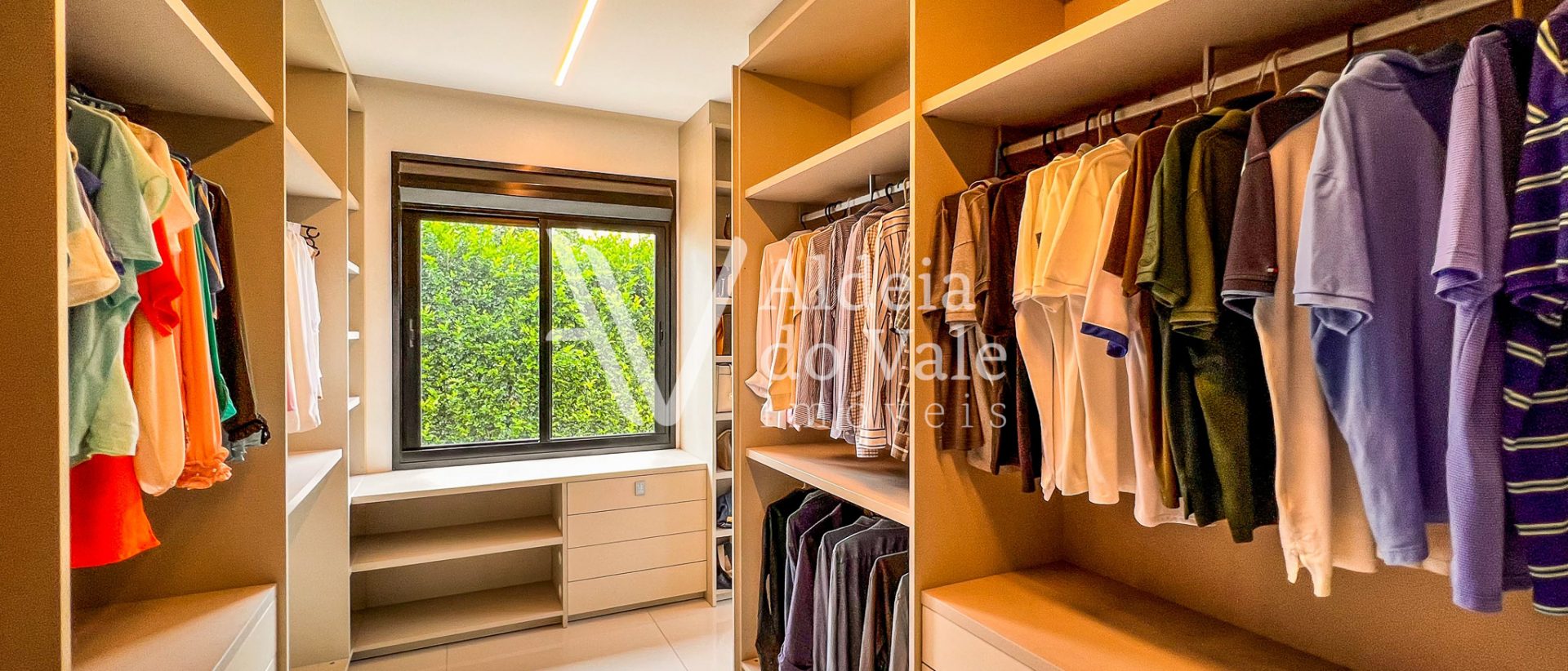 4 suítes plenas sendo 1 master com closet, hidromassagem, chuveiro duplo, bancada com cuba dupla esculpida na pedra bege baia e janela com linda vista definitiva para o condomínio, roupeiro no corredor, todas suítes amplas, montadas em armários Bontempo e climatizadas.