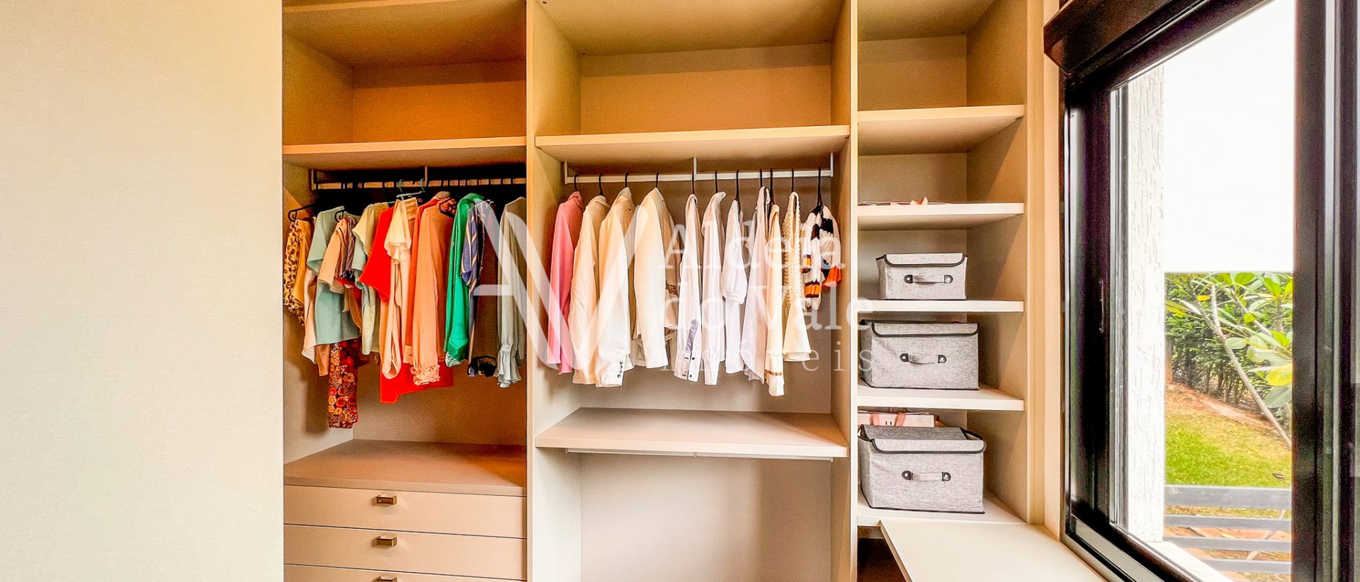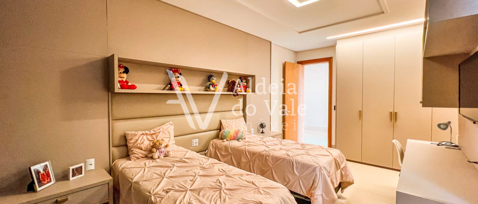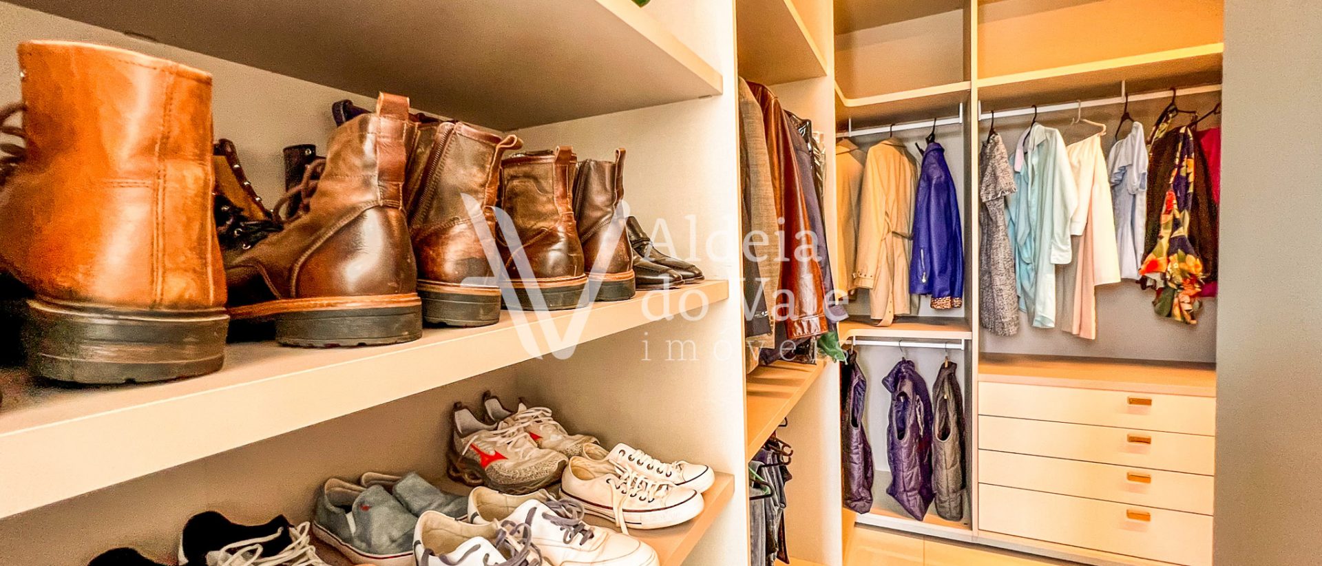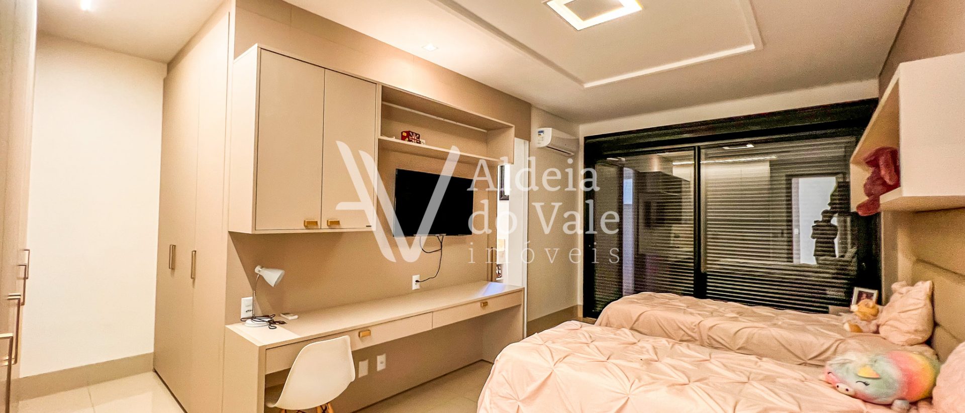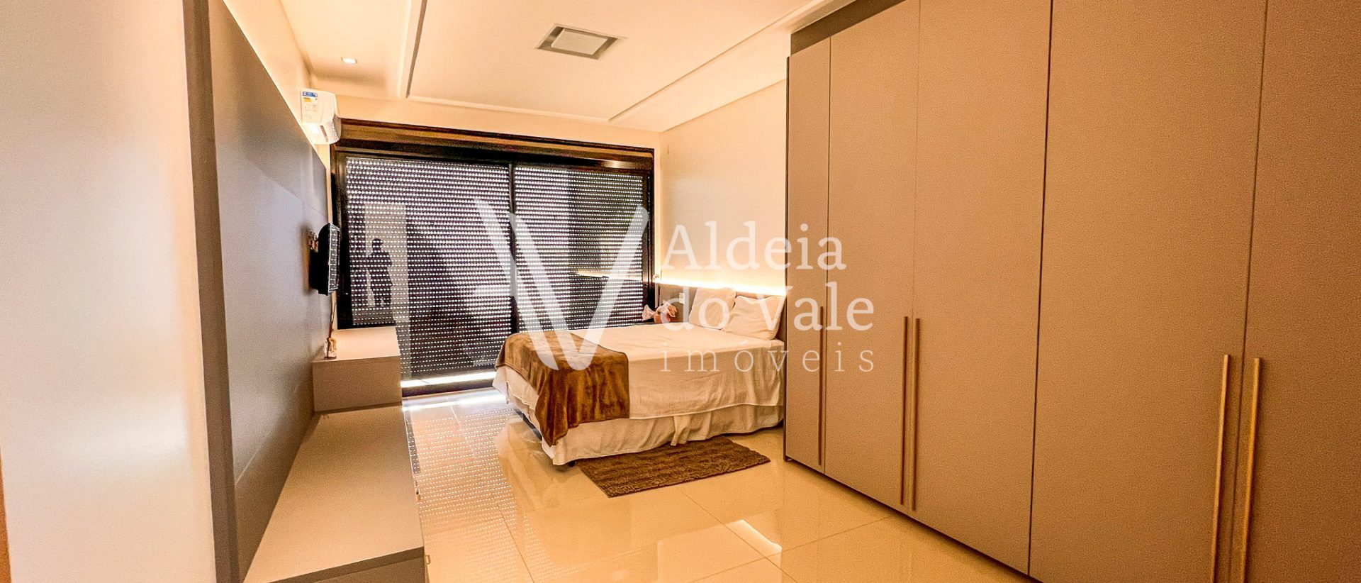 4 suítes plenas sendo 1 master com closet, hidromassagem, chuveiro duplo, bancada com cuba dupla esculpida na pedra bege baia e janela com linda vista definitiva para o condomínio, roupeiro no corredor, todas suítes amplas, montadas em armários Bontempo e climatizadas.